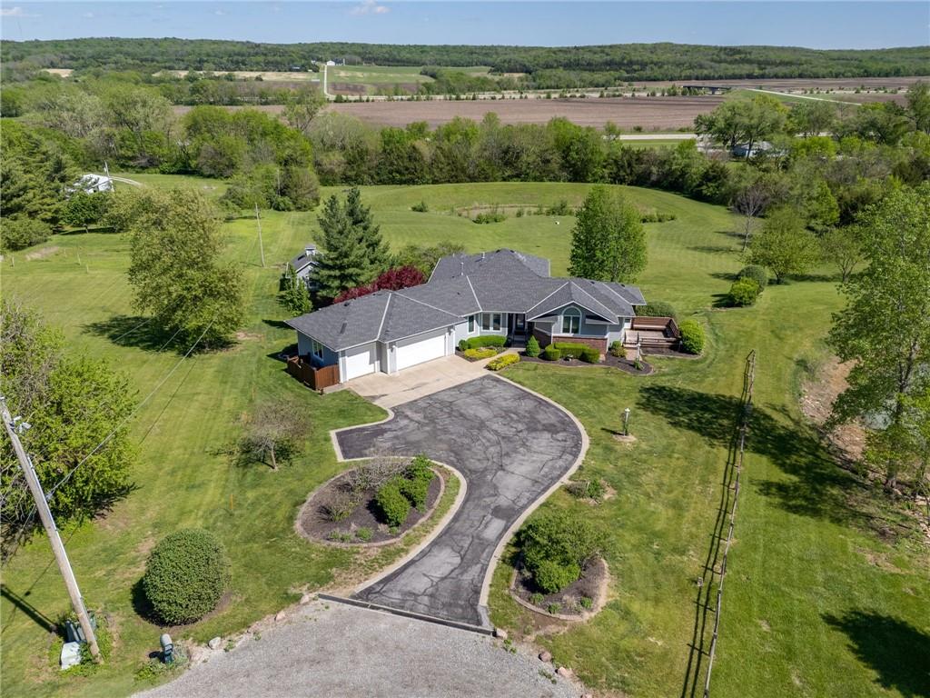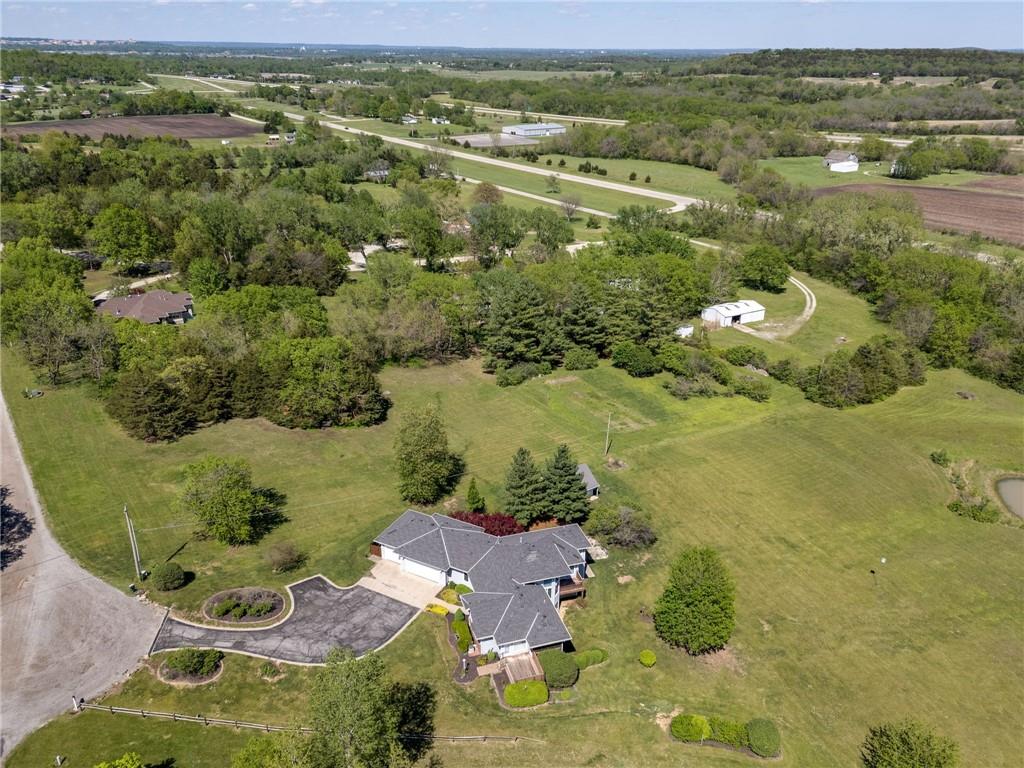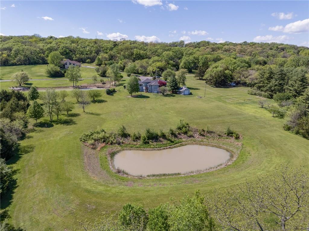 Enjoy peaceful country living just south of Lawrence on 5 scenic acres! This custom-built home showcases beautiful woodwork and quality craftsmanship throughout. The spacious, open main level is filled with natural light from large windows that capture stunning views in every direction. Relax and unwind in the inviting three-season porch, perfect for enjoying the outdoors year-round. The walkout basement features a large family room—ideal for entertaining or gathering—along with plenty of unfinished storage space for all your needs. Outside, you’ll find a pond, wide open space to roam, and a large tool shed for hobbies, equipment, or extra storage. A fantastic opportunity to own a cared for home with room to breathe, just minutes from town!