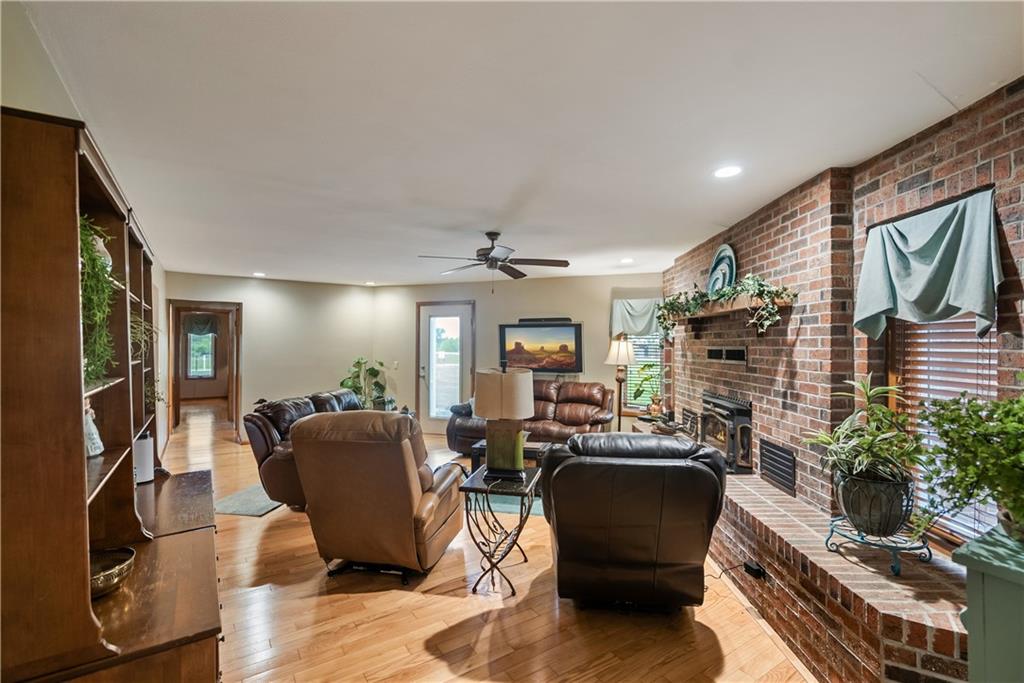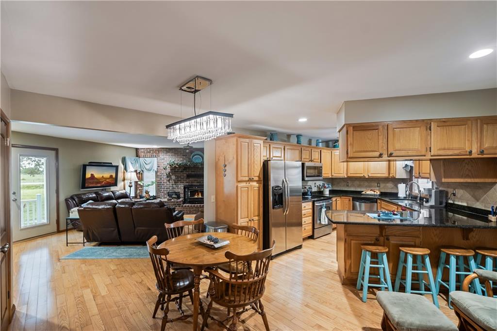 If you’ve been dreaming of a little space to spread out without giving up comfort, this one feels like home the minute you pull in. Set on 9.13 acres, this 3 bedroom, 2 bath ranch offers 1,793 square feet of easy, single-level living with room to breathe inside and out. Step through the door and you’re welcomed by warm hardwood floors that run throughout the home, creating a cozy, connected feel. The living area centers around a wood-burning fireplace, perfect for slow evenings and gathering with family or friends. The kitchen brings a touch of modern style with granite countertops, and all appliances stay, making the move-in process simple. Both bathrooms have been updated with LVP flooring for durability and style, while central HVAC keeps things comfortable year-round. Updated windows and insulated siding help create a quieter, more efficient space, even with the convenience of nearby highway access. Outside is where this property really starts to tell its story. Whether you're working, tinkering, or just need extra storage, the detached 2 car garage/shop is ready to go with two overhead doors and its own wood-burning stoves. There’s also an additional outbuilding with an overhead door and lean-to, plus a small shed for all the extras. Dog pens are already in place and will stay, making it easy for your four-legged companions to settle in too. You’ll find yourself drawn to the outdoor spaces, from the covered east-facing patio that’s perfect for morning coffee to the pergola patio on the south side, ideal for winding down at the end of the day. With a roof that’s only 5 years old and low-maintenance vinyl siding, the big items are already taken care of. This is the kind of place where you can slow down a bit, enjoy the land, and make it your own, whether that means gardening, hobbies, or simply enjoying the quiet of country living.