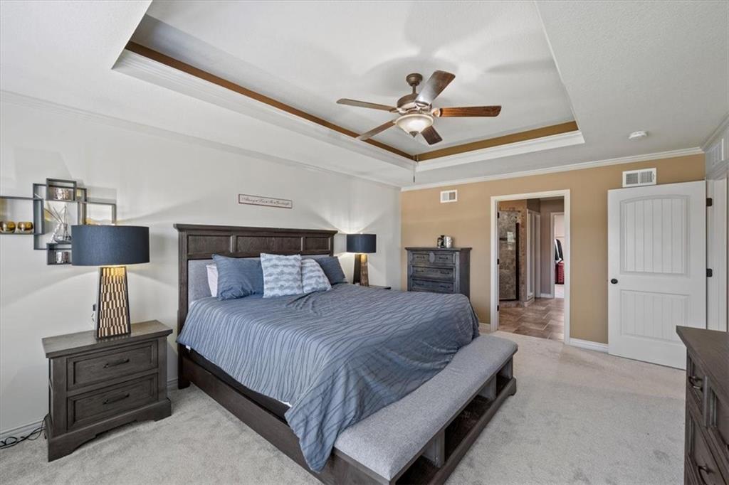 Step into a dream setup for any car or boat enthusiast! This incredible garage offers space for up to four vehicles, with the third bay that’s an impressive 40 feet deep and a 9-foot door. It has a ton of storage, a dedicated workbench/shop area, extra outlets, and enhanced lighting, it’s built to handle projects of all sizes. The home itself is just as impressive, sitting on one of the largest lots in the neighborhood with a huge fenced backyard. Inside, a stunning vaulted entryway welcomes you, featuring rich wood flooring and a warm gas fireplace. The kitchen has granite countertops, stainless steel appliances, a spacious island, and a walk-in pantry complete with a built-in desk. The main floor also has a half bath and a custom built-in storage bench in the mudroom. Upstairs, the primary suite opens with a box-vault ceiling and a en-suite bathroom with tiled floors, a whirlpool tub, tiled shower, double vanity, and a generous walk-in closet. Two additional bedrooms also include walk-in closets, while all bathrooms feature granite vanity tops. The second-floor laundry room provides easy access right where you need it most. Enjoy outdoor living on the covered patio with a ceiling fan, perfect for warm evenings. The finished basement expands your living space with a full bathroom, a non-conforming bedroom, and a wet bar.