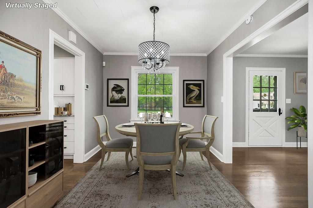 Discover the delightful allure of this 3-bedroom, 2-bathroom Ranch home, a true testament to cottage charm perfectly situated on its lot. White vinyl siding complemented by classic black accents, all framed by a welcoming white picket fence. . Step inside to be greeted by the warmth of beautifully refinished hardwood floors that extend throughout the main living areas.The heart of the home, the kitchen, has been thoughtfully refreshed to marry style with functionality. It features a crisp, white aesthetic, showcasing granite countertops, a stylish subway tile backsplash, new hardware, & stainless appliances.The formal dining room has added character with its built-in arched accents. The two main-floor bedrooms are cozy and unique, each featuring charming built-ins that add storage and architectural interest. Off the living room is a great screened-in porch, This provides an additional, cozy space perfect for morning coffee, casual dining, or simply relaxing while overlooking the backyard. It's a true extension of the living space, designed for enjoyment and entertaining in comfort.The upper level is a private and spacious master suite. This retreat maintains the home's charming appeal with more distinctive built-ins, and is accompanied by a beautifully renovated master bathroom. The lower level of the home enhances its livability, providing a cozy family space centered around a classic fireplace. This basement area is perfect for movie nights, a play area, or a comfortable den, adding valuable flexible living space.Outside, the fully fenced backyard offers multiple opportunities for outdoor enjoyment. Beyond the mature trees, you will find a paver patio, creating another designated area perfect for simply relaxing and entertaining guests in a private outdoor setting.To help potential buyers envision the full potential and charming possibilities of this home, virtually staged photos have been provided. Note: Listing Agent is related to Seller.