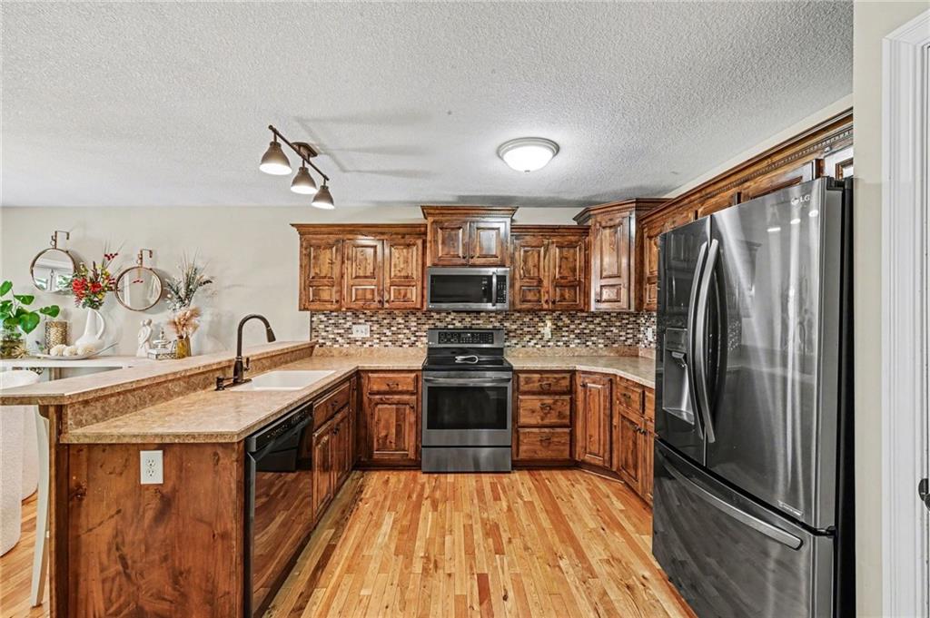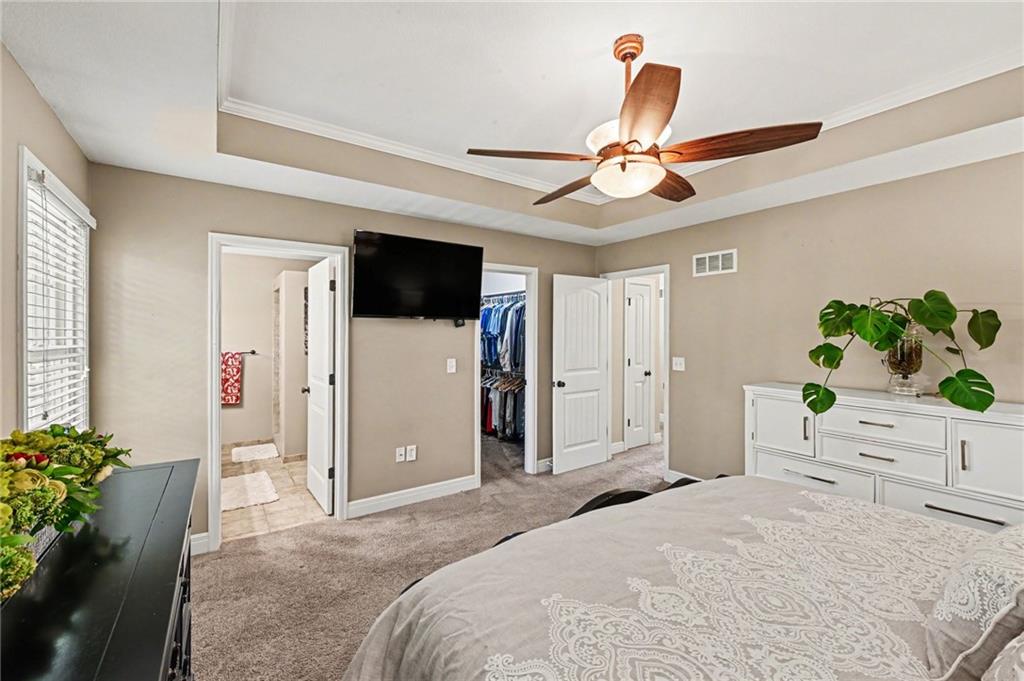 Just a few minutes from K-7 and I-435, but nestled in one of the most amazing quiet neighborhoods, this stunning 4-bedroom, 3-bathroom Reverse 1.5-story home offers THE preferred floor plan with thoughtful details throughout. From the moment you arrive, you’ll notice the meticulously maintained yard and beautiful landscaping, setting the tone for how well this home has been cared for. The main level primary suite is complete with an attached bath featuring a walk-in rain shower. The cozy living room is anchored by a gas fireplace, creating the perfect space to relax. The kitchen is both stylish and functional, offering a lovely pantry, two lazy Susans, pull-out shelves, and an LG appliance suite that stays. Downstairs, the spacious rec room gives you even more room to spread out and entertain, with a walkout lower level leading directly to the backyard. A standout feature is the second lower-level bedroom, which has its own private entrance, full bathroom, and washer/dryer combo—ideal for guests, multi-generational living, or added privacy. This home is packed with extras, including laundry on both the main and lower levels, a 50-year roof with transferable warranty, newer Anderson windows with transferable warranties, Nest cameras that stay, and the option to keep or remove the doggie door. Outdoor living shines with an extended deck featuring a netted gazebo with electricity, fan, TV, and lights, plus a new storage shed in the backyard. This isn't just a house; this is a HOME!