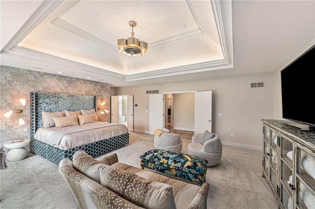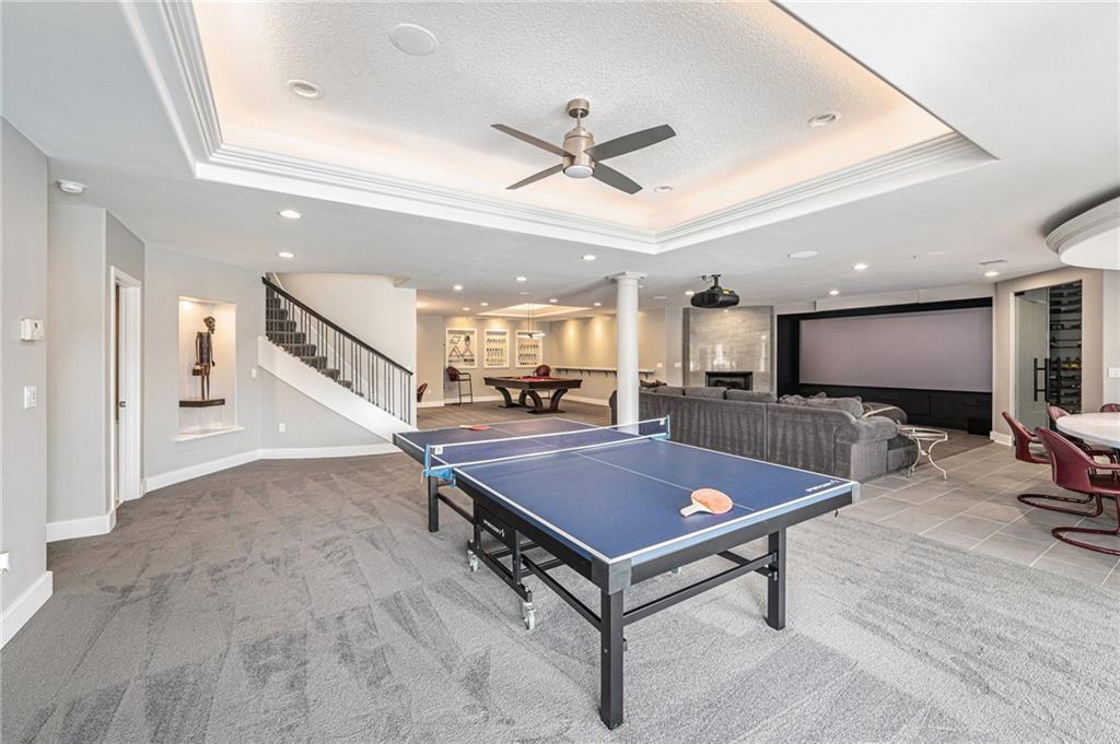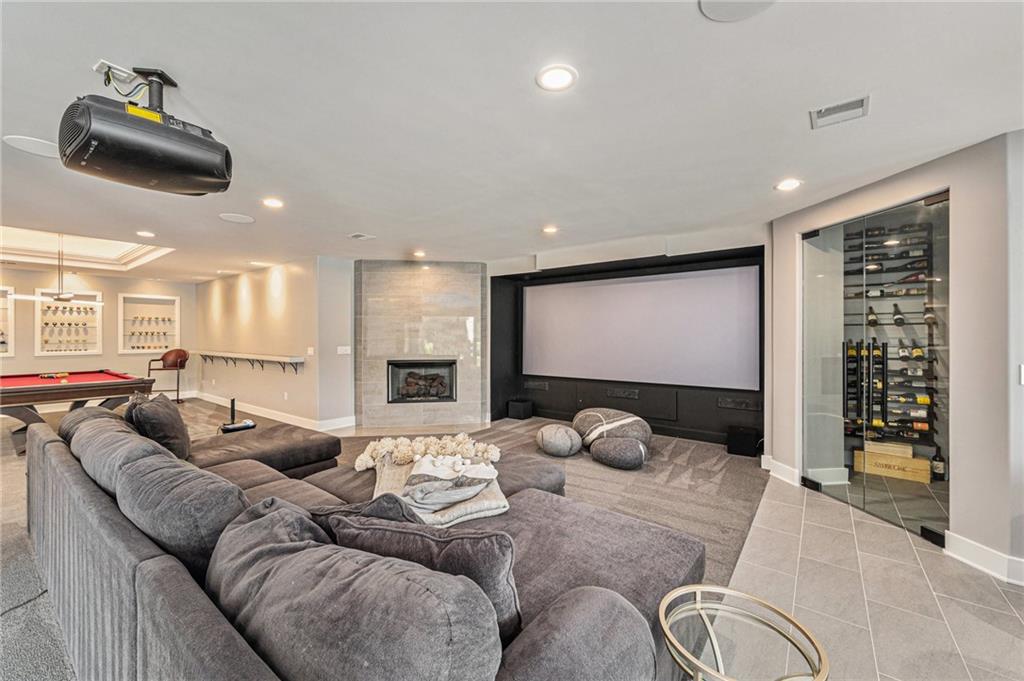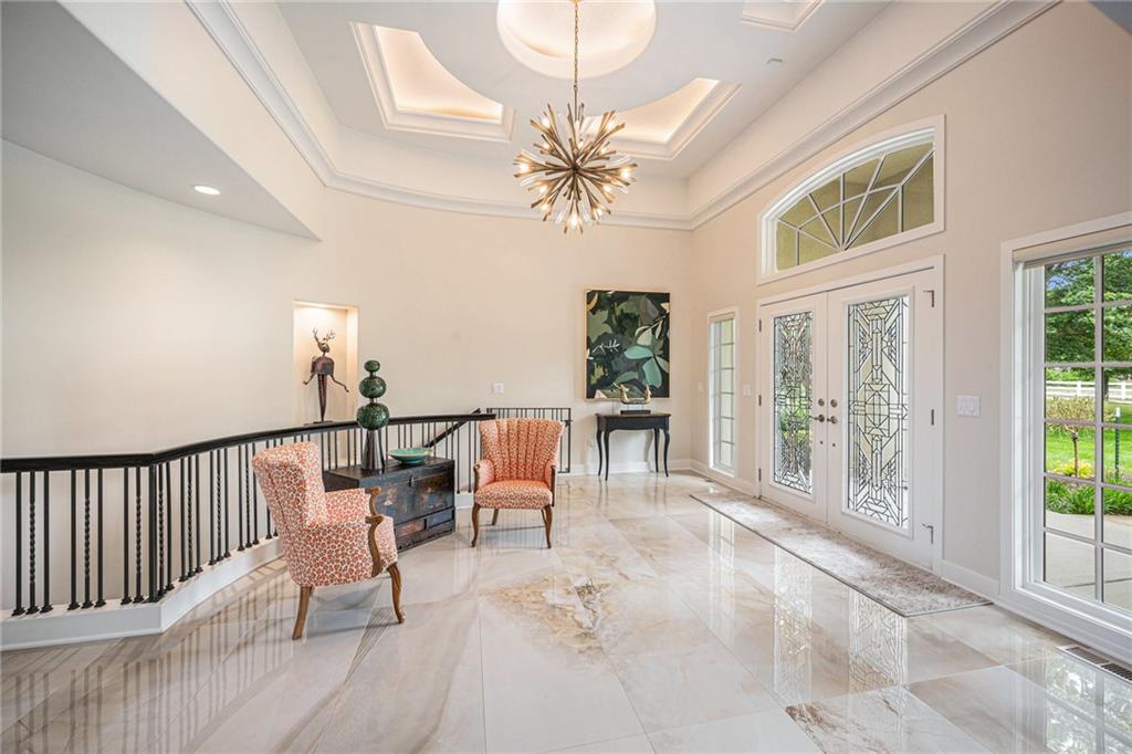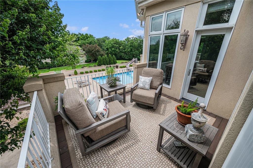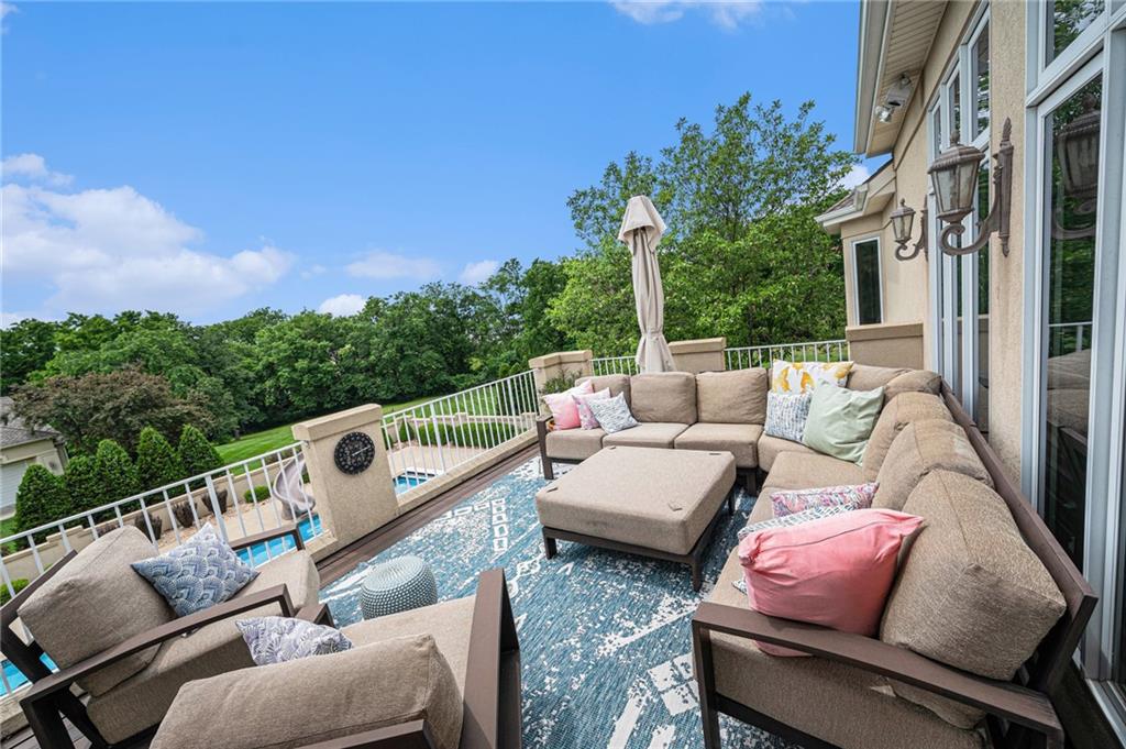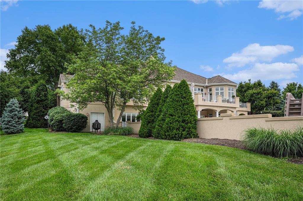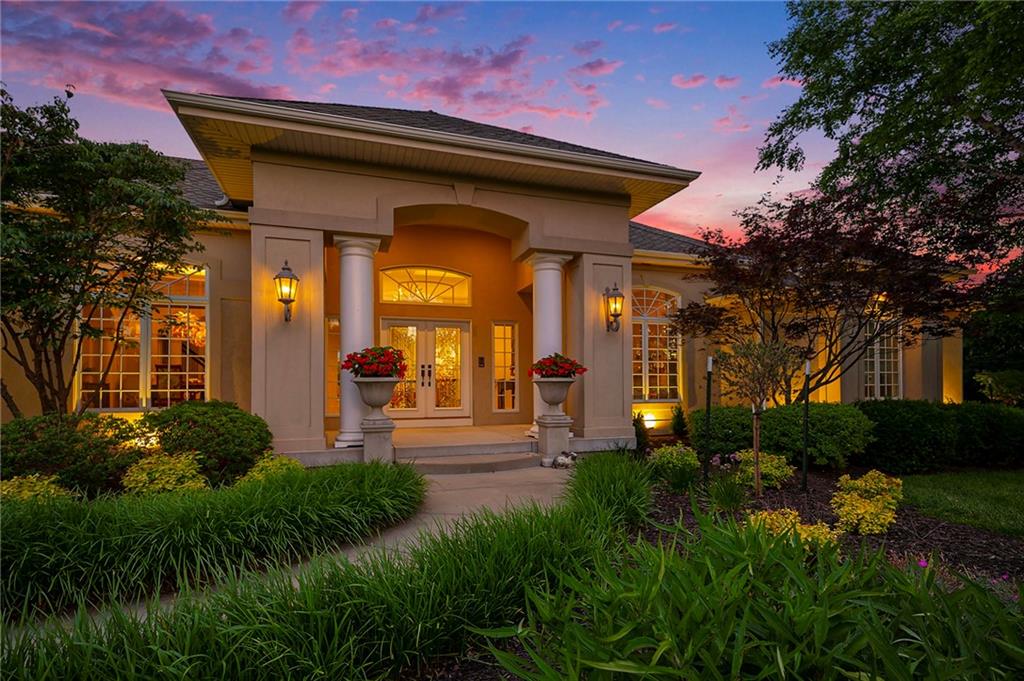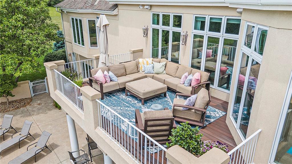 Experience tranquility and sophistication in this stunning 1.8-acre estate, ideally located just outside Kearney city limits and less than 30 minutes from downtown Kansas City, MO. Reimagined in 2021 by Portfolio Kitchen & Home, this home blends modern luxury with timeless elegance. Expansive floor-to-ceiling windows fill the main level with natural light while showcasing views of the sparkling 20’x40’ granite pool. The chef’s kitchen impresses with dual ovens, two Quartzite islands, a butler’s pantry with prep sink, Bosch and Wolf appliances, a wine refrigerator, hidden microwave and coffee station, and a spacious walk-in pantry. The lower level is perfect for entertaining, featuring a 128” projection screen with surround sound, custom wine cellar, sunken bar, exercise room, craft/dining area, and a large game space. A 60’x30’ outbuilding with an adjoining 28’x13’ RV bay includes heating, cooling, concrete floors, and a half bath. Refer to supplements for a complete list of additional features.