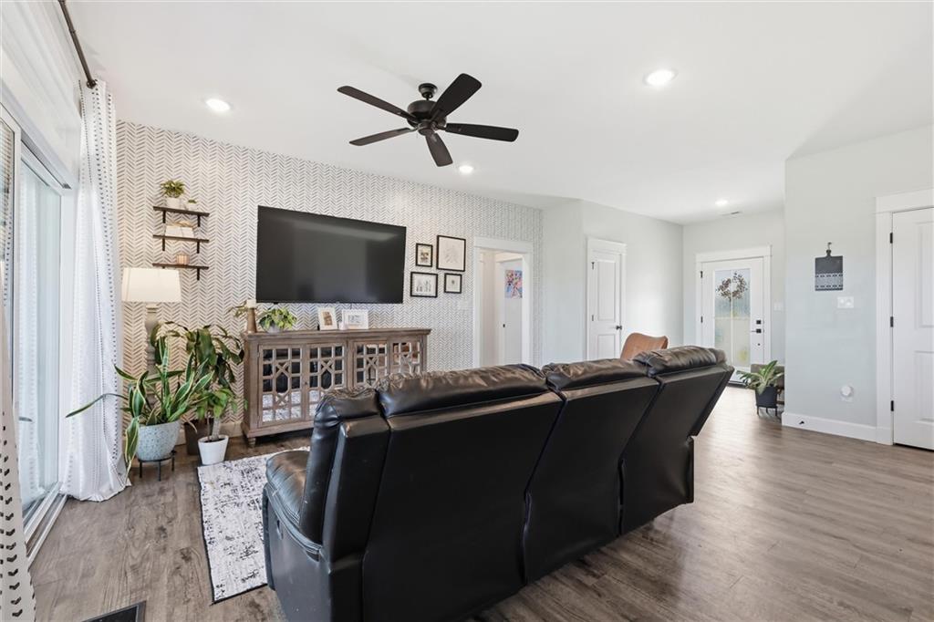 This nearly new home, built in 2023, is located in Shadow Ridge and sits directly behind Eudora Middle School. The open living space flows out to the covered back patio and fully fenced backyard. The kitchen features a large island, white quartz countertops, a walk-in pantry, and all kitchen appliances stay. The primary bedroom offers an en suite bath and a large closet, while the other two bedrooms are located on the opposite side of the home. Enjoy the benefits of a newer home with added personal touches throughout, such as fresh paint, wallpaper, and upgraded fixtures.