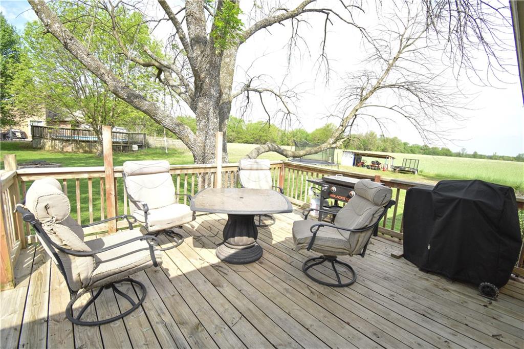 Two bedrooms and a bathroom upstairs and potential non-conforming Master Suite with bathroom downstairs. Kitchen with pantry and backyard deck access for easy entertaining. Large Living Room, attached garage and beautiful yard with view of farmland to the North. Located at the end of the cul-de-sac so minimal traffic. Large garden plot, ready to plant. Quiet neighbors with an easy commute to Harrisonville, Kansas City, or Truman Lake.
