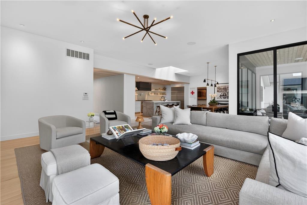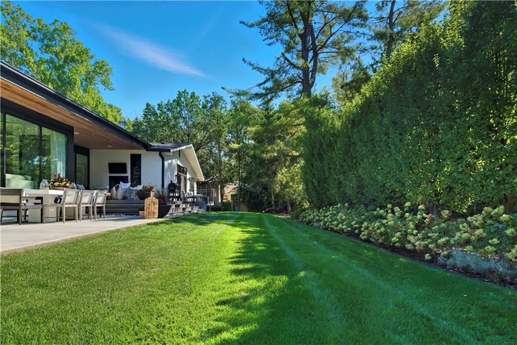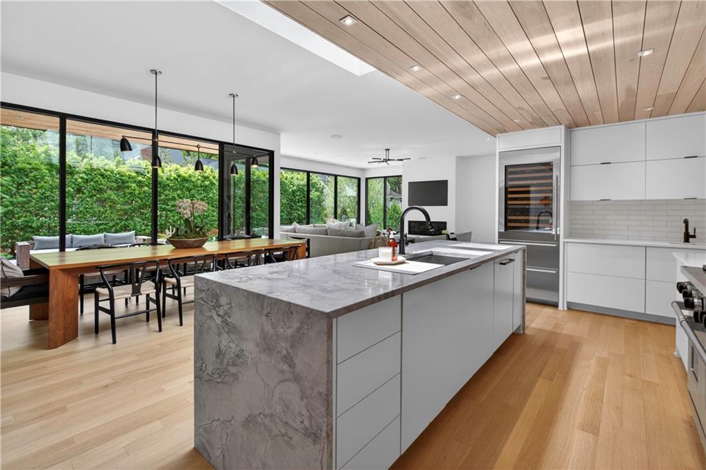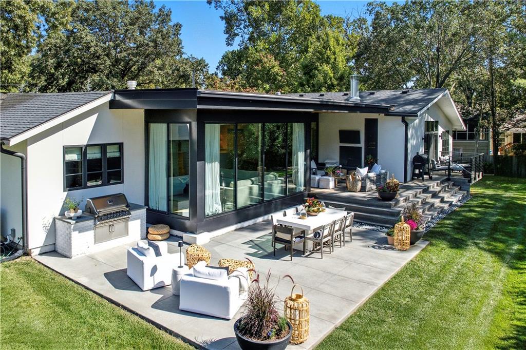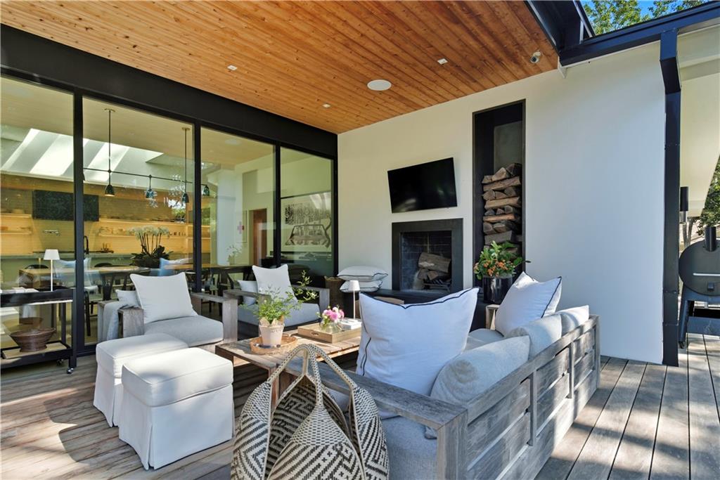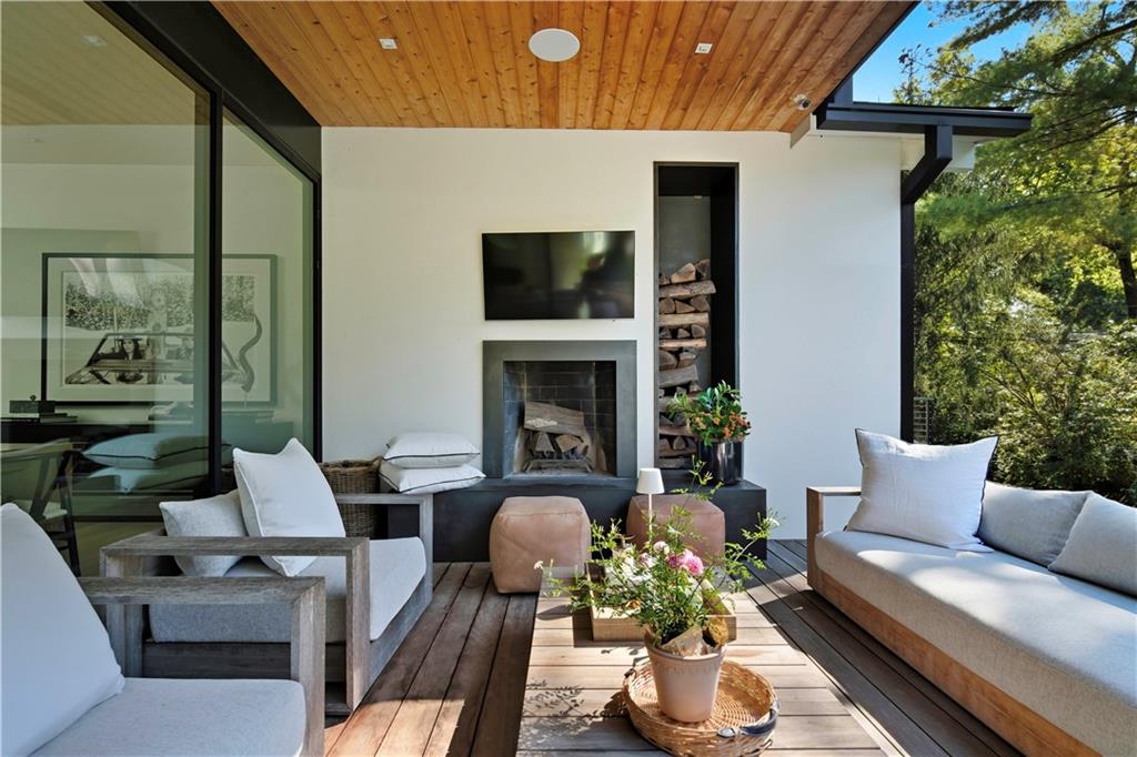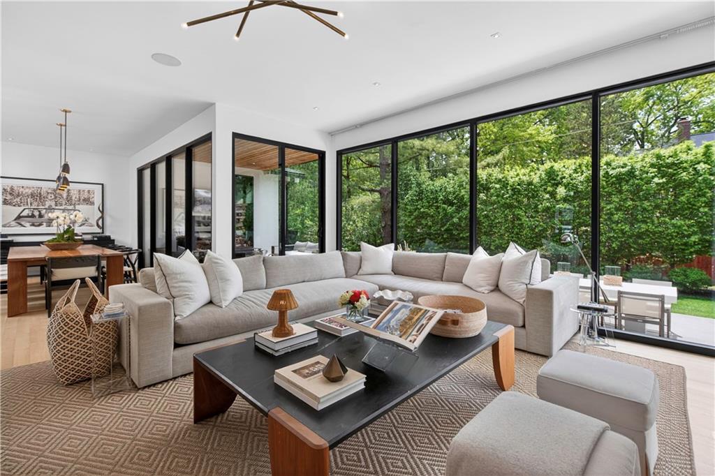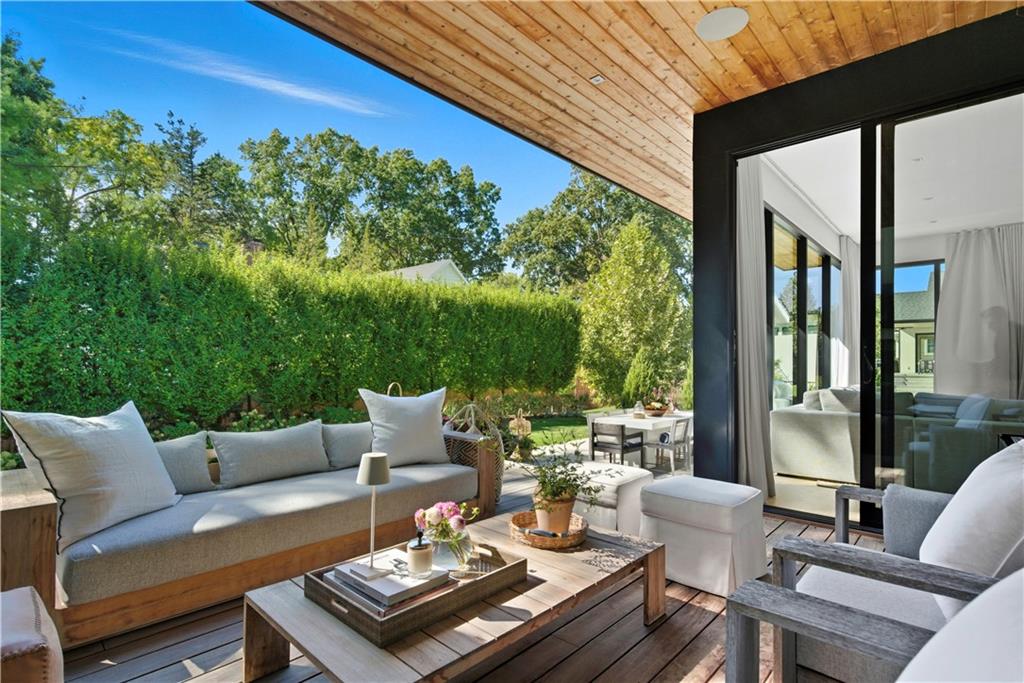This one-of-a-kind residence is nothing short of breathtaking. Effortlessly blending style, comfort, and sophistication, it captures the essence of relaxed California living. Every detail reflects a designer’s elevated vision, with thoughtfully curated, high-end finishes throughout. Taken down to the studs and completely reimagined for today’s lifestyle, this home offers everything you’ve been looking for and more. The open-concept floor plan is anchored by walls of windows that flood the space with natural light, creating a bright, airy atmosphere ideal for both everyday living and entertaining. The chef’s kitchen is a showstopper, featuring custom cabinetry, premium appliances, a walk-in pantry, and stunning finishes—all seamlessly opening to gracious living and dining areas. The primary suite is a true retreat, complete with a private deck, spacious walk-in closet, and a spa-inspired bathroom designed for relaxation. Each additional bedroom is generously sized, beautifully updated, and offers its own en suite bathroom—providing comfort and privacy for family and guests alike. The finished lower level is an exceptional extension of the home, offering a stylish living area, wet bar, full bath, and a non-conforming fifth bedroom with an egress window. An incredible added bonus: a spacious basement addition creates the perfect space for a dedicated home gym, playroom, or flex space. Designed for effortless living, the home features a centrally located laundry room convenient to all bedrooms, along with a fabulous private office overlooking the backyard. The setting is a true private oasis. Enjoy a gorgeous covered deck with an outdoor fireplace, built-in grill, and expansive patio—perfect for entertaining or quiet evenings at home. The beautifully landscaped grounds are highlighted by a stunning row of hornbeam trees, adding both privacy and timeless charm.