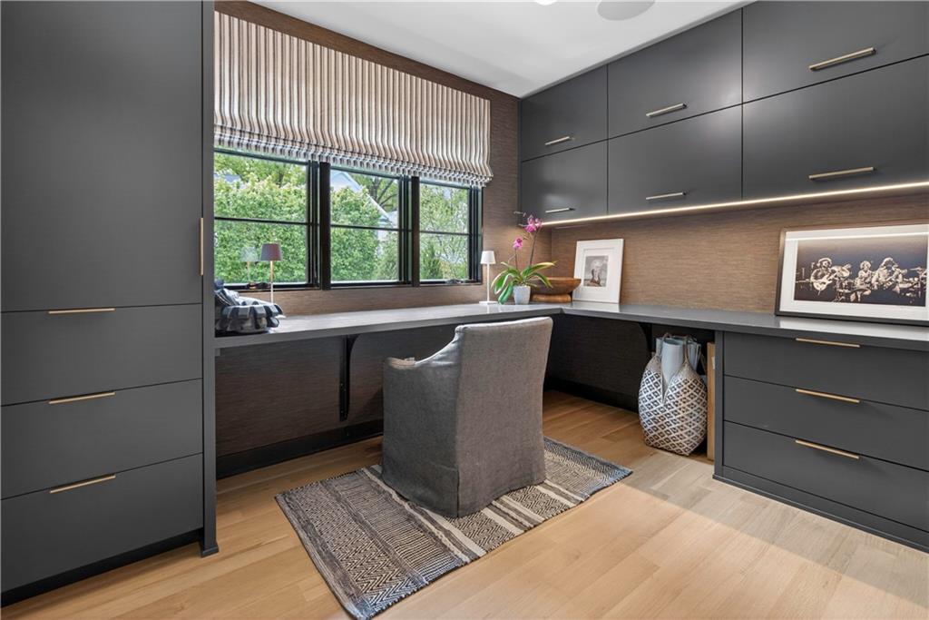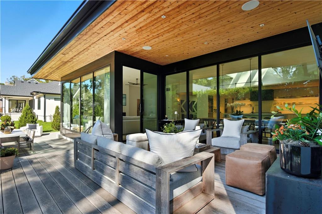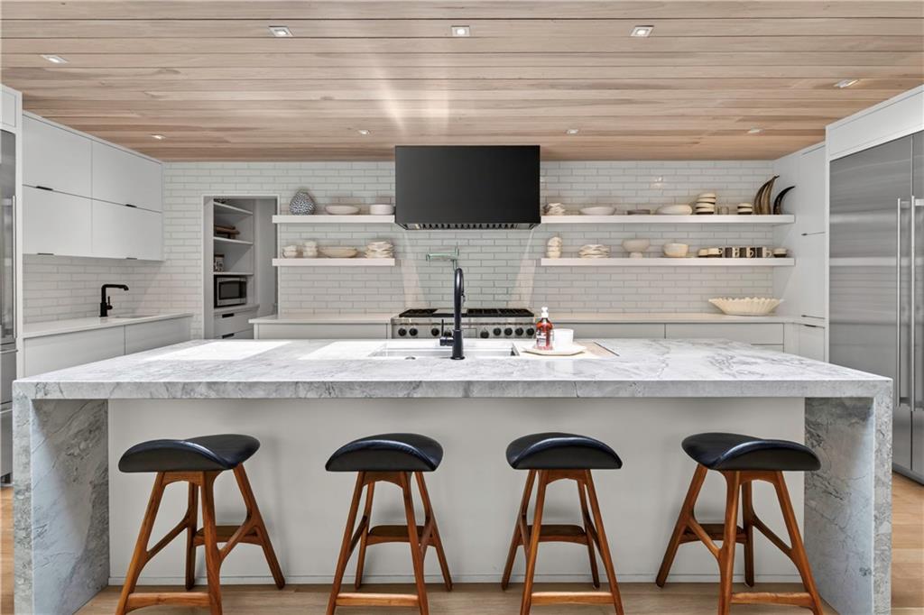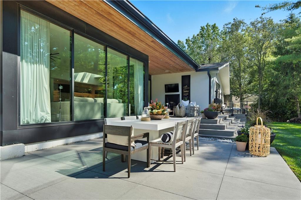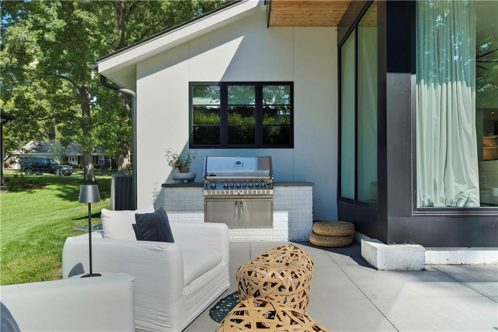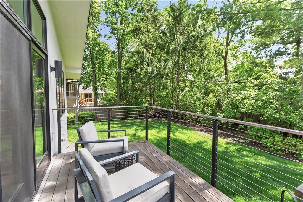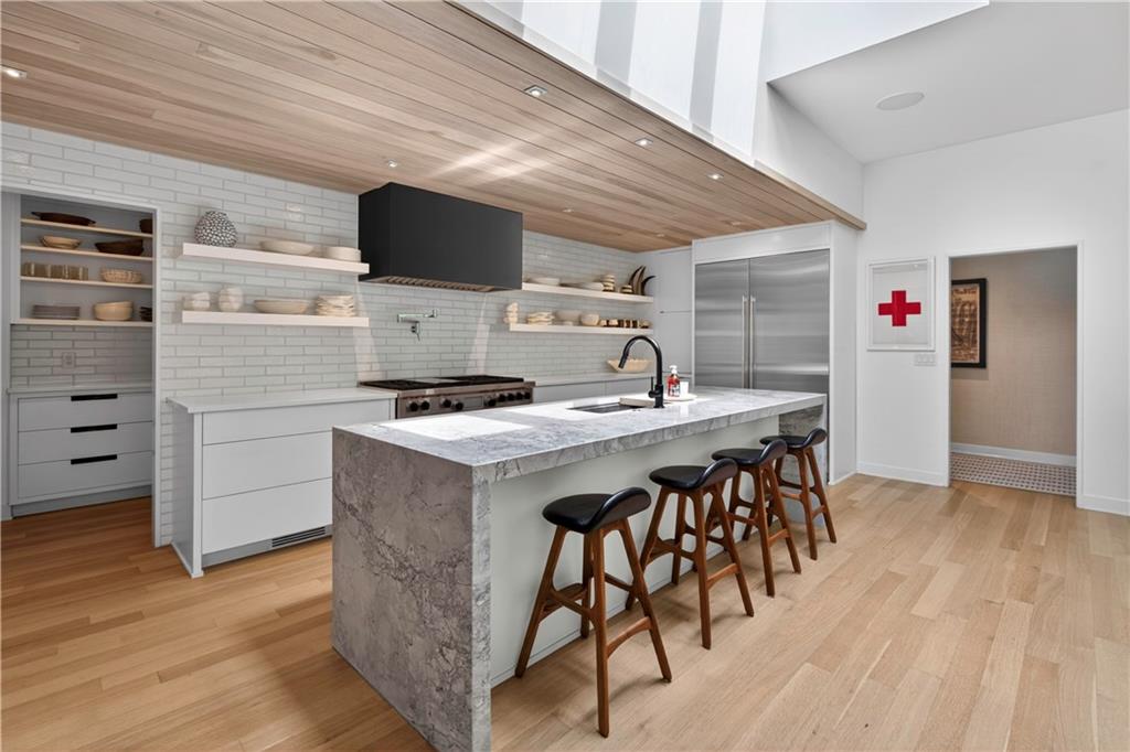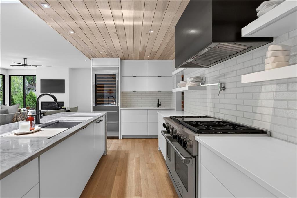 This one-of-a-kind residence is nothing short of breathtaking. Effortlessly blending style, comfort, and sophistication, it captures the essence of relaxed California living. Every detail reflects a designer’s elevated vision, with thoughtfully curated, high-end finishes throughout. Taken down to the studs and completely reimagined for today’s lifestyle, this home offers everything you’ve been looking for and more. The open-concept floor plan is anchored by walls of windows that flood the space with natural light, creating a bright, airy atmosphere ideal for both everyday living and entertaining. The chef’s kitchen is a showstopper, featuring custom cabinetry, premium appliances, a walk-in pantry, and stunning finishes—all seamlessly opening to gracious living and dining areas. The primary suite is a true retreat, complete with a private deck, spacious walk-in closet, and a spa-inspired bathroom designed for relaxation. Each additional bedroom is generously sized, beautifully updated, and offers its own en suite bathroom—providing comfort and privacy for family and guests alike. The finished lower level is an exceptional extension of the home, offering a stylish living area, wet bar, full bath, and a non-conforming fifth bedroom with an egress window. An incredible added bonus: a spacious basement addition creates the perfect space for a dedicated home gym, playroom, or flex space. Designed for effortless living, the home features a centrally located laundry room convenient to all bedrooms, along with a fabulous private office overlooking the backyard. The setting is a true private oasis. Enjoy a gorgeous covered deck with an outdoor fireplace, built-in grill, and expansive patio—perfect for entertaining or quiet evenings at home. The beautifully landscaped grounds are highlighted by a stunning row of hornbeam trees, adding both privacy and timeless charm.