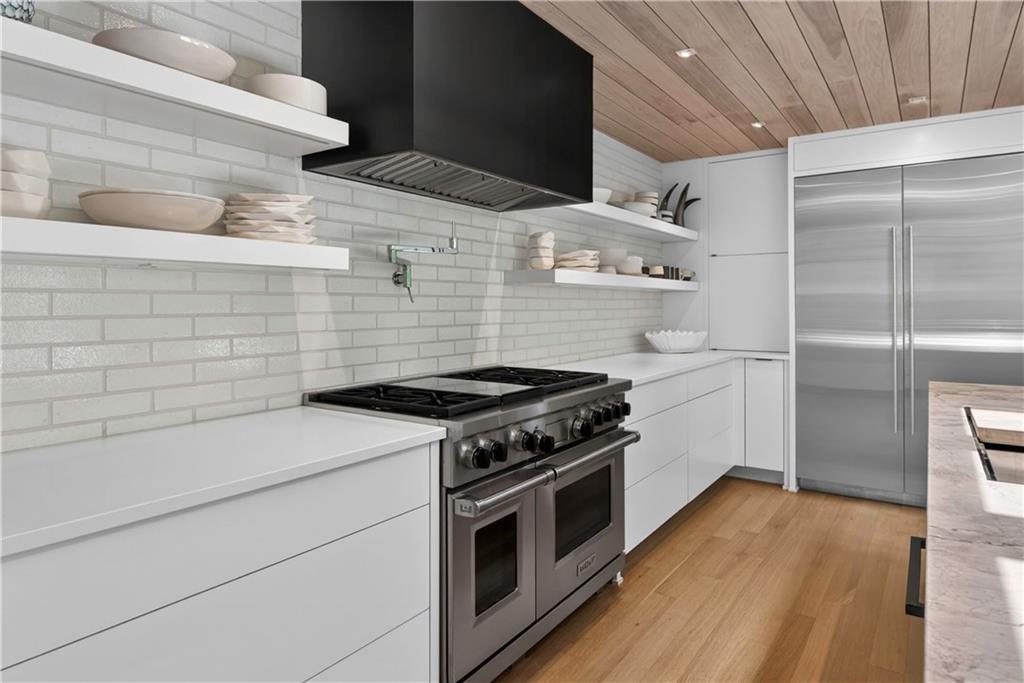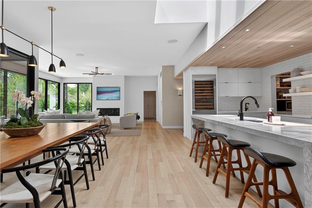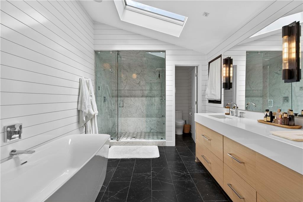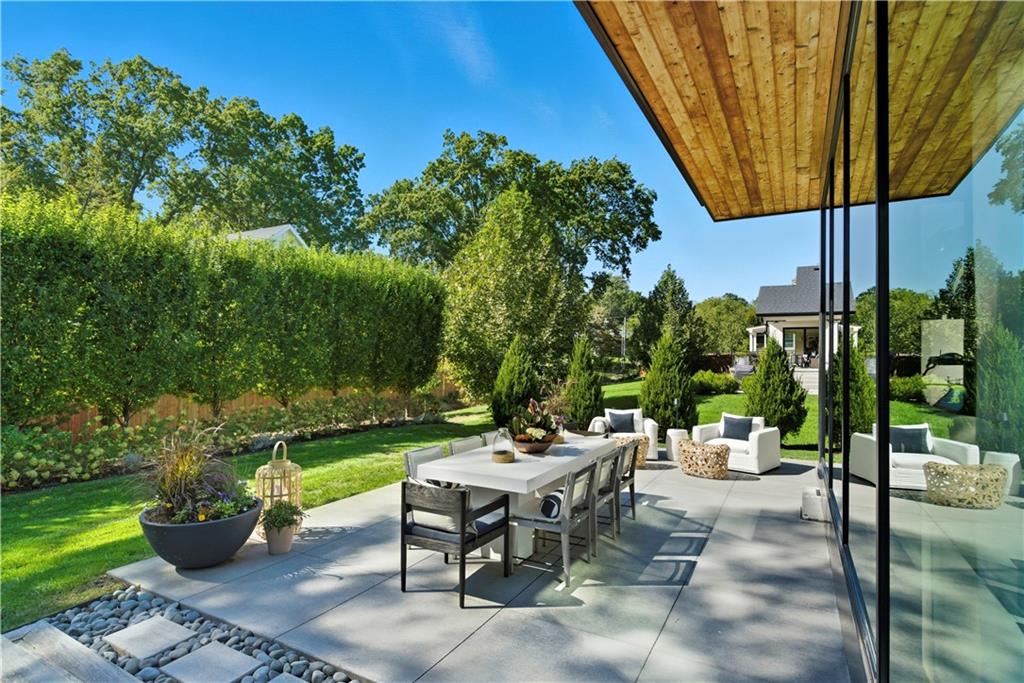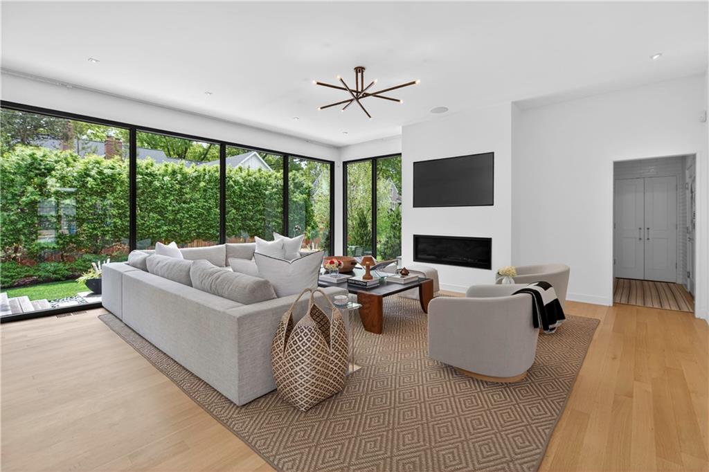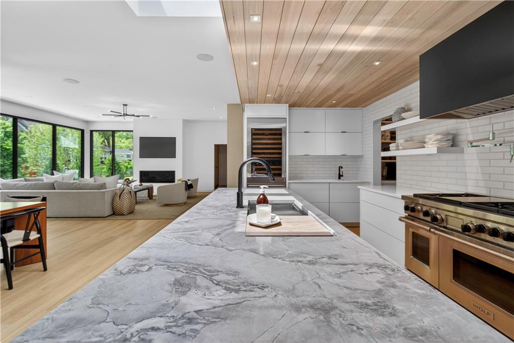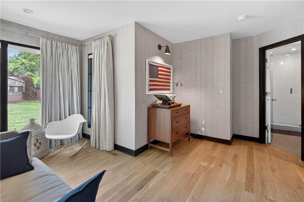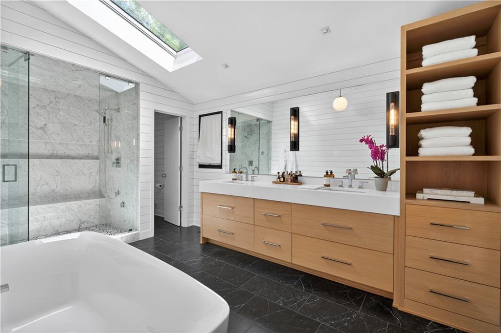 This one-of-a-kind residence is nothing short of breathtaking. Effortlessly blending style, comfort, and sophistication, it captures the essence of relaxed California living. Every detail reflects a designer’s elevated vision, with thoughtfully curated, high-end finishes throughout. Taken down to the studs and completely reimagined for today’s lifestyle, this home offers everything you’ve been looking for and more. The open-concept floor plan is anchored by walls of windows that flood the space with natural light, creating a bright, airy atmosphere ideal for both everyday living and entertaining. The chef’s kitchen is a showstopper, featuring custom cabinetry, premium appliances, a walk-in pantry, and stunning finishes—all seamlessly opening to gracious living and dining areas. The primary suite is a true retreat, complete with a private deck, spacious walk-in closet, and a spa-inspired bathroom designed for relaxation. Each additional bedroom is generously sized, beautifully updated, and offers its own en suite bathroom—providing comfort and privacy for family and guests alike. The finished lower level is an exceptional extension of the home, offering a stylish living area, wet bar, full bath, and a non-conforming fifth bedroom with an egress window. An incredible added bonus: a spacious basement addition creates the perfect space for a dedicated home gym, playroom, or flex space. Designed for effortless living, the home features a centrally located laundry room convenient to all bedrooms, along with a fabulous private office overlooking the backyard. The setting is a true private oasis. Enjoy a gorgeous covered deck with an outdoor fireplace, built-in grill, and expansive patio—perfect for entertaining or quiet evenings at home. The beautifully landscaped grounds are highlighted by a stunning row of hornbeam trees, adding both privacy and timeless charm.