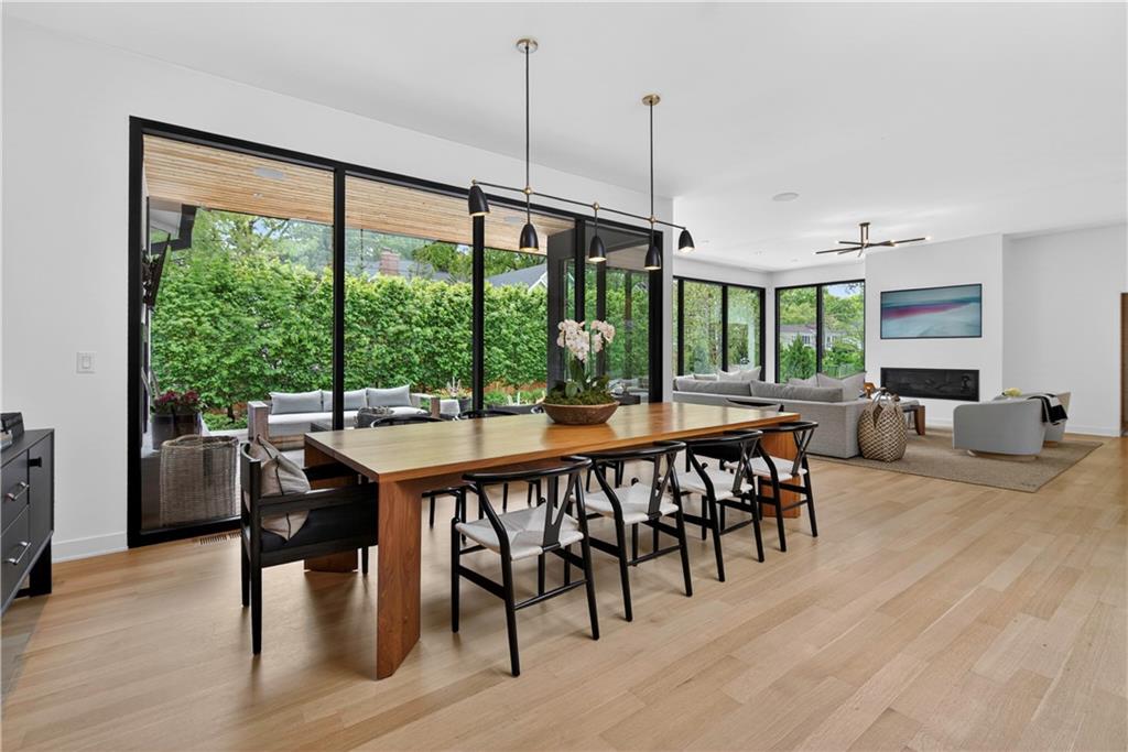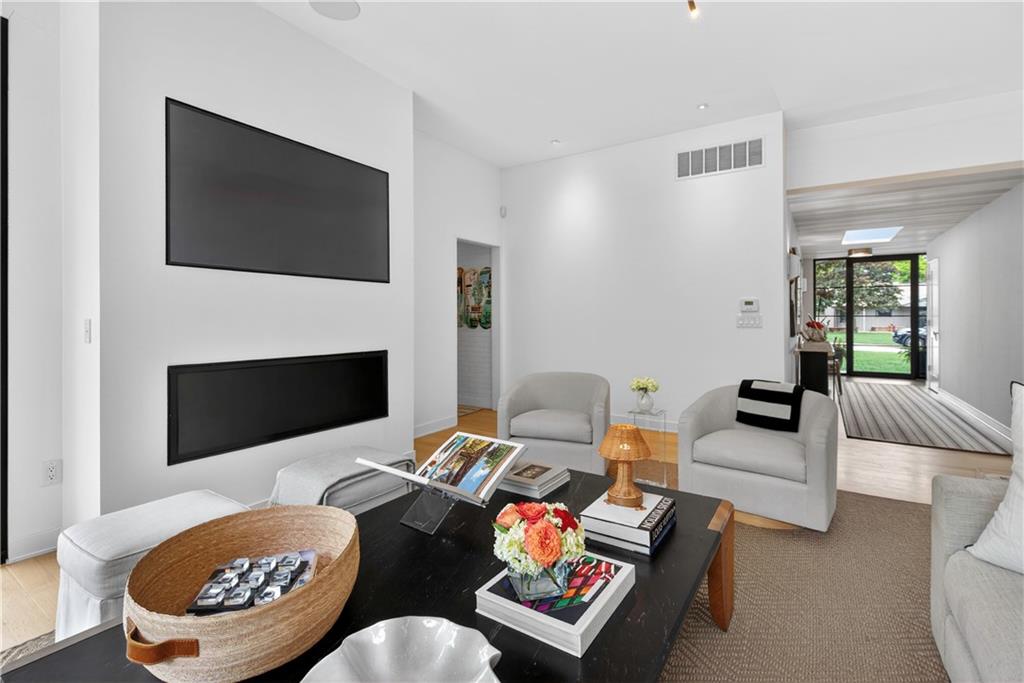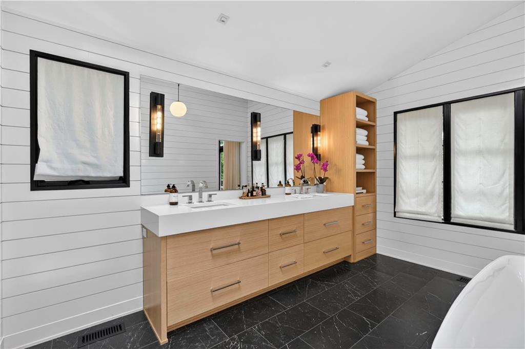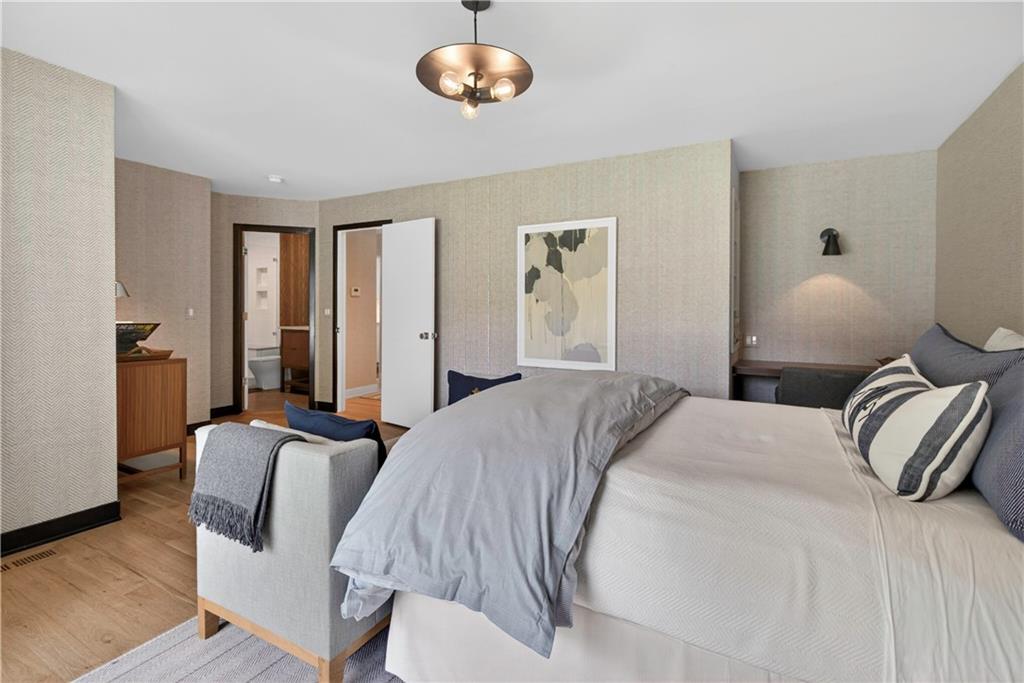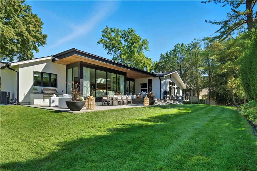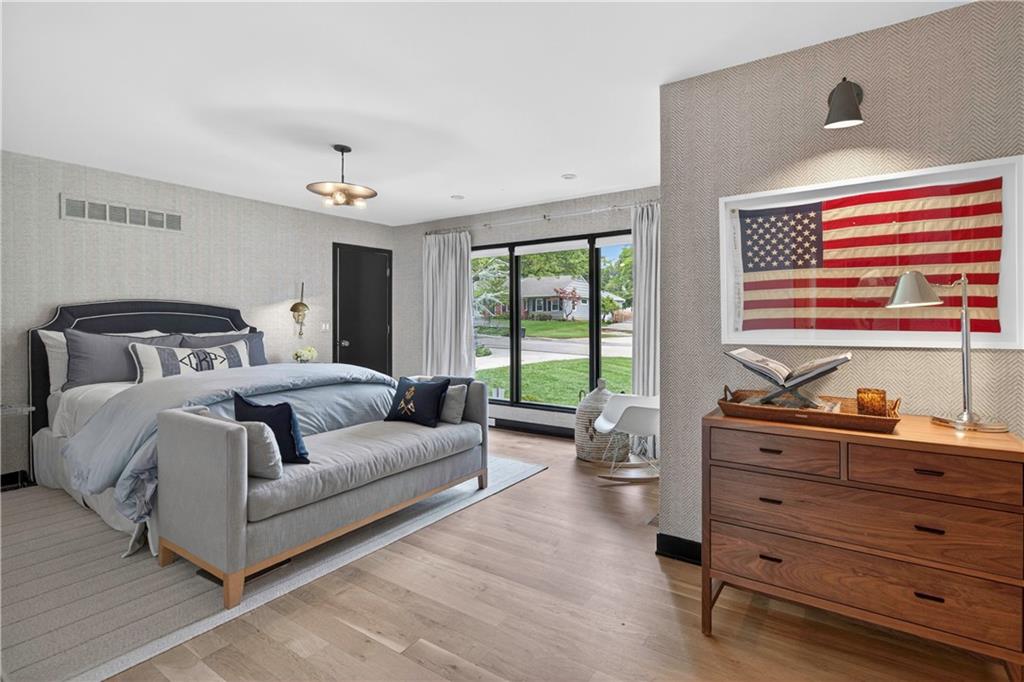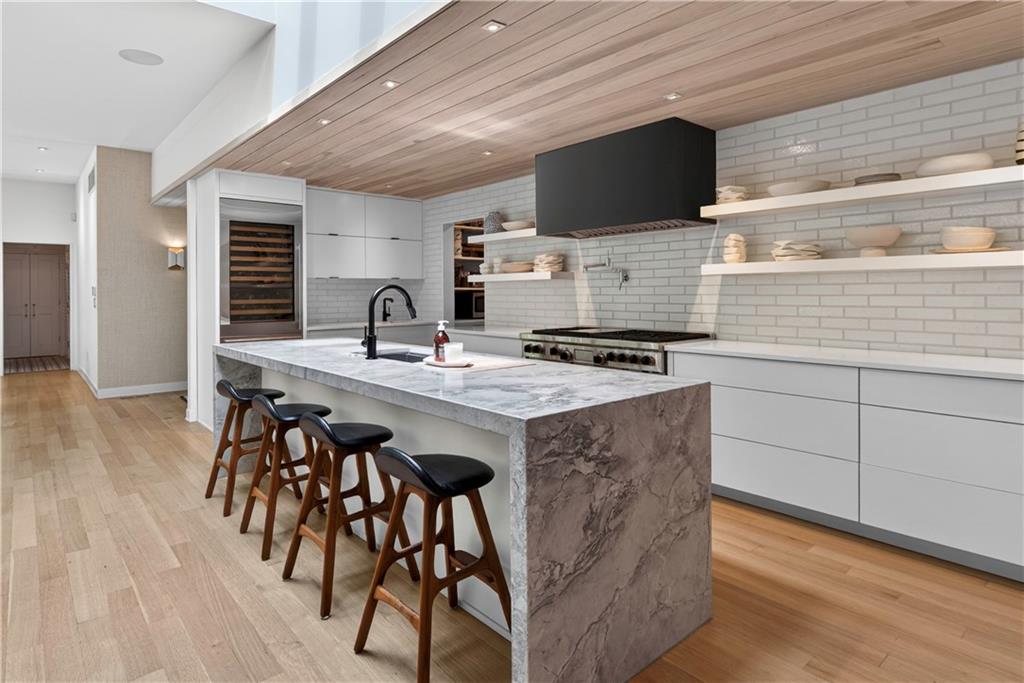 This one-of-a-kind residence is nothing short of breathtaking. Effortlessly blending style, comfort, and sophistication, it captures the essence of relaxed California living. Every detail reflects a designer’s elevated vision, with thoughtfully curated, high-end finishes throughout. Taken down to the studs and completely reimagined for today’s lifestyle, this home offers everything you’ve been looking for and more. The open-concept floor plan is anchored by walls of windows that flood the space with natural light, creating a bright, airy atmosphere ideal for both everyday living and entertaining. The chef’s kitchen is a showstopper, featuring custom cabinetry, premium appliances, a walk-in pantry, and stunning finishes—all seamlessly opening to gracious living and dining areas. The primary suite is a true retreat, complete with a private deck, spacious walk-in closet, and a spa-inspired bathroom designed for relaxation. Each additional bedroom is generously sized, beautifully updated, and offers its own en suite bathroom—providing comfort and privacy for family and guests alike. The finished lower level is an exceptional extension of the home, offering a stylish living area, wet bar, full bath, and a non-conforming fifth bedroom with an egress window. An incredible added bonus: a spacious basement addition creates the perfect space for a dedicated home gym, playroom, or flex space. Designed for effortless living, the home features a centrally located laundry room convenient to all bedrooms, along with a fabulous private office overlooking the backyard. The setting is a true private oasis. Enjoy a gorgeous covered deck with an outdoor fireplace, built-in grill, and expansive patio—perfect for entertaining or quiet evenings at home. The beautifully landscaped grounds are highlighted by a stunning row of hornbeam trees, adding both privacy and timeless charm.