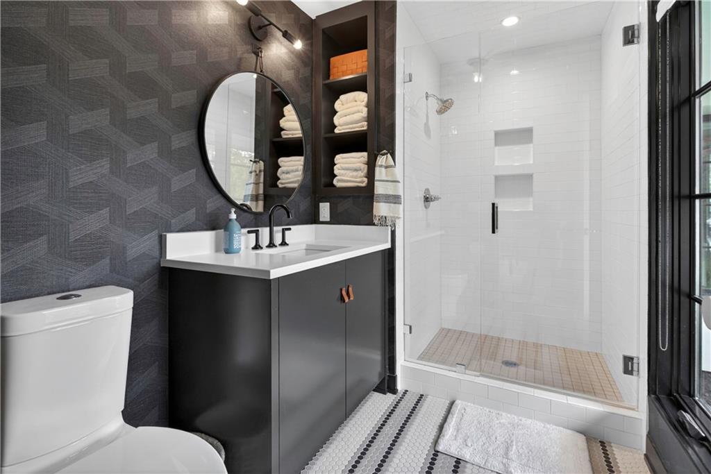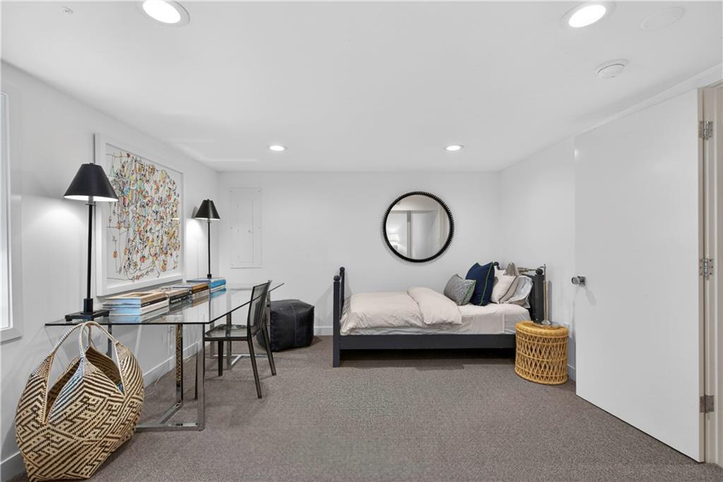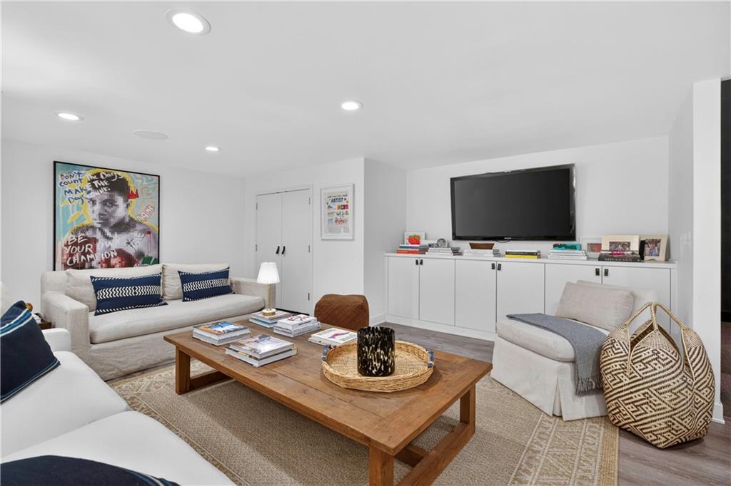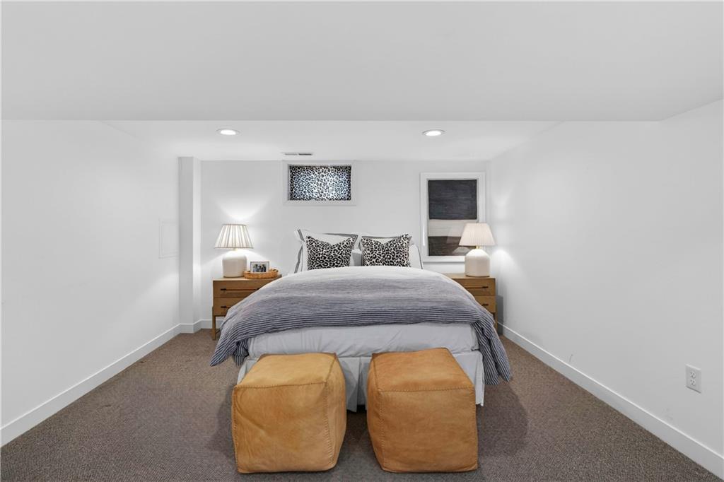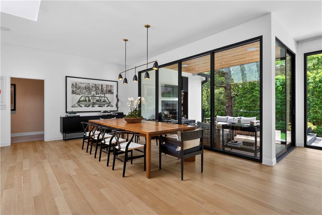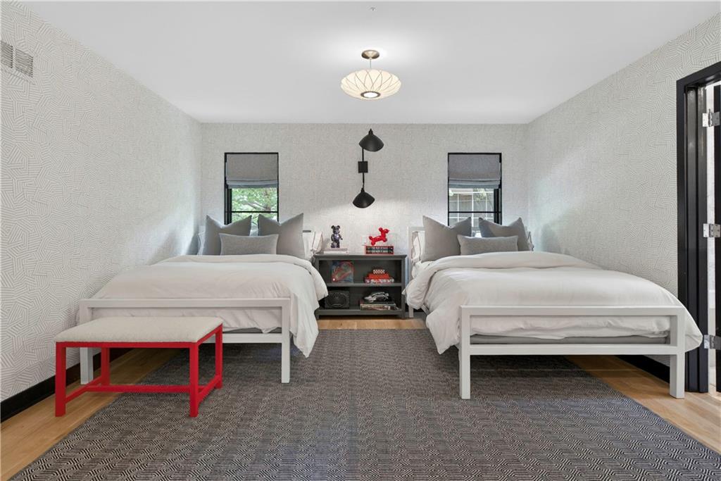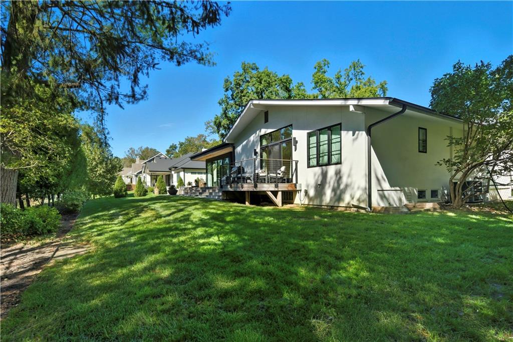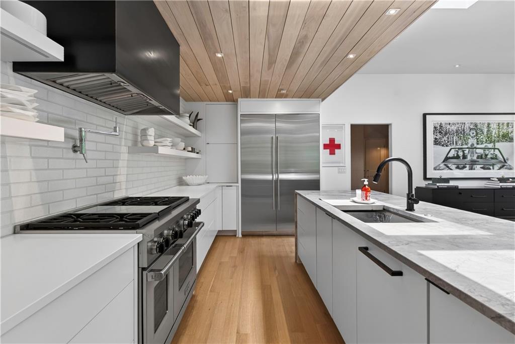 This one-of-a-kind residence is nothing short of breathtaking. Effortlessly blending style, comfort, and sophistication, it captures the essence of relaxed California living. Every detail reflects a designer’s elevated vision, with thoughtfully curated, high-end finishes throughout. Taken down to the studs and completely reimagined for today’s lifestyle, this home offers everything you’ve been looking for and more. The open-concept floor plan is anchored by walls of windows that flood the space with natural light, creating a bright, airy atmosphere ideal for both everyday living and entertaining. The chef’s kitchen is a showstopper, featuring custom cabinetry, premium appliances, a walk-in pantry, and stunning finishes—all seamlessly opening to gracious living and dining areas. The primary suite is a true retreat, complete with a private deck, spacious walk-in closet, and a spa-inspired bathroom designed for relaxation. Each additional bedroom is generously sized, beautifully updated, and offers its own en suite bathroom—providing comfort and privacy for family and guests alike. The finished lower level is an exceptional extension of the home, offering a stylish living area, wet bar, full bath, and a non-conforming fifth bedroom with an egress window. An incredible added bonus: a spacious basement addition creates the perfect space for a dedicated home gym, playroom, or flex space. Designed for effortless living, the home features a centrally located laundry room convenient to all bedrooms, along with a fabulous private office overlooking the backyard. The setting is a true private oasis. Enjoy a gorgeous covered deck with an outdoor fireplace, built-in grill, and expansive patio—perfect for entertaining or quiet evenings at home. The beautifully landscaped grounds are highlighted by a stunning row of hornbeam trees, adding both privacy and timeless charm.