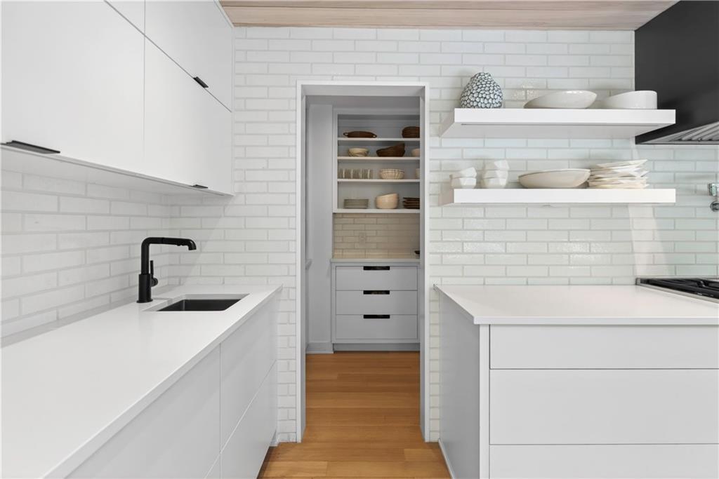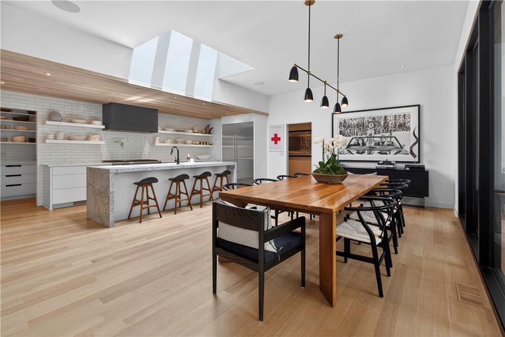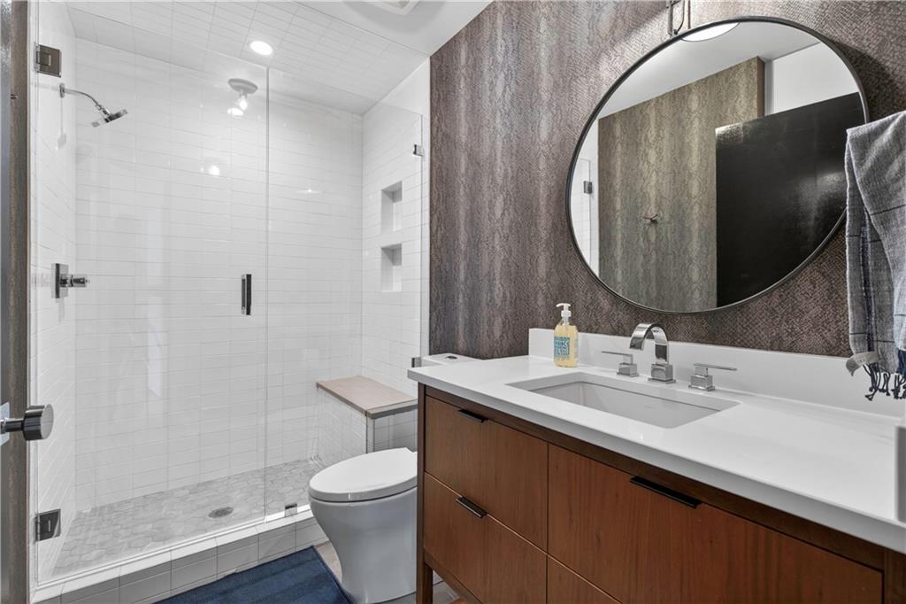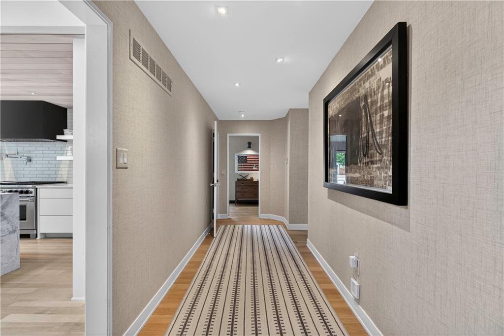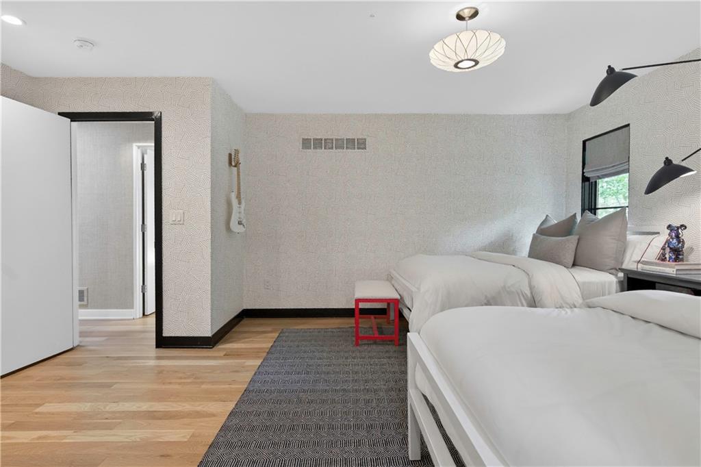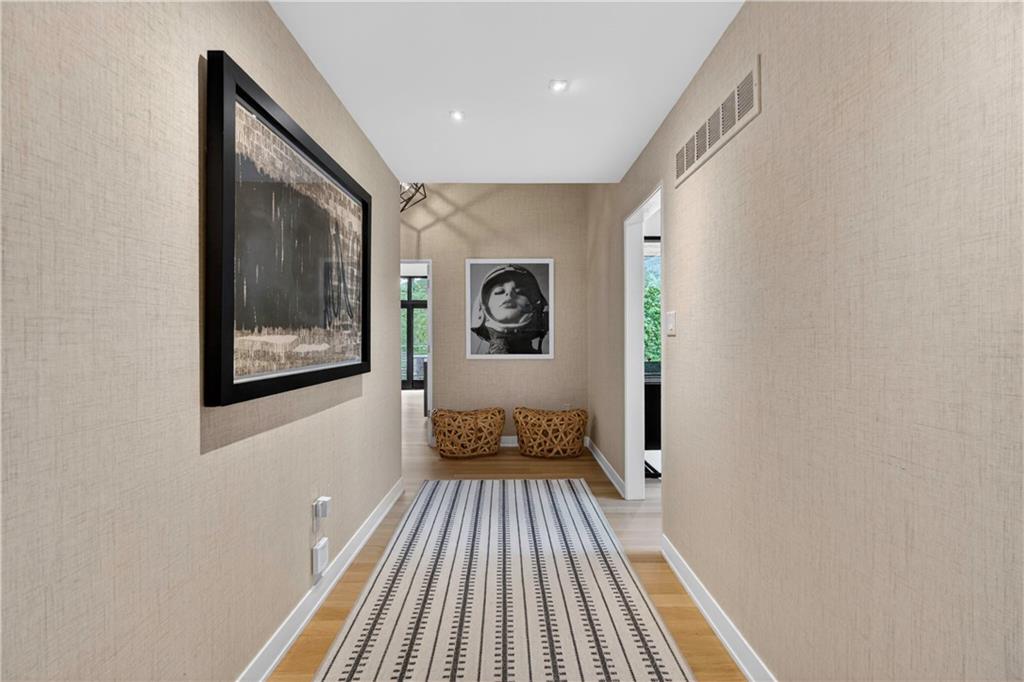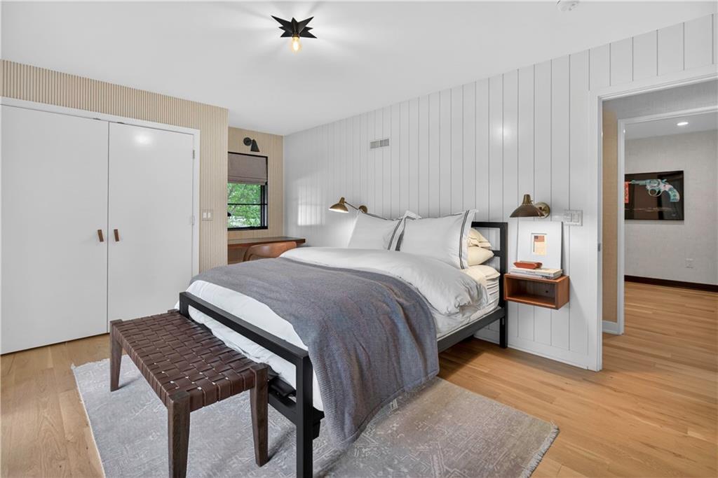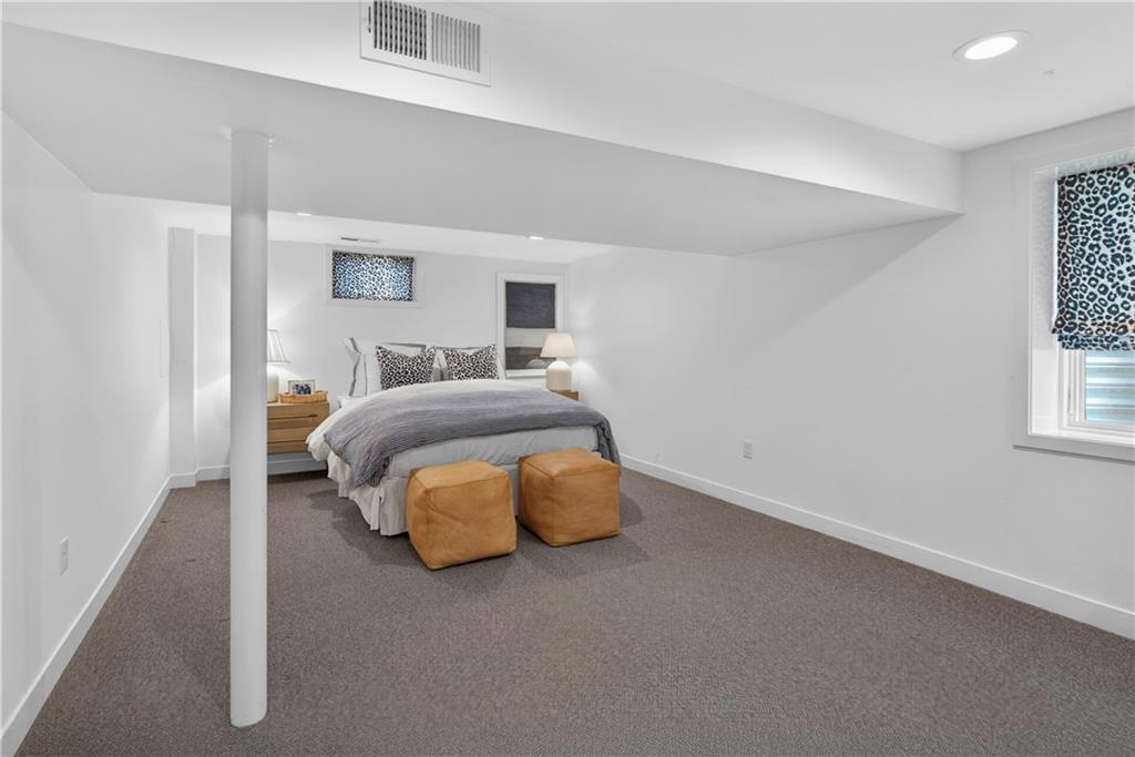 This one-of-a-kind residence is nothing short of breathtaking. Effortlessly blending style, comfort, and sophistication, it captures the essence of relaxed California living. Every detail reflects a designer’s elevated vision, with thoughtfully curated, high-end finishes throughout. Taken down to the studs and completely reimagined for today’s lifestyle, this home offers everything you’ve been looking for and more. The open-concept floor plan is anchored by walls of windows that flood the space with natural light, creating a bright, airy atmosphere ideal for both everyday living and entertaining. The chef’s kitchen is a showstopper, featuring custom cabinetry, premium appliances, a walk-in pantry, and stunning finishes—all seamlessly opening to gracious living and dining areas. The primary suite is a true retreat, complete with a private deck, spacious walk-in closet, and a spa-inspired bathroom designed for relaxation. Each additional bedroom is generously sized, beautifully updated, and offers its own en suite bathroom—providing comfort and privacy for family and guests alike. The finished lower level is an exceptional extension of the home, offering a stylish living area, wet bar, full bath, and a non-conforming fifth bedroom with an egress window. An incredible added bonus: a spacious basement addition creates the perfect space for a dedicated home gym, playroom, or flex space. Designed for effortless living, the home features a centrally located laundry room convenient to all bedrooms, along with a fabulous private office overlooking the backyard. The setting is a true private oasis. Enjoy a gorgeous covered deck with an outdoor fireplace, built-in grill, and expansive patio—perfect for entertaining or quiet evenings at home. The beautifully landscaped grounds are highlighted by a stunning row of hornbeam trees, adding both privacy and timeless charm.