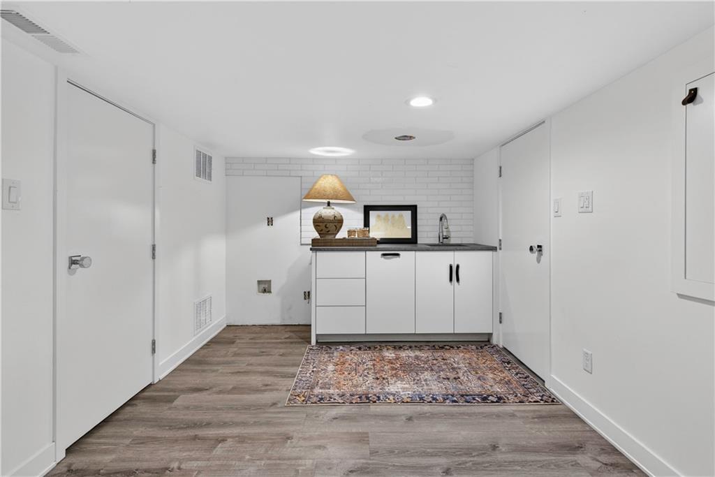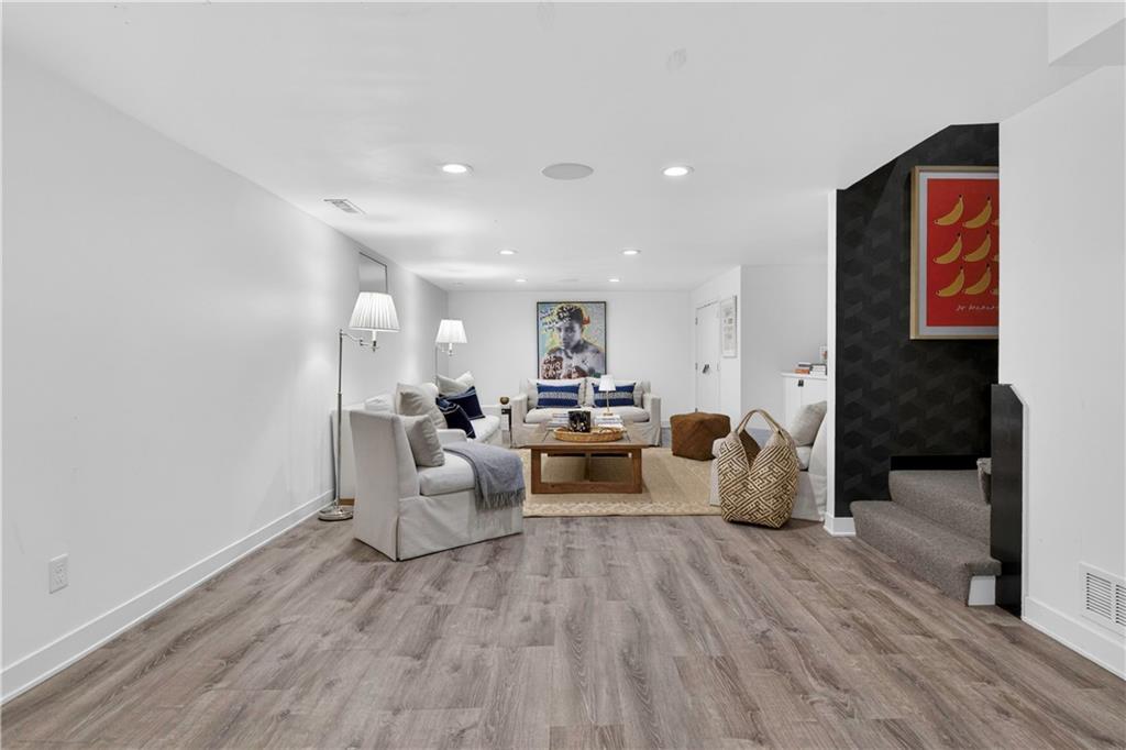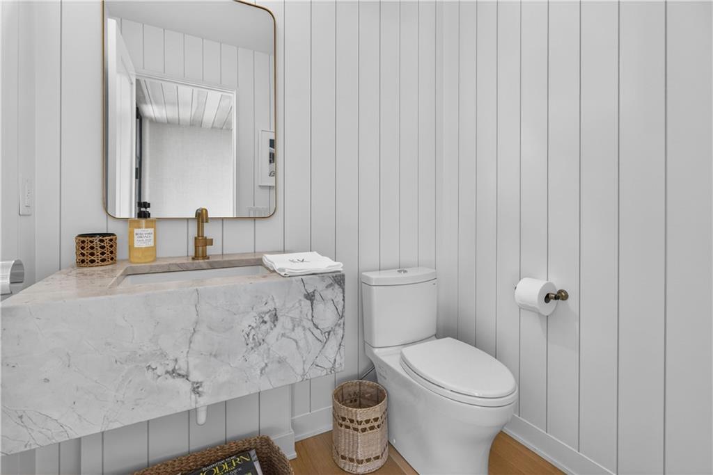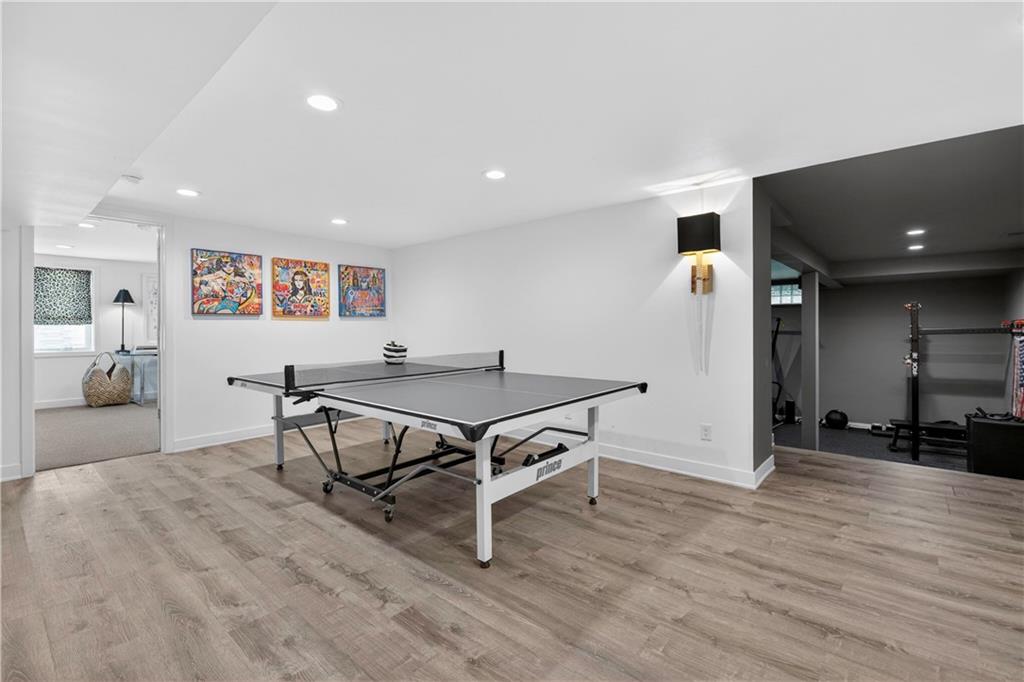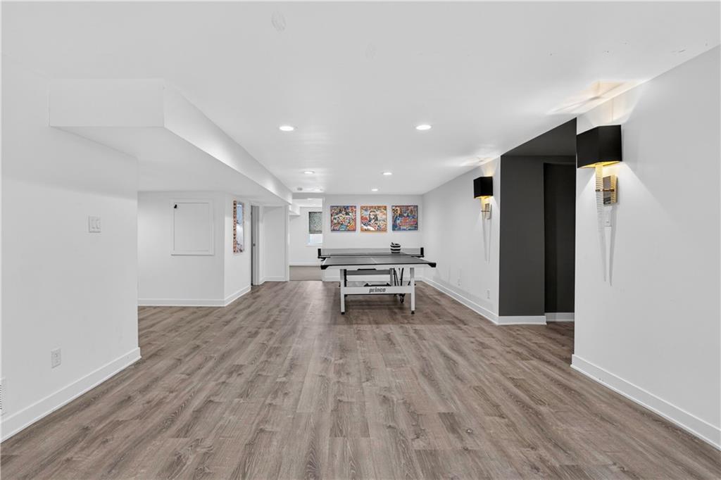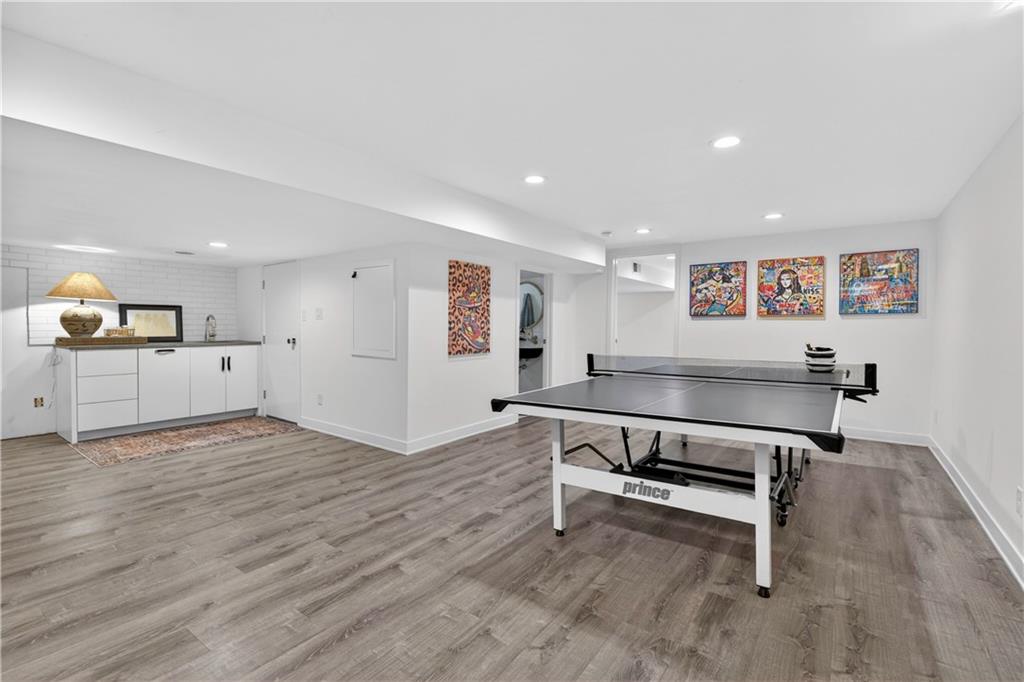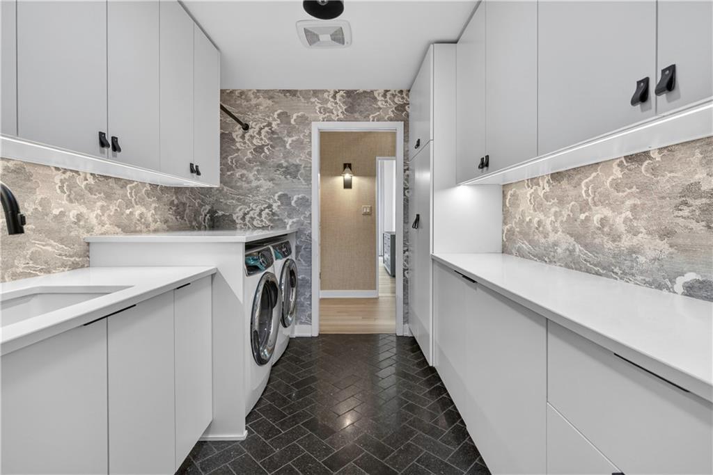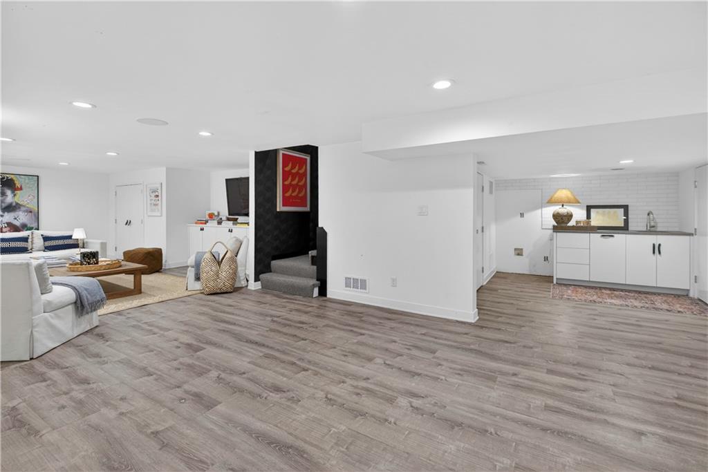 This one-of-a-kind residence is nothing short of breathtaking. Effortlessly blending style, comfort, and sophistication, it captures the essence of relaxed California living. Every detail reflects a designer’s elevated vision, with thoughtfully curated, high-end finishes throughout. Taken down to the studs and completely reimagined for today’s lifestyle, this home offers everything you’ve been looking for and more. The open-concept floor plan is anchored by walls of windows that flood the space with natural light, creating a bright, airy atmosphere ideal for both everyday living and entertaining. The chef’s kitchen is a showstopper, featuring custom cabinetry, premium appliances, a walk-in pantry, and stunning finishes—all seamlessly opening to gracious living and dining areas. The primary suite is a true retreat, complete with a private deck, spacious walk-in closet, and a spa-inspired bathroom designed for relaxation. Each additional bedroom is generously sized, beautifully updated, and offers its own en suite bathroom—providing comfort and privacy for family and guests alike. The finished lower level is an exceptional extension of the home, offering a stylish living area, wet bar, full bath, and a non-conforming fifth bedroom with an egress window. An incredible added bonus: a spacious basement addition creates the perfect space for a dedicated home gym, playroom, or flex space. Designed for effortless living, the home features a centrally located laundry room convenient to all bedrooms, along with a fabulous private office overlooking the backyard. The setting is a true private oasis. Enjoy a gorgeous covered deck with an outdoor fireplace, built-in grill, and expansive patio—perfect for entertaining or quiet evenings at home. The beautifully landscaped grounds are highlighted by a stunning row of hornbeam trees, adding both privacy and timeless charm.