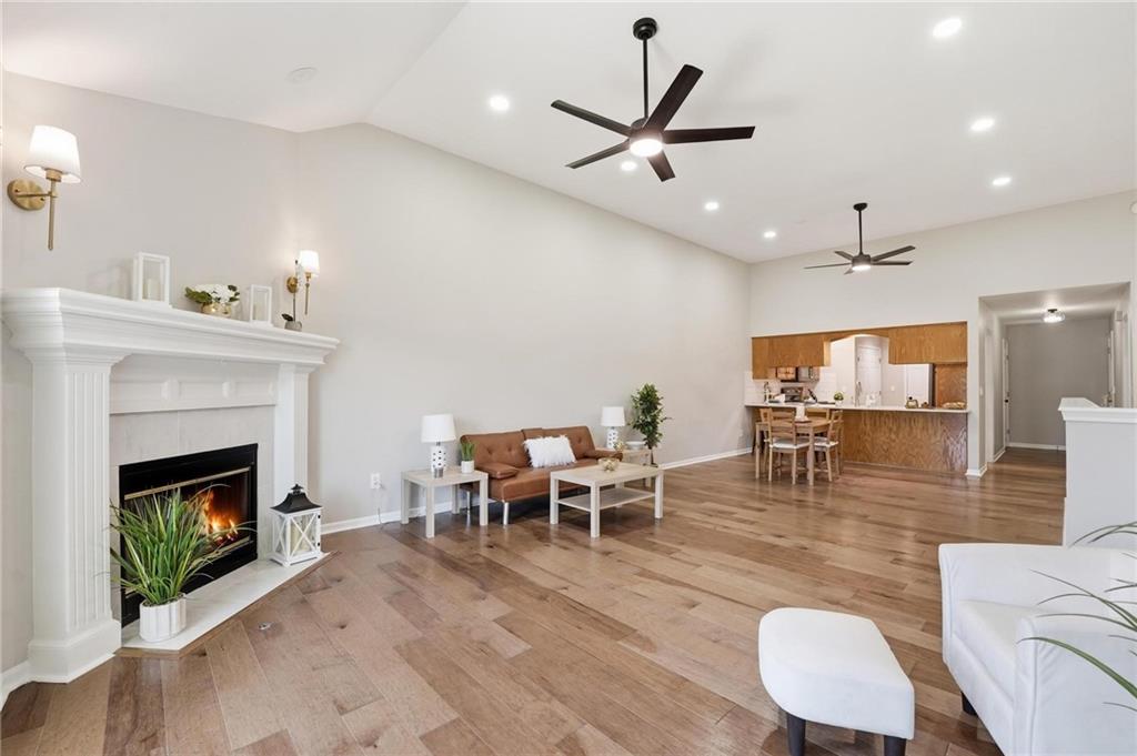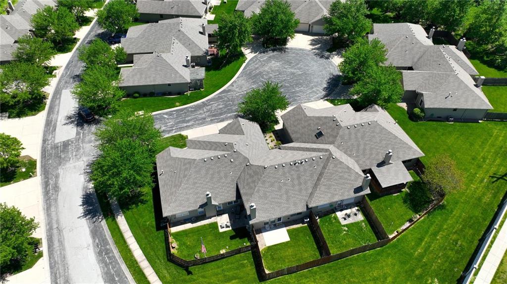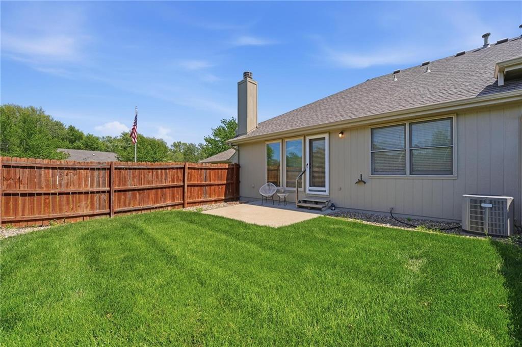 Experience effortless living in this beautifully remodeled ranch townhome featuring true main-level living, maintenance-provided convenience, and an ideal location. From the moment you enter, you’ll notice soaring vaulted ceilings, a bright airy feel, updated lighting with dimmer switches, stylish new flooring, and ceiling fans with remote controls for everyday comfort. Fresh neutral paint and thoughtful finishes make this home polished, welcoming, and move-in ready. The open-concept design creates an easy flow between the kitchen, dining, and living spaces—perfect for relaxing or entertaining. The kitchen offers quartz countertops, stainless/black appliances, and nearby main-level laundry for added convenience. The main floor includes two bedrooms and two full bathrooms, highlighted by a spacious primary suite with a quartz countertop, dual vanity, walk-in shower, and generous walk-in closet. The second main-level bathroom has also been tastefully updated, while all baths feature exquisite tile work and upscale finishes. The living room offers a striking yet comfortable atmosphere with a cozy fireplace and direct access to the private back patio and fenced yard. A convenient gate opens to additional green space beyond the fence. The finished lower level expands your living options with a large family room, a third full bathroom, and a non-conforming third bedroom—ideal for guests, office space, or hobbies. You’ll also love the oversized unfinished storage room with excellent potential for future finished square footage. Situated on a quiet cul-de-sac with a two-car garage, this home combines comfort and convenience in one exceptional package. Enjoy quick highway access with an easy commute to Kansas City International Airport, Downtown Kansas City, shopping, dining, and more—all within the desirable Staley High School attendance area.