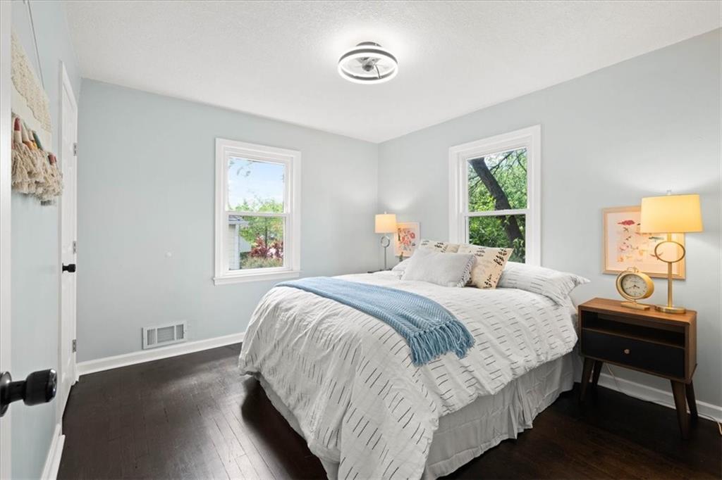 You're going to love this charming Cape Cod inspired home with tons of original character inside and out. This updated 5-bedroom, 2-bathroom home sits on a spacious lot with beautiful mature trees and welcoming front porch. 1,551 square feet of living space includes 3 bedrooms and 1 bath on the main floor with hardwood floors throughout the home. The updated kitchen features quartz countertops, all stainless steel appliances and a perfect view of the backyard. Upstairs you'll find 2 bedrooms and 1 bath with lots of storage. The full, unfinished basement provides more storage plus the washer and dryer which stay with the property. Step outside to enjoy the privacy-fenced backyard with spacious patio. The home has a 1-car garage with plenty of additional parking with a large, extended driveway and private parking pad. Conveniently located just minutes from stores, restaurants, and highway access for easy commutes to anywhere in the metro! Your new home awaits so schedule your visit today!