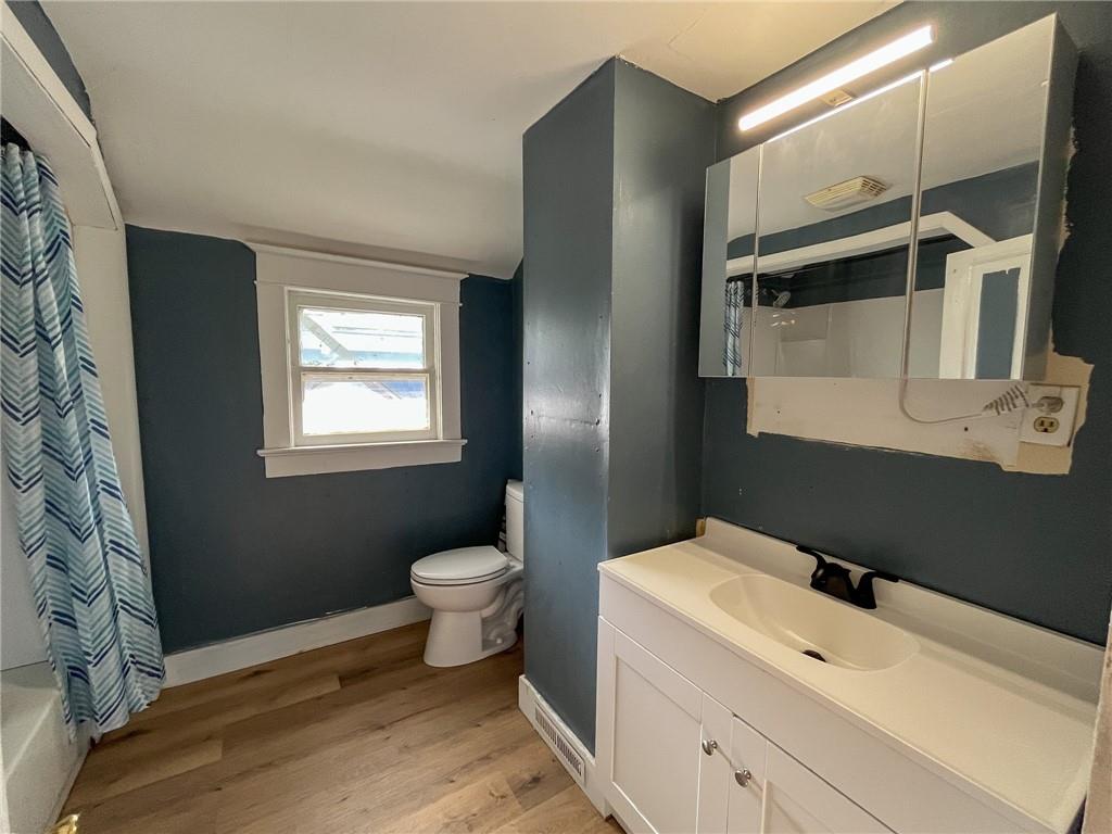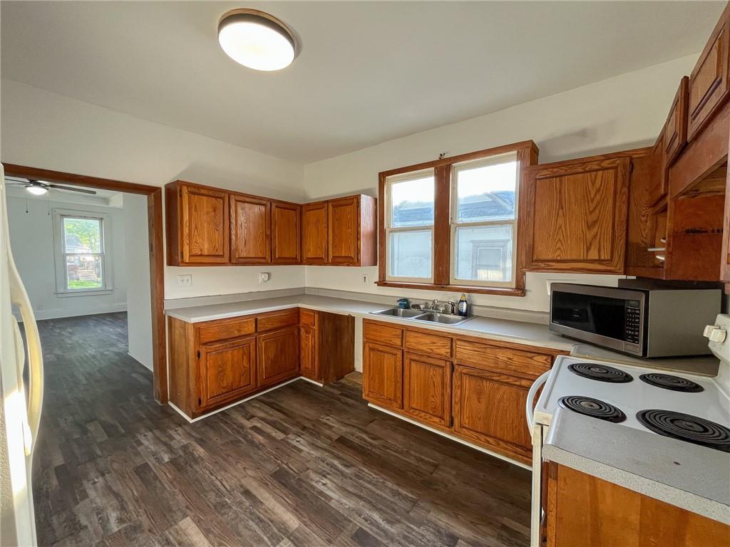 An affordable spacious home in Trenton! This home has had some fresh updates done recently, including new paint, and redone flooring! The main level features a large living room, a bedroom with on-suite half bath, and the kitchen. Upstairs there are three additional bedrooms with a full bathroom. The original hardwood floors have been resurfaced and give tons of character and charm. Downstairs there is a basement for the utilities and furnace. Outside this home sits on a small corner lot - with a detached two car garage! Come take a look today