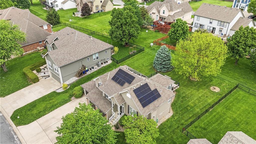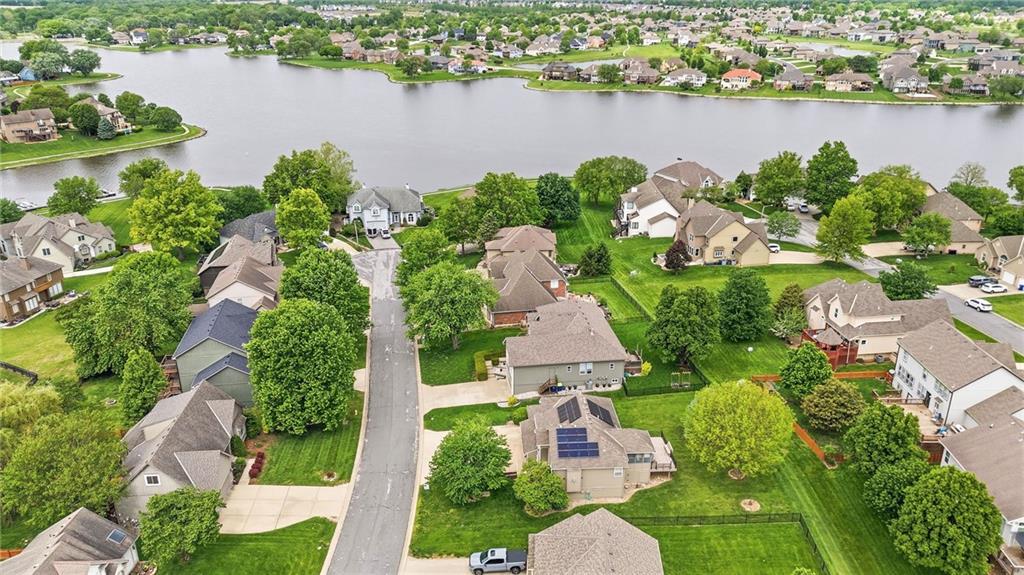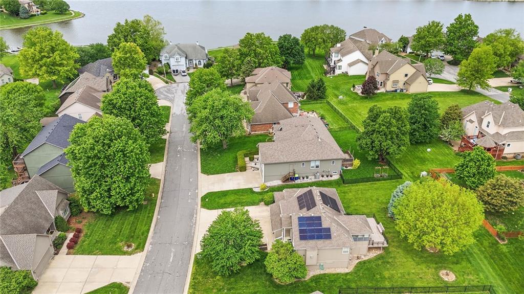 Welcome to Raintree Lake, one of Lee's Summit's most sought-after lake communities! This 4-bedroom, 3-bathroom home offers the perfect blend of comfort, functionality, and lake lifestyle living, just a short stroll from the water. The oversized 3-car garage is ideal for a workshop, hobby space, or storing all your lake-life gear. Energy-conscious buyers will love the newly installed solar panels and whole-home water softener. Enjoy the outdoors year-round from the sunroom or the deck — perfect for relaxing or entertaining. The primary suite impresses with a vaulted ceiling in the ensuite bath, double vanity, and separate tub and shower. The primary closet features custom built-in jewelry storage. Two laundry areas, one on each level, adding everyday convenience. The lower level recreation room with wet bar is a cozy gathering space for all. As a Raintree Lake homeowner, you'll have access to a 235-acre lake stocked with largemouth bass, crappie, bluegill, and channel catfish. Other available amenities include boating, nine protected swim docks, an Olympic-sized zero-entry pool, and 7.5 miles of private shoreline walking trails. The community clubhouse, activity center, and year-round calendar of neighborhood events make Raintree Lake a place where residents truly connect. Don't miss your chance to own in one of Kansas City's premier lake communities!