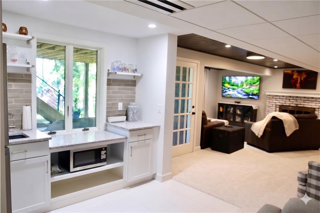 Welcome to this Nottingham Forest Masterpiece, where sophisticated designer decor meets a rare, secluded sanctuary. The main level impresses immediately with soaring cathedral ceilings and floor-to-ceiling windows that flood the open floor plan with natural light. At the heart of the home, a completely renovated kitchen features a large kitchen island custom cabinets, Pro Series KitchenAid stainless appliances, a massive "hidden" walk-in pantry, and a convenient butler’s pantry & Espresso Bar. Venture on out to a towering deck just off the kitchen and Great Room that is designed for hosting dining and conversation amidst breathtaking landscaping, for seamless entertaining. Back inside the main-floor primary ensuite, which offers a spa-like bath and walk in closets. A set of glass doors leads to a secluded martini deck overlooking the lush, wooded grounds. The lower level is a true resort-style escape, boasting a media great room and a sophisticated cigar lounge with a wall of TVs darts & games. A wet bar & mini kitchen area is a nice addition and makes this walk out level perfect for watching sporting events or movie night! Another rare find is a designated work out area, seller is open to negotiating equipment staying! After a work out enjoy the three-person sauna and an oversized rain shower making the home feel like a resort not a residence! There are four additional spacious bedrooms upstairs and 2 additional full renovated baths. So plenty of room for guests and larger families. Extra walk in unfinished area on the 2nd floor could be an additional living space or golf simulator room! This move-in-ready estate offers an unparalleled lifestyle of privacy and class with hard to find retreat like lot!
