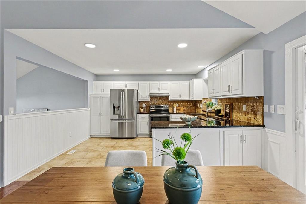 Beautifully updated 3-bedroom, 2.5-bath split-level home with spacious layout and large backyard! Step inside to a bright, open main living area featuring vaulted ceilings, abundant natural light, and a cozy fireplace. The updated kitchen offers white cabinetry, granite countertops, stainless steel appliances, and flows seamlessly into the dining area—perfect for everyday living and entertaining. The primary suite includes a private en-suite bath, while two additional bedrooms provide flexibility for guests, office space, or hobbies. The finished lower level offers a second living area, ideal for a family room, media space, or home gym. Enjoy outdoor living on the oversized deck overlooking a fully fenced backyard with mature trees—perfect for relaxing or hosting gatherings. Additional features include a 2-car garage, neutral paint throughout, and move-in-ready condition. Conveniently located near shopping, dining, and major highways, this home offers both comfort and accessibility. Don’t miss this one!