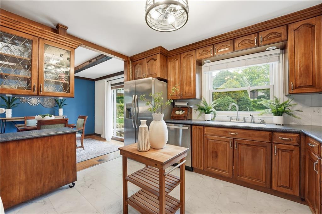 Welcome home to this charming 3 bedroom, 2 bath property in the heart of Overland Park, where location is EVERYTHING! Just minutes from Downtown Overland Park, the beloved Farmers Market, and the scenic trails and green space of Meadowbrook Park, this home offers the perfect blend of convenience and lifestyle. Inside, you will find beautiful hardwood floors, leaded glass accents, and character-rich paneling in the lower level that add warmth and personality throughout. The cozy lower-level living space is ideal for game days, movie nights, or simply unwinding at the end of the day. The kitchen opens to a patio through a sliding glass door, creating an easy indoor-outdoor flow. Step outside to a spacious backyard featuring a peaceful goldfish pond, where you can enjoy the sounds of nature, from frogs singing in the morning to the occasional visit from a turtle. It is a setting that feels private and inviting. This home offers multiple living spaces, giving everyone room to spread out while still being perfect for entertaining. The sub-basement provides excellent storage as it stands, or offers the opportunity to finish the space to suit your needs. Whether you envision a home office, workout room, or a non-conforming fourth bedroom, the possibilities are there. An additional full bathroom is already roughed in with plumbing in place, making future expansion even easier.