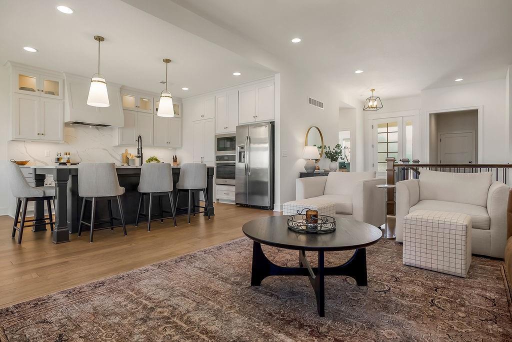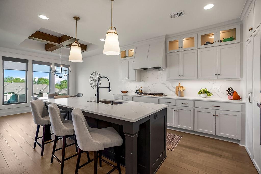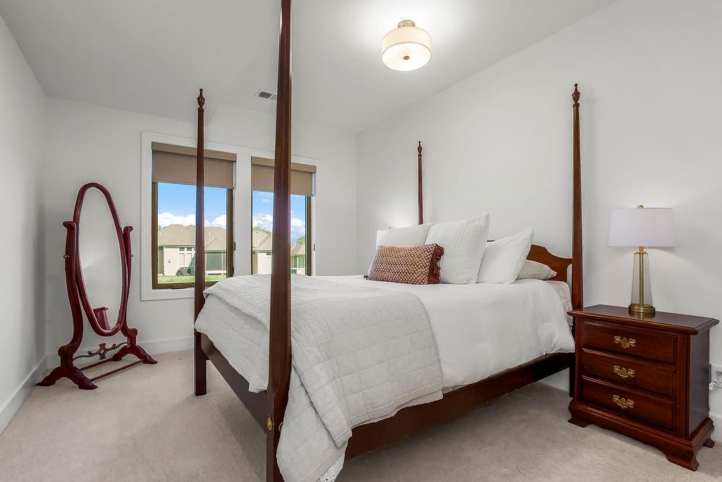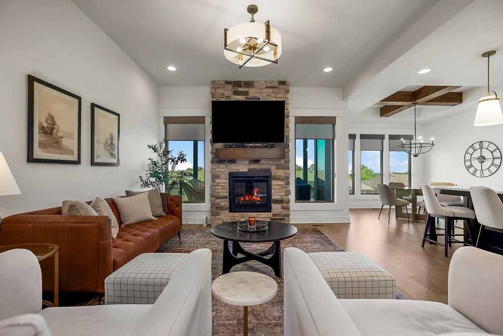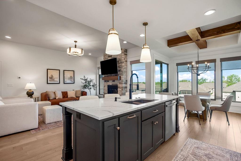 Welcome to the extremely popular Willow plan by renowned builder JFE on a highly sought after walkout lot. This is your opportunity to purchase an almost brand new home without the long wait to build or all of the decision making! Customized features of this particular villa include an oversized 8ft kitchen island to accommodate additional seating. Upgraded Calacatta Laza quartz countertops and backsplash in the kitchen as well as the main floor guest bathroom and lower level bathroom. Custom hood vent. Samsung 5 burner gas cooktop. Stainless steel GE Profile dishwasher, microwave and oven. Convenient additional outlets in pantry for small appliances or coffee bar. Soft close doors and drawers throughout main level. Over $1300 in upgraded light fixtures from Rensen House throughout the home. Water softener and whole house water filter installed. Almost $6,000 worth of custom shades installed throughout main level. Oversized Carver 5'11 bathtub in primary bathroom with custom wainscoting surround. Waterfall showerhead in primary shower. Upgraded height and length of toilets throughout. Custom game closet in unfinished storage area for more wall space in lower level living room. Additional features in the Willow plan include: HVAC - 92% Furnace / 13 Seer AC with humidifier. 50 Gallon Gas Water Heater. Roof- 30 Year Tamko Asphalt Shingles. Radon Vent Pipe for Future Hook-Up (No Fan/No Outlet) All Bedrooms / Living Room Wired for Fan / Light. 36" Living Room Gas Fireplace. Zero Entry Garage / Zero Entry Stoop. Box vault ceiling in dining room and primary bedroom. 12 X 14 covered deck and patio. Wood wall feature and zero entry shower in primary bedroom. Please see supplement "willow 21R price sheet" for many additional features and details. This incredible quality villa, at this price, in this location is a don't miss!