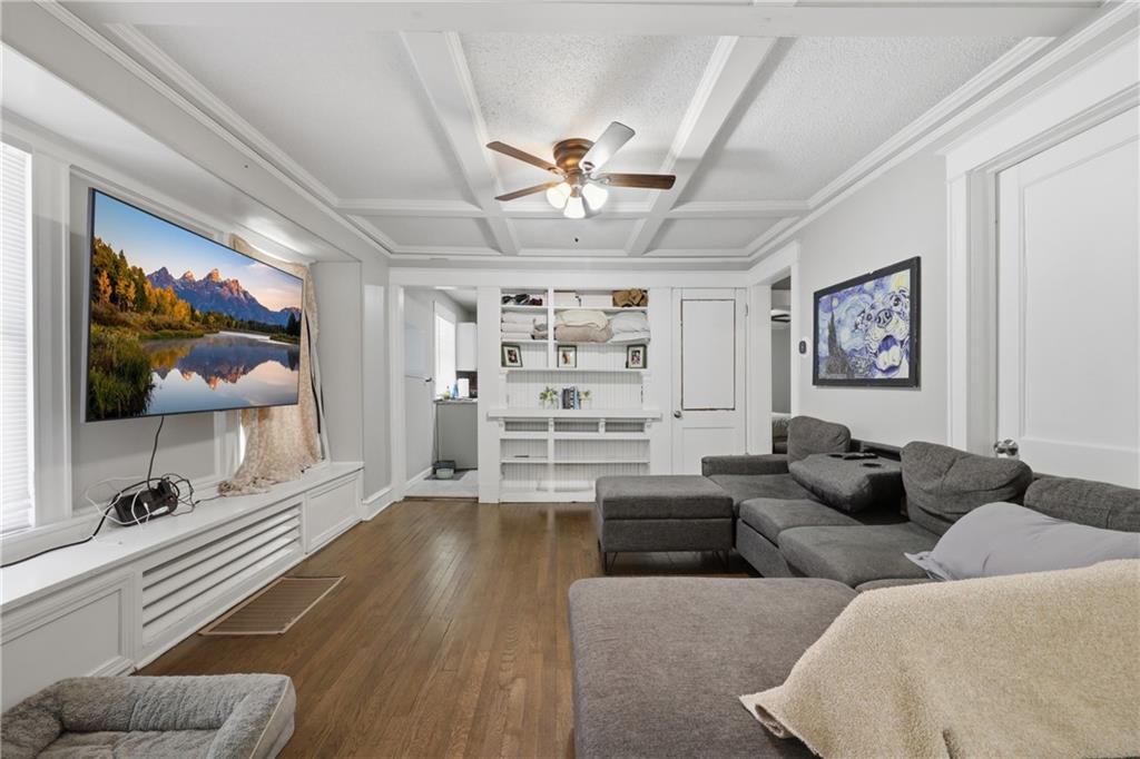 Charming 3 bed, 2 bath bungalow blending classic character with modern updates! Welcoming front porch and great curb appeal. Inside you’ll find a bright, open living and dining area with beautiful hardwood floors, coffered ceilings, and built-in features. Updated kitchen with granite countertops, white cabinetry, stainless steel appliances, and stylish tile flooring. Spacious bedrooms and refreshed bathrooms with clean, modern finishes. Enjoy comfortable living with plenty of natural light throughout. Convenient location near shopping, dining, and more!