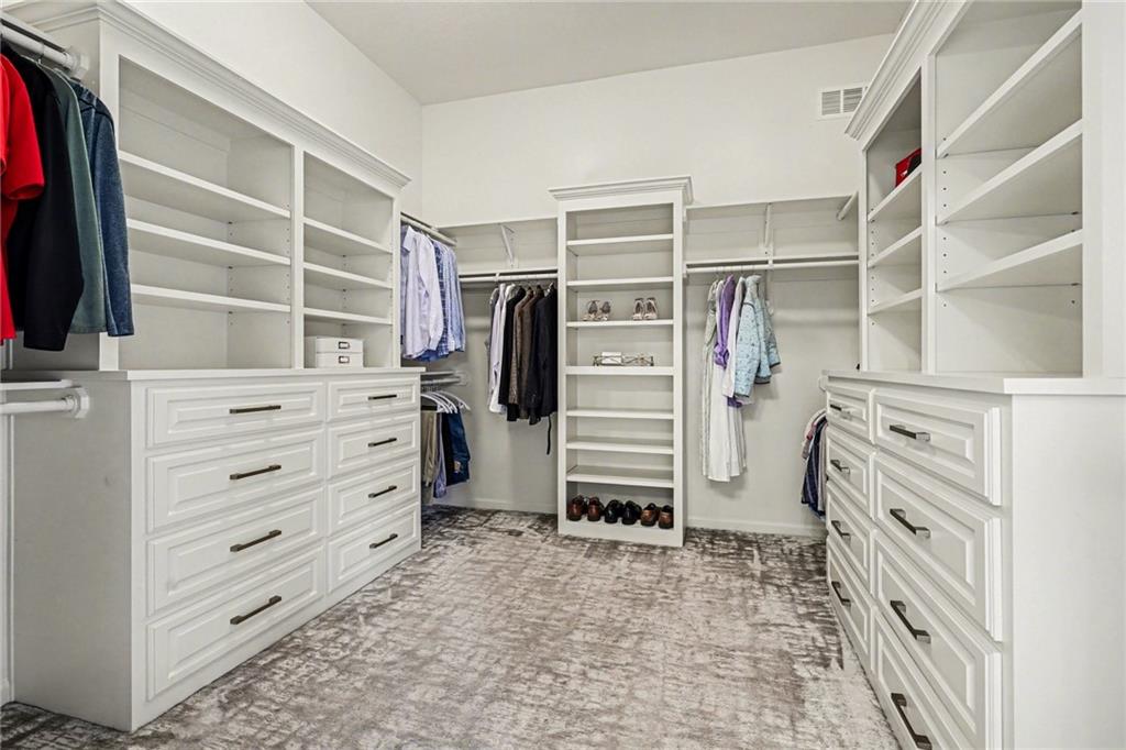 What a SHOW STOPPER!! Welcome home to this beautifully maintained 1 1/2 Story by Rodrock Homes in the coveted Summerwood Subdivision in the award winning Blue Valley School District. As soon as you enter through the front door, you are greeted with an impressive Great Room that features a two story vaulted ceiling with a wall of windows and a fireplace flanked by built-in bookcases. The open concept floor plan invites people to gather in the large kitchen with an impressive granite island. A Formal dining room and breakfast room are the perfect location to enjoy family meals. The Laundry Room and large walk in pantry are off the expansive kitchen with a 1/2 bath off garage entry. The main floor master suite is incredibly spacious with a large primary closet with custom cabinets and a primary bath with two granite top vanities. A secondary bedroom or office is also on the main floor. The beautiful main level hardwood floors have recently been refinished. Don't forget to admire the exquisite detailing you will find in the extensive trim work throughout main floor. Upstairs, you’ll find three generously sized bedrooms, each with their own private ensuite...perfect for family or guests. There's also a play-room upstairs. Enjoy sipping coffee in the morning while sitting in the screened in deck and relax at night on the patio off lower level. Located in a cul-de-sac that is tucked away and near the nature trail, this well-maintained home offers exceptional and abundant natural light. The large walk-out basement is unfinished and ready for your vision to come to life, complete with lots of windows and stubbed for a future bathroom. A three-car garage with new epoxy flooring provides ample storage and convenience. It truly is a perfect location and within close proximity to the community nature park/ trails and nearby fishing lake. Resort style community pool and clubhouse along w/ sport court/ playground complete amenities is icing on the cake.
