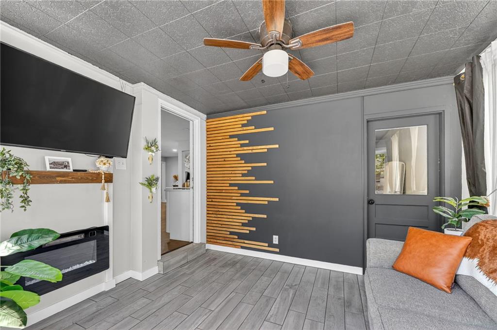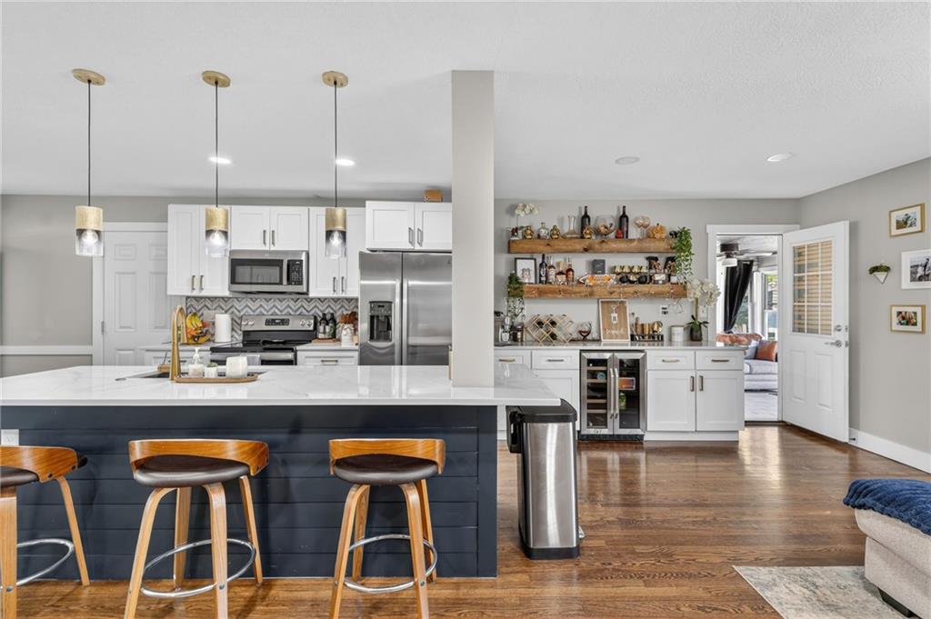 UPDATED & MOVE-IN READY - NEW WINDOWS, NEW GUTTERS, FRESH PAINT & MORE! Completely remodeled in 2023, this stylish 3-bedroom, 2-bath home is designed for effortless living and entertaining, offering modern finishes, a thoughtful design, and instant equity thanks to pricing well below recent appraisal. A bright, open-concept layout showcases hardwood floors, a custom fireplace, and a beautifully updated kitchen with new cabinetry, upgraded appliances, and a standout wet bar featuring a wine cooler, beverage fridge, and extra storage—perfect for hosting or relaxing at home. The remodeled sunroom offers a light-filled retreat ideal for morning coffee, evening gatherings, or a quiet work-from-home space. Step outside to a private backyard featuring a large textured concrete patio, bistro lighting, and a privacy fence, creating the perfect setting for outdoor dining, entertaining friends, or unwinding at the end of the day. The home is designed for single level living with laundry hookups on the main floor and an unfinished basement provides excellent future expansion and value-add potential. Upgrades include a newly installed security system for peace of mind, fresh paint, all new windows, upgraded retaining wall, and more! Every detail has been thoughtfully updated to deliver a home that feels modern, comfortable, and truly move-in ready—ideal for buyers seeking a home that supports both everyday living and a vibrant lifestyle.