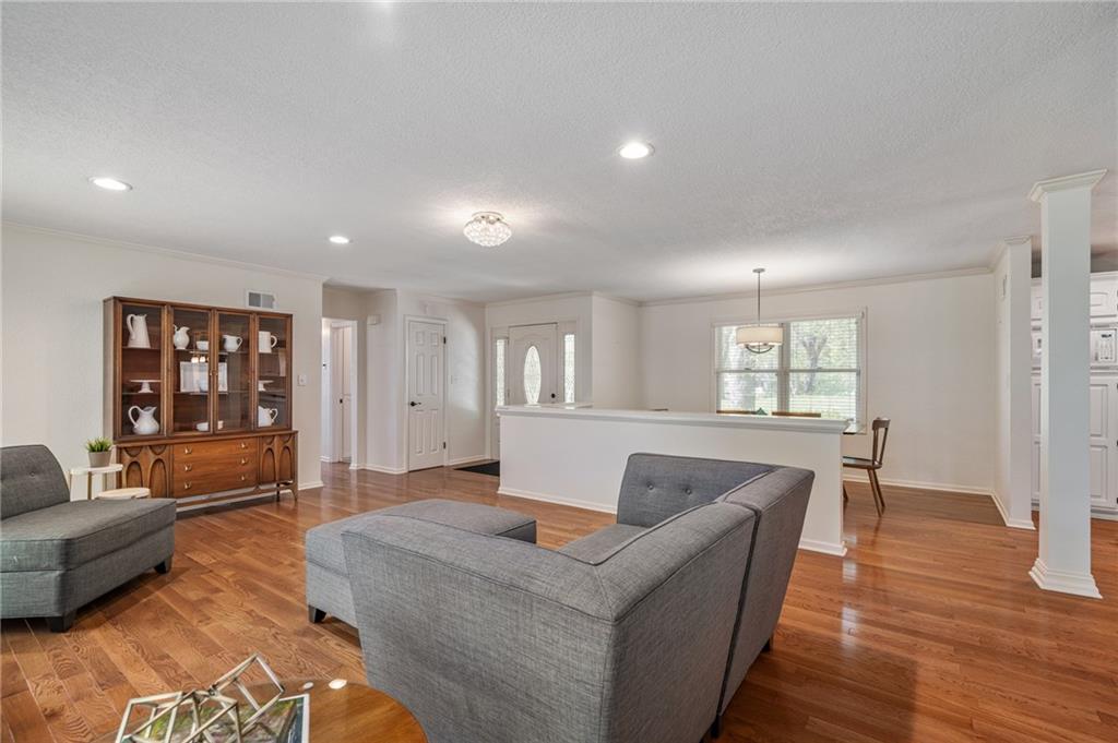 If you love the charm of mature trees and spacious yards in Leawood Estates but don’t want the million-dollar price tag, this is your opportunity. From the moment you drive up, this beautifully maintained home makes a lasting impression and continues to wow as you step inside. Move-in ready and thoughtfully updated, it offers an inviting open layout perfect for entertaining family and friends. The light-filled kitchen is a standout, featuring a dual fuel stove, abundant cabinetry, quartz countertops, and generous natural light. The living room is equally impressive with a masonary fireplace framed by windows and classic built-in display shelving, creating a warm and welcoming focal point. The primary suite is privately situated on one side of the home, complete with a wall of closets and an ensuite bathroom. Two additional bedrooms are located on the opposite side, offering comfort and privacy for family or guests. All three bedrooms have brand-new carpet with upgraded 8# padding. A conveniently located laundry room sits between the primary bedroom and kitchen for everyday ease. Extend your living space into the multi-season room, perfect for relaxing or entertaining year-round, and step outside to enjoy the charming paver brick patio. The expansive yard, shaded by mature trees, provides a peaceful retreat throughout the summer months. Two car garage with extra wide driveway. Located near Brookwood Elementary School and just minutes from the scenic Indian Creek Trail, this home also offers quick access to major highways for added convenience. This is a rare chance to enjoy the character and location you love—at a price point that makes sense.