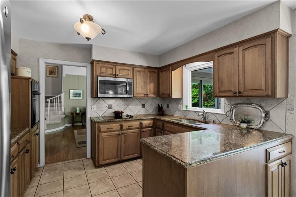 Just listed in one of Old Leawood's most secluded and sought-after locations! Timeless floor plan set on a beautifully landscaped lot with a lush, manicured lawn, mature trees, and thoughtfully designed planting beds that enhance its curb appeal. Step into a welcoming foyer with original tile flooring that meets a curved staircase. Formal living room with a beautiful bay window offering sweeping views of the front yard. Dine casually in the breakfast room or formally in the dining room. The kitchen is practical and functional, featuring ample counter space and storage, solid surface counters, and a pantry, ?which adjoins a half bath/laundry area. Direct outdoor access from the kitchen leads to a secondary deck perfect for grilling! The great room is the centerpiece of the home, featuring cathedral ceilings and a floor-to-ceiling stone hearth fireplace with a beautiful mantle. Ascend to the upper floors, which include 4 bedrooms and 3 full bathrooms. The primary room features dual closets plus a California Closet system for extra storage. Oversized, side-entry garage with epoxy floors plus a bonus room perfect for a workshop or hobby room. Unfinished basement loaded with potential for extra finished space, or leave as storage. Enjoy peaceful evenings on the large deck overlooking a private backyard. Other features include a brand new heating/air system (2026), new sewer line (2023), roof (2023), Pella/Anderson windows, sprinkler system, Generac generator, whole house surge protector, extensive landscape/exterior lighting/stone edging, and so much more! All of this coupled with one of the most sought after locations in the Kansas City area!