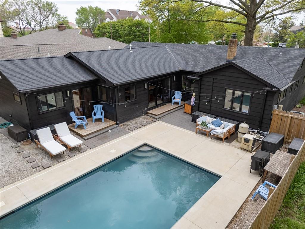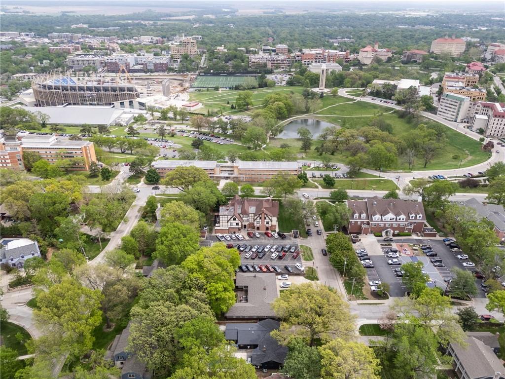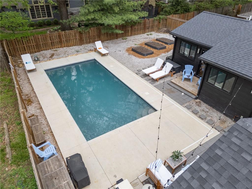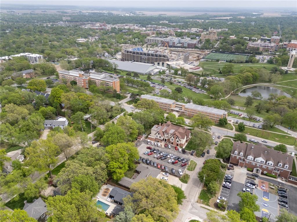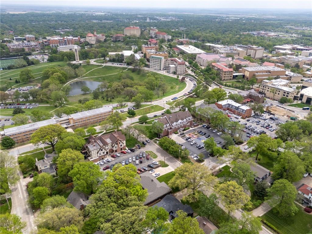 Set along one of Lawrence’s most storied corridors, 1506 University Drive is a study in what it means to live well — steps from the University of Kansas campus, yet removed enough from the ordinary to feel entirely your own. The home’s midcentury bones have been thoughtfully elevated: original wood-paneled rooms, clean geometric lines, and an effortless indoor-outdoor flow that feels both curated and lived-in. Inside, a fully renovated chef’s kitchen anchors the heart of the home — warm wood cabinetry to the ceiling, white quartz waterfall island, professional-grade appliances, and hardwood floors that glow underfoot. The reimagined primary suite is a private retreat: a generous bedroom paired with a spa-caliber bath featuring double vanity, walk-in shower, soaking tub, and a dedicated walk-in closet. Beyond the walls, a resort-style saltwater pool commands the rear garden — a crystalline centerpiece around which evenings unfold slowly. String lights, mature oaks, raised garden beds, and a fully fenced yard complete the picture. Whether you arrive for the football Saturdays or the daily ceremony of a morning walk to campus, this home understands exactly who you are.