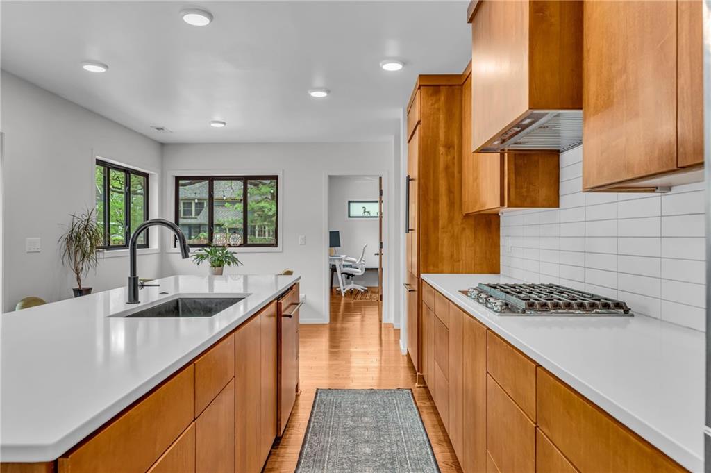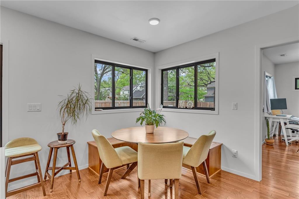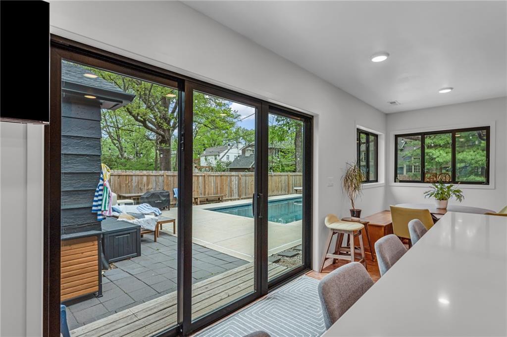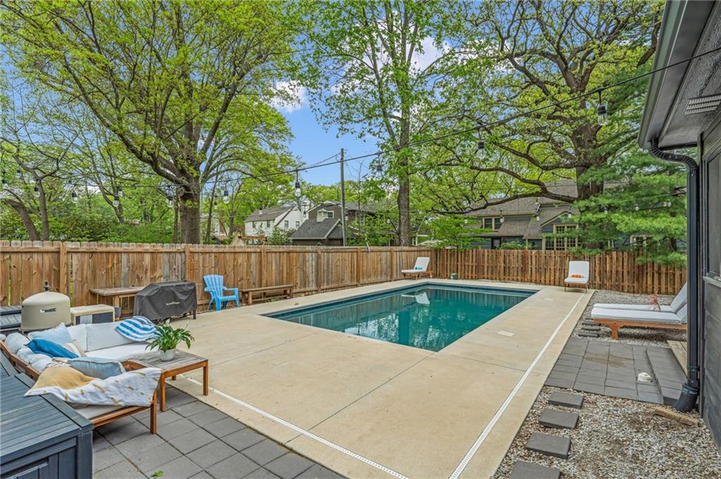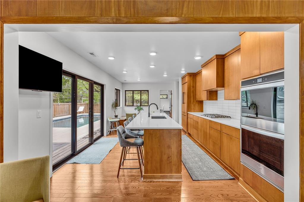Set along one of Lawrence’s most storied corridors, 1506 University Drive is a study in what it means to live well — steps from the University of Kansas campus, yet removed enough from the ordinary to feel entirely your own. The home’s midcentury bones have been thoughtfully elevated: original wood-paneled rooms, clean geometric lines, and an effortless indoor-outdoor flow that feels both curated and lived-in. Inside, a fully renovated chef’s kitchen anchors the heart of the home — warm wood cabinetry to the ceiling, white quartz waterfall island, professional-grade appliances, and hardwood floors that glow underfoot. The reimagined primary suite is a private retreat: a generous bedroom paired with a spa-caliber bath featuring double vanity, walk-in shower, soaking tub, and a dedicated walk-in closet. Beyond the walls, a resort-style saltwater pool commands the rear garden — a crystalline centerpiece around which evenings unfold slowly. String lights, mature oaks, raised garden beds, and a fully fenced yard complete the picture. Whether you arrive for the football Saturdays or the daily ceremony of a morning walk to campus, this home understands exactly who you are.
