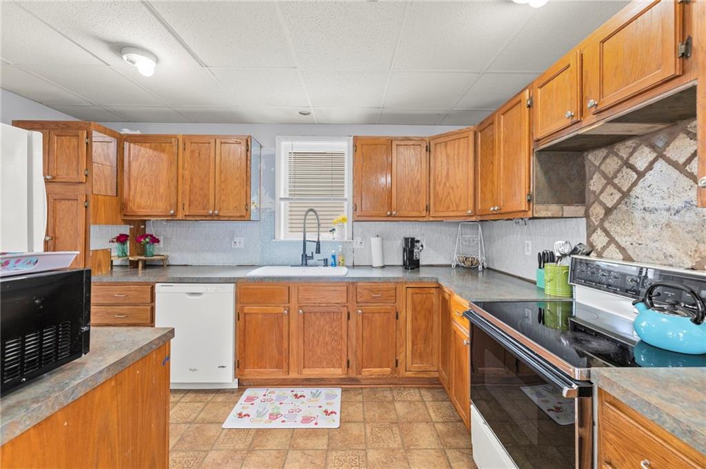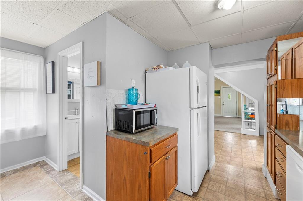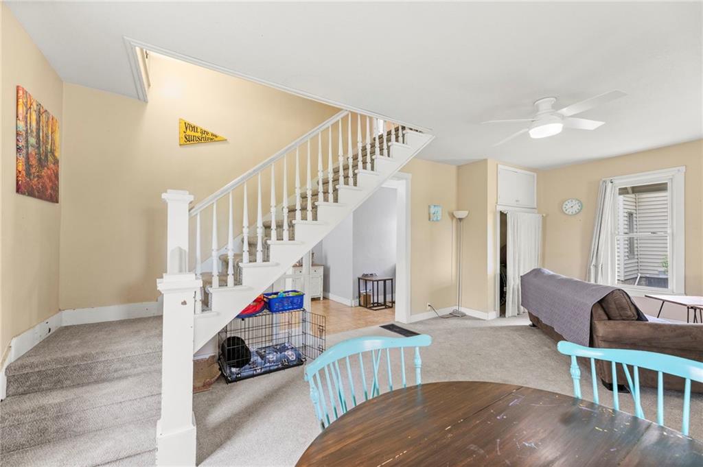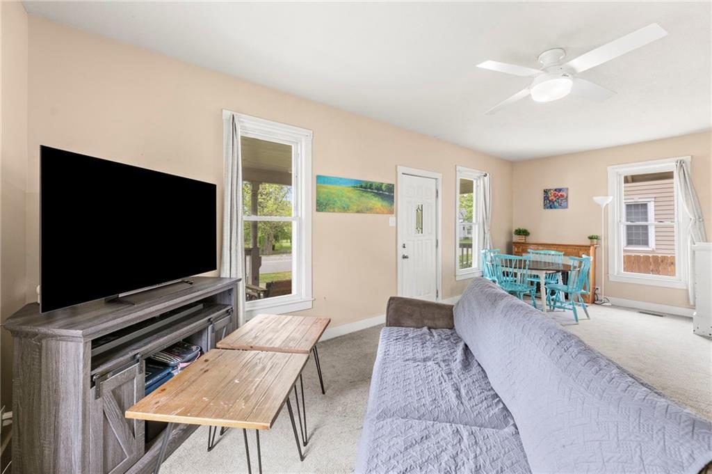 Nestled in a prime location just a short stroll from the charm of the historic Paola square, this adorable two-bedroom, two-bathroom home offers a perfect blend of modern convenience and classic appeal. The main level welcomes you with an expansive family room that flows effortlessly into an open concept kitchen and dining area with loads of cabinets and all appliances staying, creating an ideal layout for both daily living and effortless entertaining. Main level bathroom features a huge, tiled shower. Upstairs, you will find two generously sized bedrooms and a second full bathroom, providing a private and comfortable retreat. Car enthusiasts or those seeking extra storage will appreciate the wonderful, newer two-car attached garage that adds significant value to the property. The home's exterior has been meticulously maintained, featuring a comprehensive refresh in 2020 that included scraping and repainting the siding along with the installation of new gutters, newer windows 2022 and central heat and air. Beyond the walls, a lovely yard awaits, offering the perfect backdrop for summer barbecues and outdoor relaxation. This move-in-ready gem combines a fantastic layout with a sought-after neighborhood setting; don't miss your chance to own a piece of Paola history, as a home this well-cared-for truly won't last long on the market.