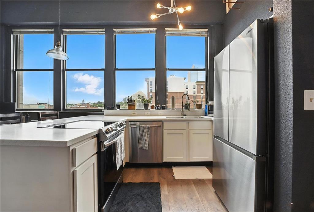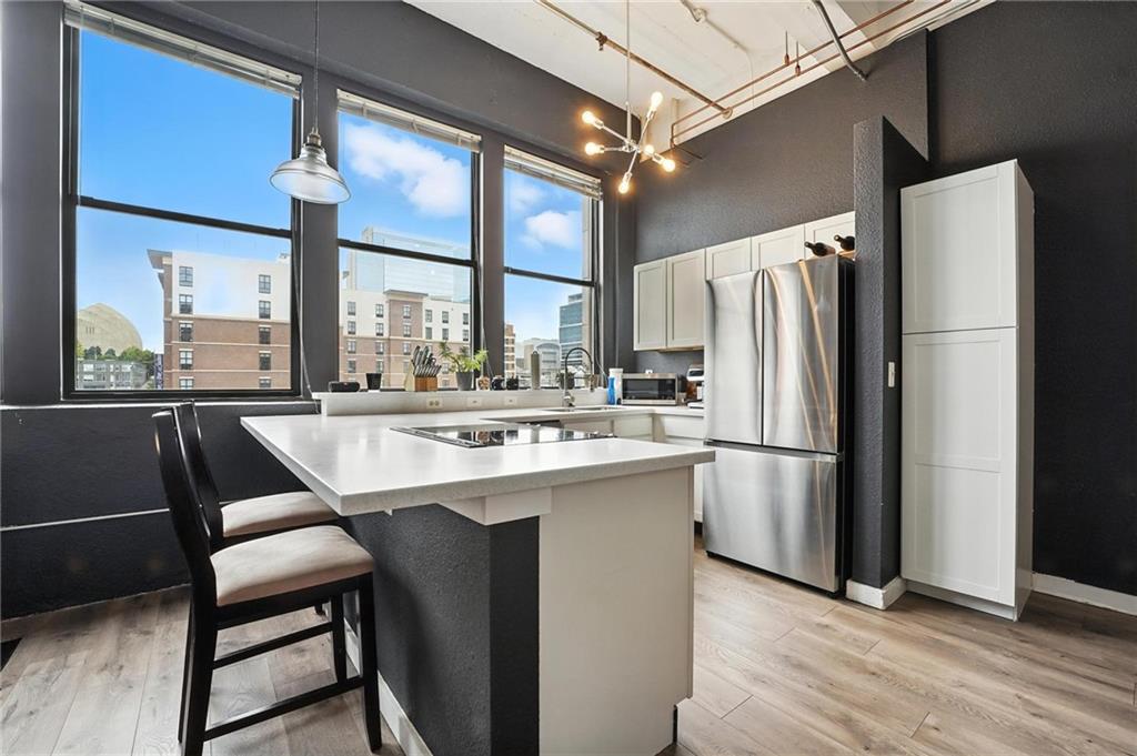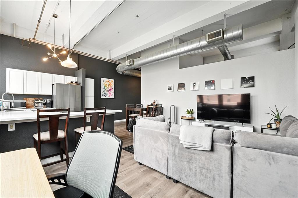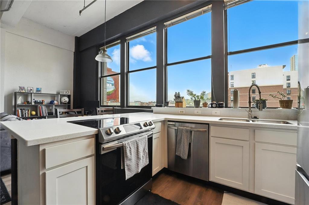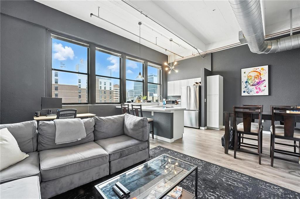 Experience the vibrant energy of the Crossroads in this stunning southeastern-light-filled corner unit at Campbell Lofts! Walking distance to new Royals Stadium location! This exceptional one-bedroom floor plan offers spacious open concept living. Located in the heart of the Crossroads Art District, you'll be steps from the Power & Light District, Cosentino's Market, and the 16th & Main Streetcar stop, providing effortless access to all of Kansas City. This meticulously maintained 4th-floor unit updates include newer hardwood flooring, updated kitchen with newer stainless-steel appliances (all stay), custom cabinetry, updated bathroom, and newer HVAC! In unit washer and dryer in entryway! Enjoy building amenities with a full gym, entryway with sitting area and gas fireplace, and your own personal wine locker! Parking available in lot catty-corner from Campbell Lofts for $100/month through the HOA. Low monthly HOA dues enhance the appeal of this exceptional urban retreat. Schedule your private showing today!