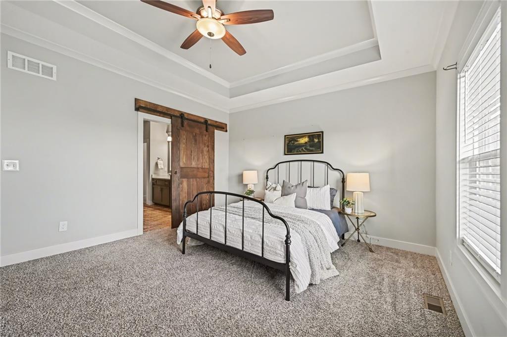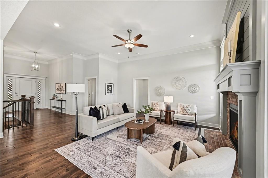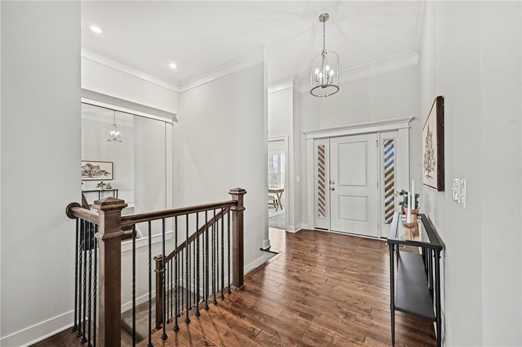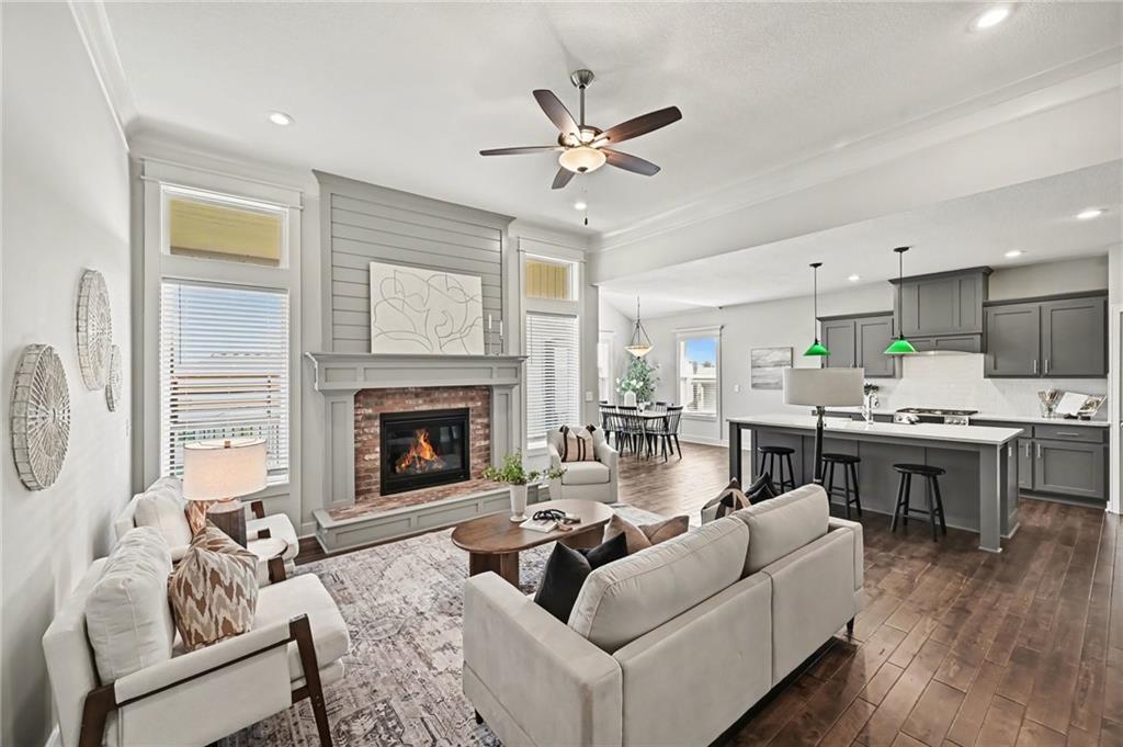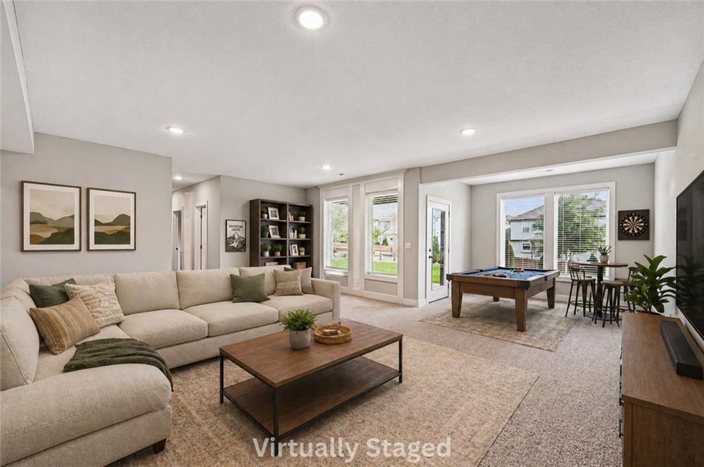 WOW! Exceptional VALUE on this STUNNING Reverse 1.5-Story offering the perfect blend of STYLE, SPACE, and FUNCTION! Featuring 4 Bedrooms, 3 Full Baths, and a Spacious 3-Car Garage, this home stands out with its QUALITY FINISHES, THOUGHTFUL DESIGN, and INVITING LAYOUT. Step inside to an OPEN-CONCEPT floor plan filled with natural light, tall ceilings, and 9-foot foundation walls that create a bright and expansive feel throughout. The Main Level showcases a warm and welcoming GREAT Room with a striking Floor-to-Ceiling Fireplace and beautiful hardwood floors, seamlessly connecting to a designer kitchen complete with Quartz countertops, a Large Island, Custom Range Hood, Stainless Steel appliances, and a Walk-In Pantry. The adjoining dining area is sun-filled and perfect for everyday living or hosting guests. The Primary Suite is a true retreat, featuring elegant ceiling details, a HUGE Walk-In Closet, Dual Quartz Vanities, and a Spa-Inspired Shower with Dual Showerheads. A highly desirable SECOND MAIN-LEVEL Bedroom (perfect for an office or guest space) sits near a full bath and offers convenient access to the laundry room, which thoughtfully connects to the primary suite. The Finished WALKOUT Lower Level offers incredible versatility with a MASSIVE Recreation Room, 2 Additional Bedrooms, a Full Bath, and generous storage space—perfect for entertaining, relaxing, or creating a play area or home gym. Enjoy outdoor living at its finest with a Covered Front Porch, a Custom Covered Deck off the main level, and a Lower-Level Patio—ideal for gatherings, grilling, or simply unwinding. This home is PACKED WITH UPGRADES including a sprinkler system, custom finishes, window coverings, and AMPLE STORAGE throughout. If you’re looking for a home that checks every box—LOCATION, LAYOUT, and VALUE—THIS IS IT!