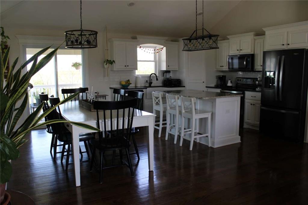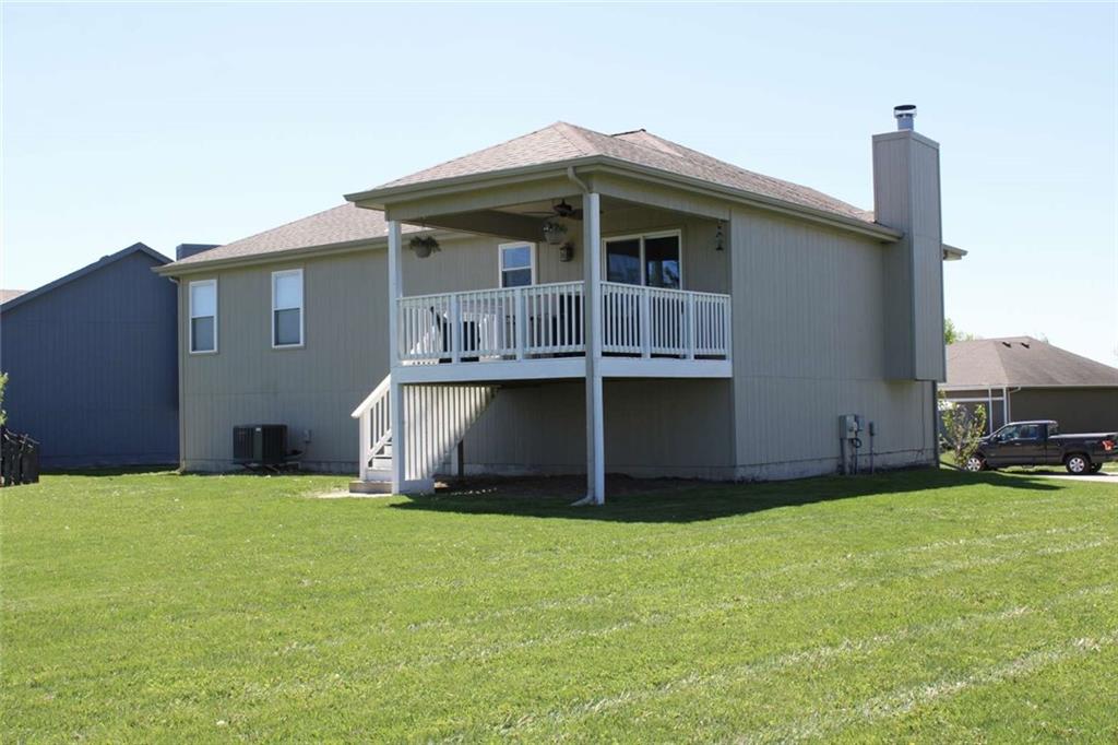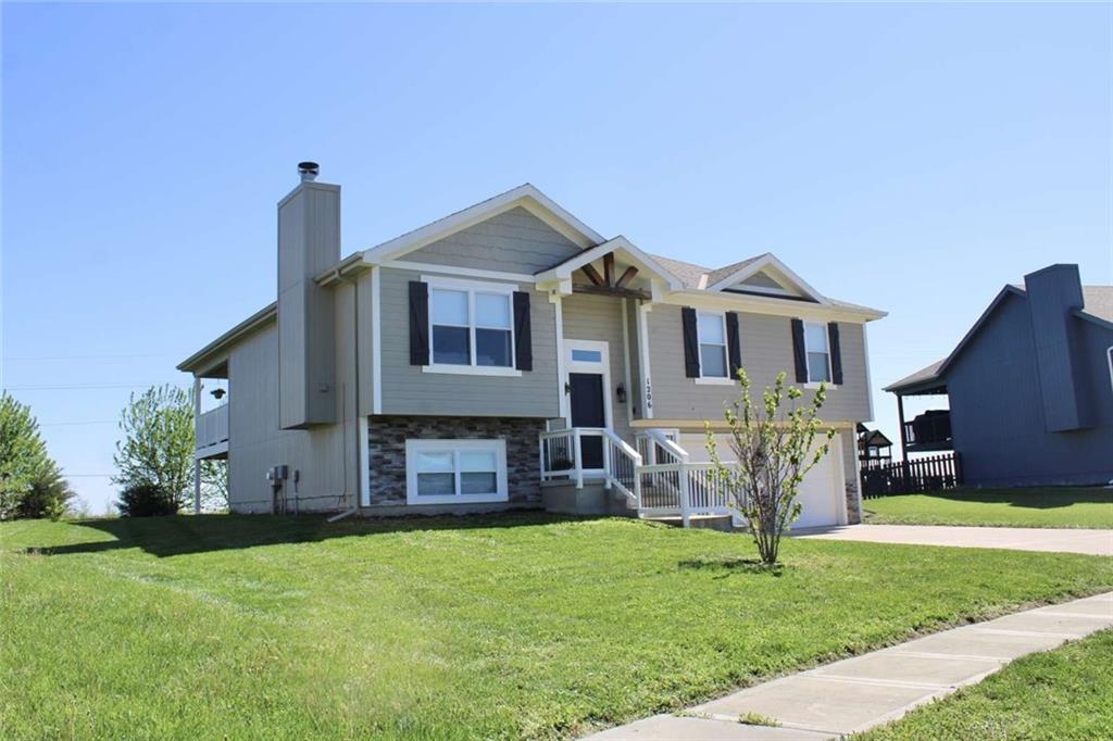 Welcome to 1206 Viola St, a light-filled, thoughtfully upgraded home in Smithville’s Wildflower subdivision. Step inside, and the open layout draws you into a space that feels effortlessly cozy and yet modern. The kitchen is the heart of it all with white custom cabinets, granite countertops, a farmhouse sink, tile backsplash, a kitchen island with seating, a generous pantry, and black stainless Whirlpool appliances. Rich hardwood runs through the main living areas, anchored by a fireplace with a custom white tile surround and mantle. Step onto the covered deck, fitted with a ceiling fan overhead and an open sky beyond. Wake up to sunrise views over farmland, watch the seasons change across a working farm, and end your evenings under sunsets that have to be seen to be believed. No rear neighbors. Just open sky. Each upstairs bedroom features a tray ceiling and a ceiling fan. The primary suite includes two windows, a walk-in closet with built-in shelving, and a private en suite with a double granite vanity and subway tile shower. A full hall bath with subway tile tub surround and granite vanity serves the main level. The finished lower level expands your living space with a large living room, a fourth bedroom with an egress window, a closet, and direct access to a half bath, and a built-in mudroom nook off the garage entrance. The under-stair storage room holds 27 full-sized bins, giving you plenty of storage space. The oversized 2-car garage provides direct access to the lower level. At 1,808 sq ft on a 0.36-acre lot, this home is walkable to Eagle Heights Elementary and sits in the highly regarded Smithville school district, all with no HOA. Beyond the neighborhood, you're minutes from Smithville Lake and its 60+ miles of scenic trails. Built in 2018 with custom finishes throughout, this kind of home won’t last long. Built in 2018 with custom finishes throughout, this kind of home won’t last long. Refrigerator does not convey.