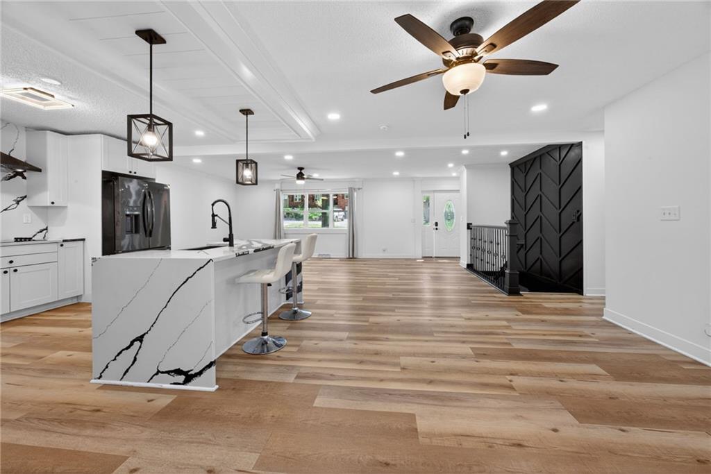 Welcome to this beautiful reverse ranch home! This move-in ready property features 3 bedrooms, 3 full bathrooms, and a 3-car garage with rear entry. Enjoy a modern open kitchen with elegant marble countertops, perfect for cooking and entertaining. The fully finished basement offers a spacious family room, ideal for gatherings or additional living space. The home has been completely remodeled and sits on a generous yard, providing plenty of outdoor space. Don't miss the opportunity to make it yours!