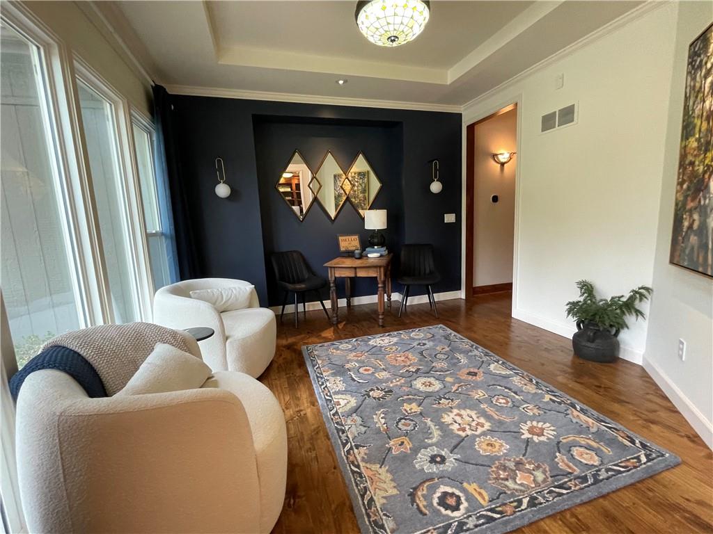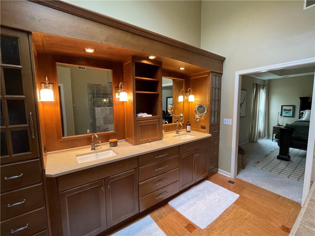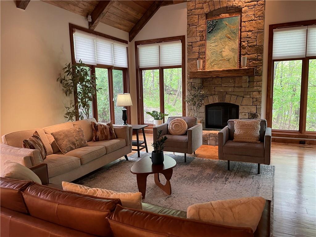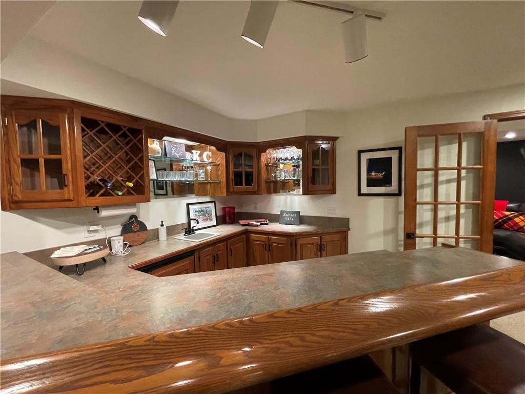 Discover the Allure of Elevated Living in this Impressive Updated Colorado-Style Home Nestled in the heart of Kansas City North, the two-story residence in Maple Park Estates radiates charm and sophistication, effortlessly blending the serene beauty of nature-immersed living with modern convenience. If you seek a haven perfect for both entertaining and unwinding from the daily grind, this home is a sanctuary designed to elevate your lifestyle. As you step inside, you are greeted by exquisite hand-textured hardwood floors that complement the expansive and unique open floor plan. A floor-to-ceiling glass wall at the rear of the home invites the stunning beauty of nature into your living space, creating an ambiance that feels as though you are nestled within a tranquil mountain range. The chef-inspired custom kitchen is a culinary oasis, featuring luxe appliances and extensive custom cabinetry, seamlessly integrated to match the refrigerator, ensuring a cohesive and polished look. Adjacent to the kitchen, you'll find a large dining area that leads to library/office with tailored bookcases specifically designed for the remarkable space. Unwind in the great room with a striking stone fireplace that sets the stage for the lodge feel. This space is perfect for relaxation or hosting cherished moments with family & friends.Venturing downstairs, the finished basement provides additional living & entertaining areas, providing ample space for gatherings or cozy nights in. The thoughtful layout includes an abundance of storage, a stylish wet bar, and a versatile bonus room that can serve as a personal gym or an extra sleeping area. Throughout this magnificent home, there are numerous upgrades that enhance its allure, including a new HVAC system, updated windows, fresh carpet, and a fresh coat of paint. Every detail has been meticulously considered, making this residence truly move-in ready.Experience luxury living at its finest in this stunning Colorado-style home.