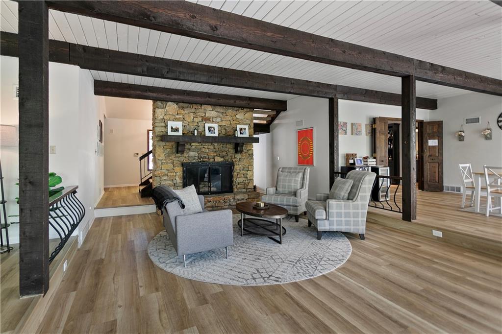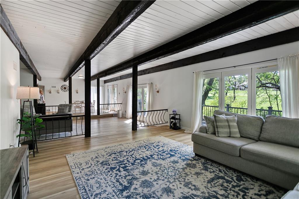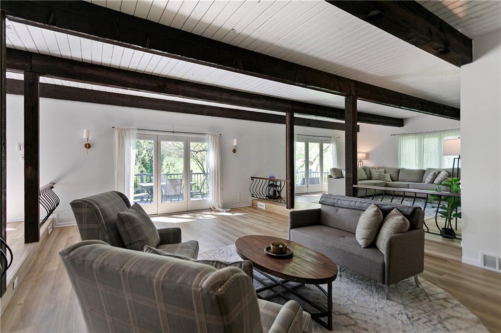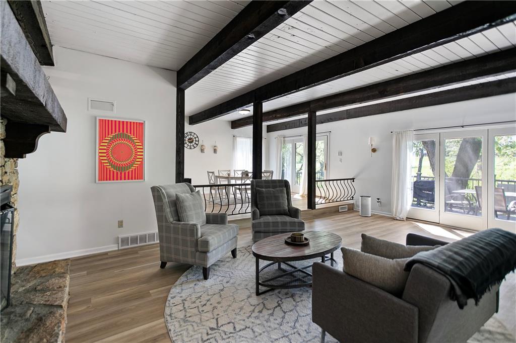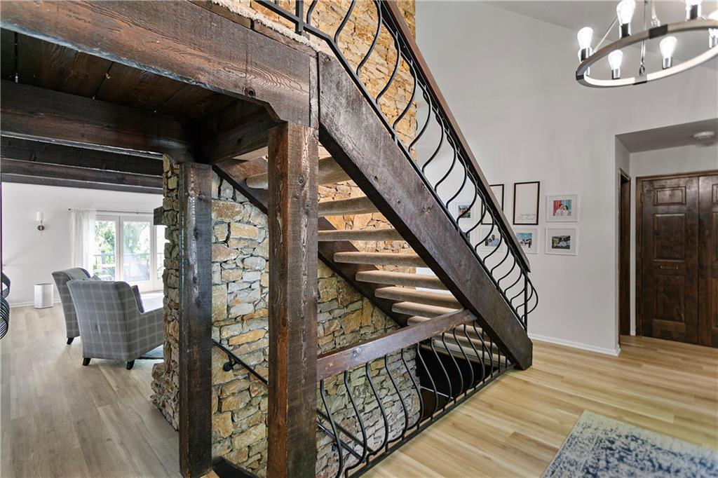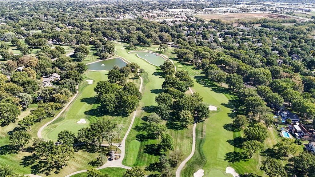 Experience resort-style living in this stunning Italian contemporary residence, perfectly situated on a private, wooded lot overlooking a winding creek and the 16th hole of one of Leawood’s most prestigious golf courses. This home seamlessly blends sophisticated design with a calming, natural atmosphere. Your journey begins in a charming front courtyard—accessible via Charming wooden french doors leading to the main entrance. The area is perfect for your morning espresso or evening conversation. The newly renovated chef’s kitchen is a true showstopper, featuring a massive island for entertaining, an expansive wall of custom pantry cabinetry, quartz counters and high-end finishes designed for serious cuisine enthusiasts. This space flows effortlessly into the formal dining area and a grand great room, anchored by a floor-to-ceiling stone fireplace and soaring cathedral ceilings. Bathed in natural light from a wall of French doors, the living area opens to an expansive deck with breathtaking views of the sprawling golf course and private lot. The primary ensuite is conveniently located on the main level near the laundry room, alongside a versatile second bedroom that functions perfectly as a home office. Upstairs, you will find a second great room with stunning dual views: the elegant entryway on one side and the golf course on the other. Two additional bedrooms and another full bath are positioned on each side of this loft area, providing a private retreat for family or guests. The walk-out lower level offers an entire additional floor of living space, featuring multiple French doors leading to the backyard. A wet bar and secondary kitchen make this the ultimate destination for movie nights or game-day celebrations, while an additional full bath adds convenience. Don’t miss this rare opportunity to enjoy expansive views and a "resort-at-home" feel in one of the city's most desirable neighborhoods.