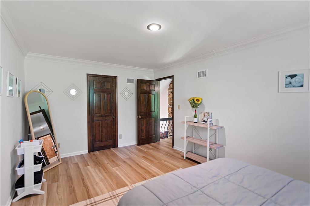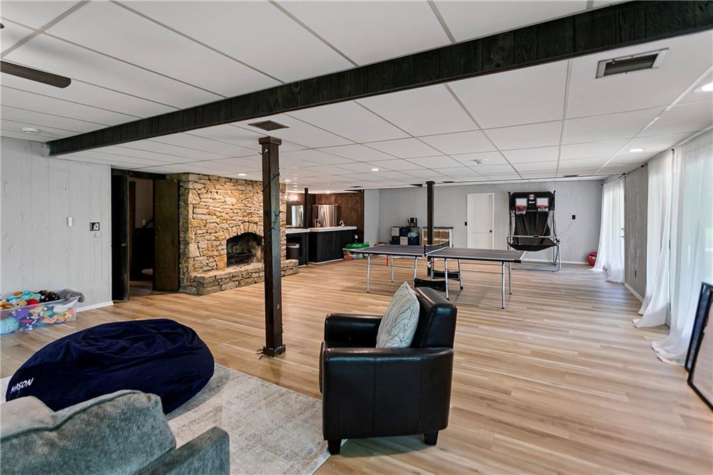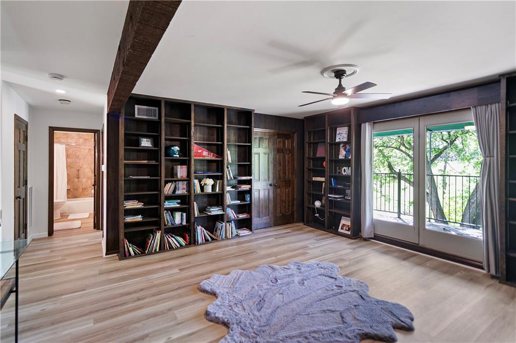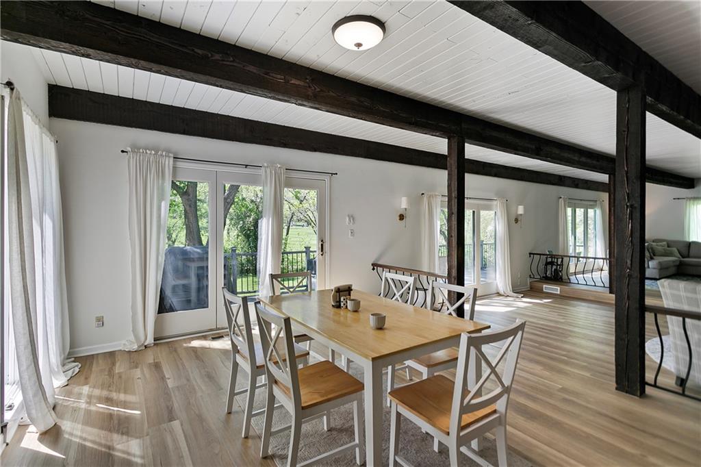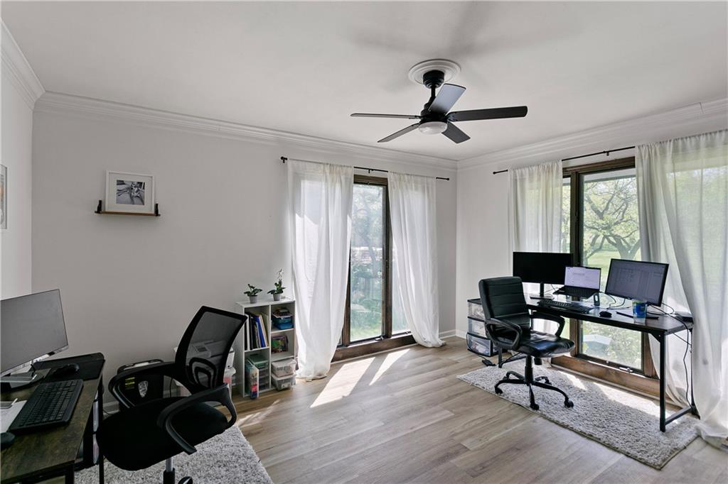 Experience resort-style living in this stunning Italian contemporary residence, perfectly situated on a private, wooded lot overlooking a winding creek and the 16th hole of one of Leawood’s most prestigious golf courses. This home seamlessly blends sophisticated design with a calming, natural atmosphere. Your journey begins in a charming front courtyard—accessible via Charming wooden french doors leading to the main entrance. The area is perfect for your morning espresso or evening conversation. The newly renovated chef’s kitchen is a true showstopper, featuring a massive island for entertaining, an expansive wall of custom pantry cabinetry, quartz counters and high-end finishes designed for serious cuisine enthusiasts. This space flows effortlessly into the formal dining area and a grand great room, anchored by a floor-to-ceiling stone fireplace and soaring cathedral ceilings. Bathed in natural light from a wall of French doors, the living area opens to an expansive deck with breathtaking views of the sprawling golf course and private lot. The primary ensuite is conveniently located on the main level near the laundry room, alongside a versatile second bedroom that functions perfectly as a home office. Upstairs, you will find a second great room with stunning dual views: the elegant entryway on one side and the golf course on the other. Two additional bedrooms and another full bath are positioned on each side of this loft area, providing a private retreat for family or guests. The walk-out lower level offers an entire additional floor of living space, featuring multiple French doors leading to the backyard. A wet bar and secondary kitchen make this the ultimate destination for movie nights or game-day celebrations, while an additional full bath adds convenience. Don’t miss this rare opportunity to enjoy expansive views and a "resort-at-home" feel in one of the city's most desirable neighborhoods.
