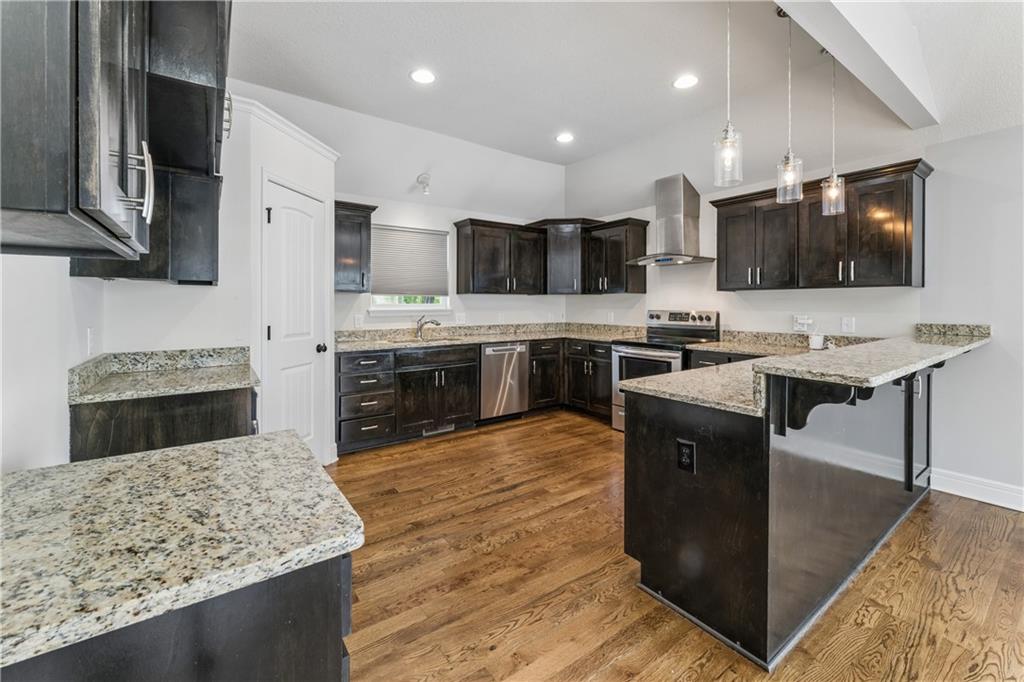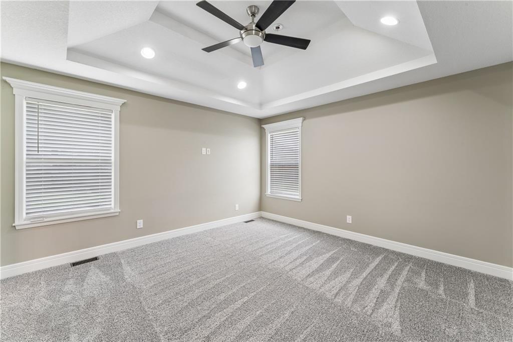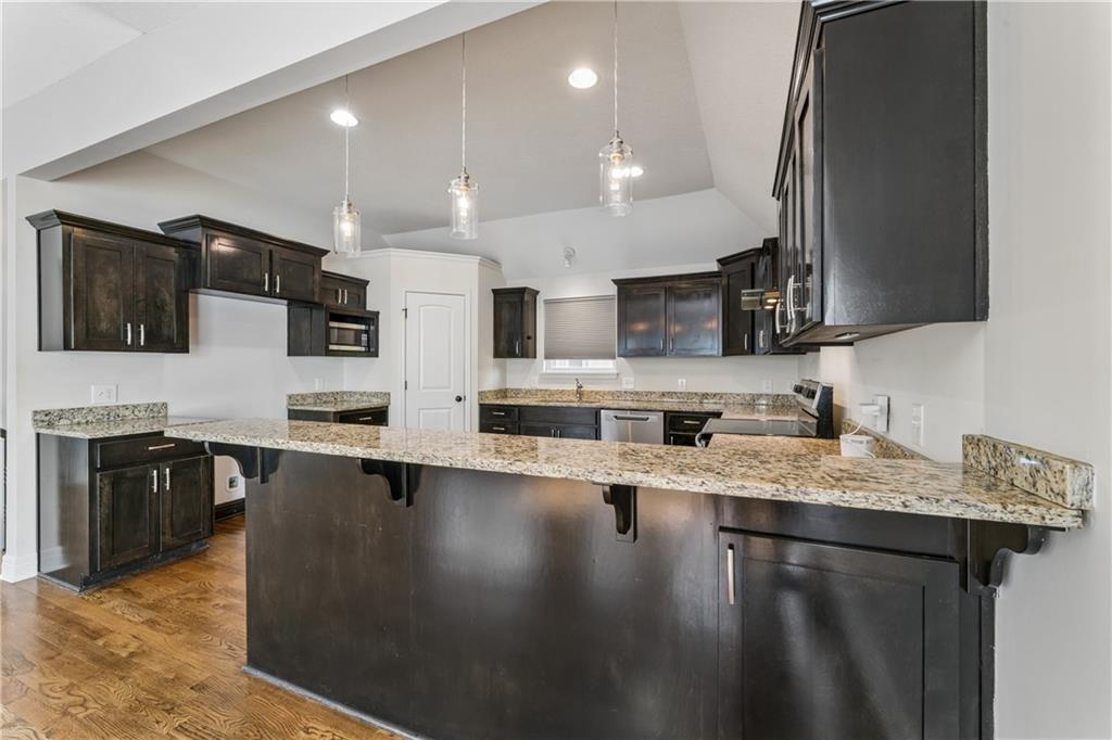 Welcome home to this beautifully updated 4-bedroom, 3-bath home located in the highly sought-after Piper School District, where modern style meets everyday functionality. This gorgeous home is currently situated at the end of a quiet dead-end street. Step inside to a light-filled main living area featuring soaring vaulted ceilings, fresh paint, newer carpets and an open-concept layout designed for both comfortable living and effortless entertaining. Rich hardwood floors flow throughout the main level. The huge kitchen impresses with granite countertops, stainless steel appliances, and a spacious walk-in pantry, making it ideal for everything from weeknight dinners to hosting gatherings. The primary suite offers a relaxing retreat with generous space, a walk-in closet, and a beautifully updated en-suite bath showcasing modern finishes. Three additional bedrooms provide flexibility for family, guests, or a home office. Step outside to enjoy the fully fenced backyard, perfect for relaxing, playing, or creating your own private outdoor oasis. The finished lower level has updated flooring and walks out to a great patio space. A 3-car garage adds convenience and ample space for vehicles, storage, or hobbies. With a prime location near shopping, dining, and major highways, this home truly delivers the perfect combination of comfort, style, and convenience.