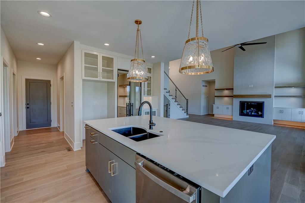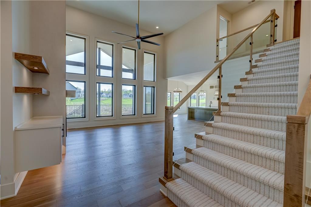 Welcome to a truly exceptional custom-built home by KC Custom Homes where thoughtful design meets elevated living. Offering just under 5,000 square feet of beautifully finished space across all three levels, the Emerson floorplan delivers both luxury and functionality in every detail. The exterior makes a striking first impression with its blend of composite, stone, and stucco, complemented by $10,000 in professional landscaping and a painted 3-car garage. Inside, the home opens to a light-filled layout with modern glass railings and handrails that create a clean, architectural feel throughout. At the heart of the home is a chef’s kitchen designed to impress, featuring granite carried seamlessly up the backsplash wall, built-in oven and microwave, and a dishwasher, all thoughtfully selected for both performance and style. Just beyond, the show-stopping butler’s pantry is incredible: massive, beautifully designed, and equipped with an undermount bar fridge, making it perfect for entertaining or everyday convenience. The main level offers a highly desirable primary suite along with a dedicated office and convenient laundry room. Upstairs, you’ll find three spacious bedrooms, with the option to add a stackable washer and dryer for added flexibility. The fully finished lower level expands your living space with two additional bedrooms, a setup for a full-size refrigerator, and ample room for recreation or guests. With a total of six bedrooms, four full bathrooms, and two half baths, this home easily accommodates both everyday living and entertaining. Built with quality in mind, it features a Franklin engineered plumbing system and represents a top notch level of construction and finish. This is a third tier home, which grants you access to the lake and all the lifestyle perks that come with it. Every inch of this home reflects intentional design, high-end finishes, and modern comfort. Simply put, it’s absolutely stunning.