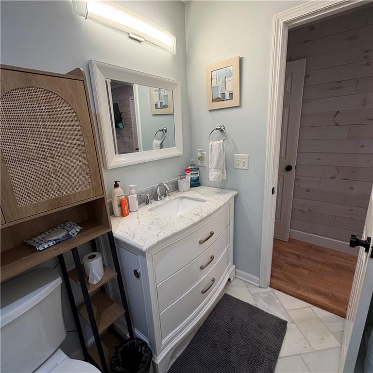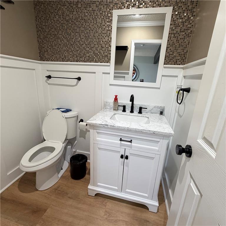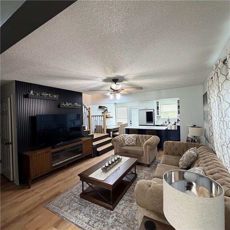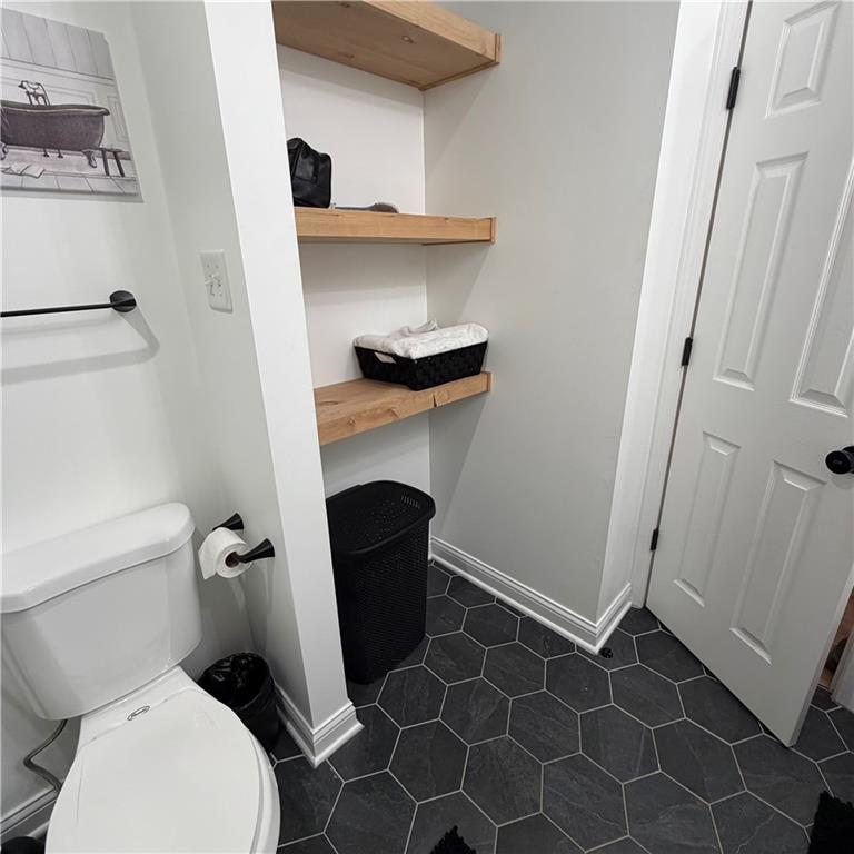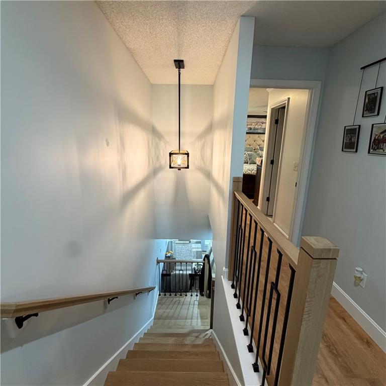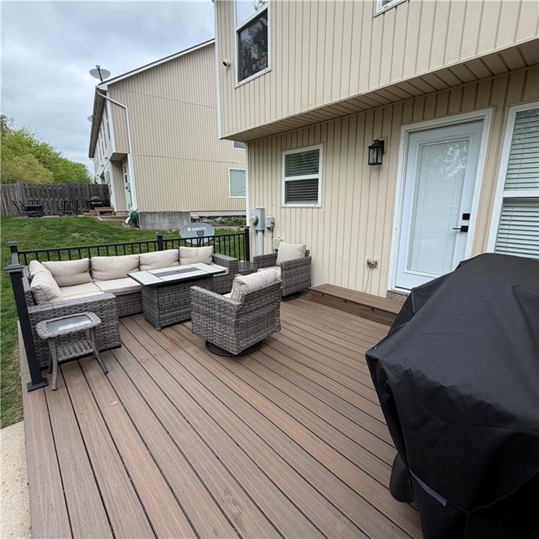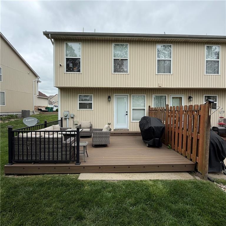 Welcome home to this jaw-dropping, custom-designed townhome where every inch has been thoughtfully curated! The main level impresses from the moment you walk through the door - soaring ceilings, rich LVP flooring, and a dramatic custom slatted accent wall with built-in electric fireplace set the tone in the open-concept living space. The chef's kitchen is a showstopper: two-tone navy and white cabinetry, quartz waterfall island with seating, designer tile backsplash, and premium white glass appliances. A stylish half bath with marble vanity, mosaic accent tile, and board-and-batten wainscoting adds a designer touch. Upstairs, find generous bedrooms, a beautifully appointed full bath, and the ultimate convenience - an upper-level laundry room with full-size front-load units. The custom oak staircase with black iron balusters and dramatic arched landing accent is truly a work of art. The finished lower level offers endless flexibility - a spacious carpeted rec room perfect for a media lounge or game room, a conforming bedroom with egress, and walkout access to your private composite deck oasis complete with outdoor seating and a gas grill hookup. The backyard offers a flat, lush lawn with peaceful views and privacy. Attached garage, updated mechanicals, and an address in the sought-after Delaware Highlands subdivision round out this one-of-a-kind opportunity. Homes finished at this level simply don't come along often!