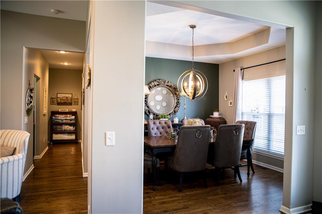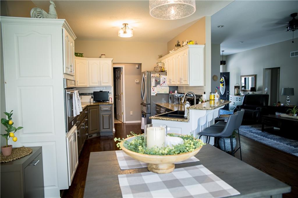 This home has been tastefully decorated and meticulously maintained. It's so stunning it could be on HGTV. Hardwood floors throughout the main level, with a tiled laundry room. Rooms are spacious, especially the master ensuite. In fact, there are two master ensuites: one on the main level and the other in the lower level. The lower level master bath has heated floors and the LL walk-in closet includes the 2nd laundry hook-up. There is a family room with a game area and bar in the LL, as well. Updates to the home include a new water heater, all flooring, light fixtures and ceiling fans, furnace, water softener, roof and cooktop. The backyard is enticing with a covered patio and a separate cement pad for additional entertaining. The newer Basehor Elementary School is within walking distance, and the HOA provides a swimming pool, shelter, and basketball court. Don't miss this stunning home!