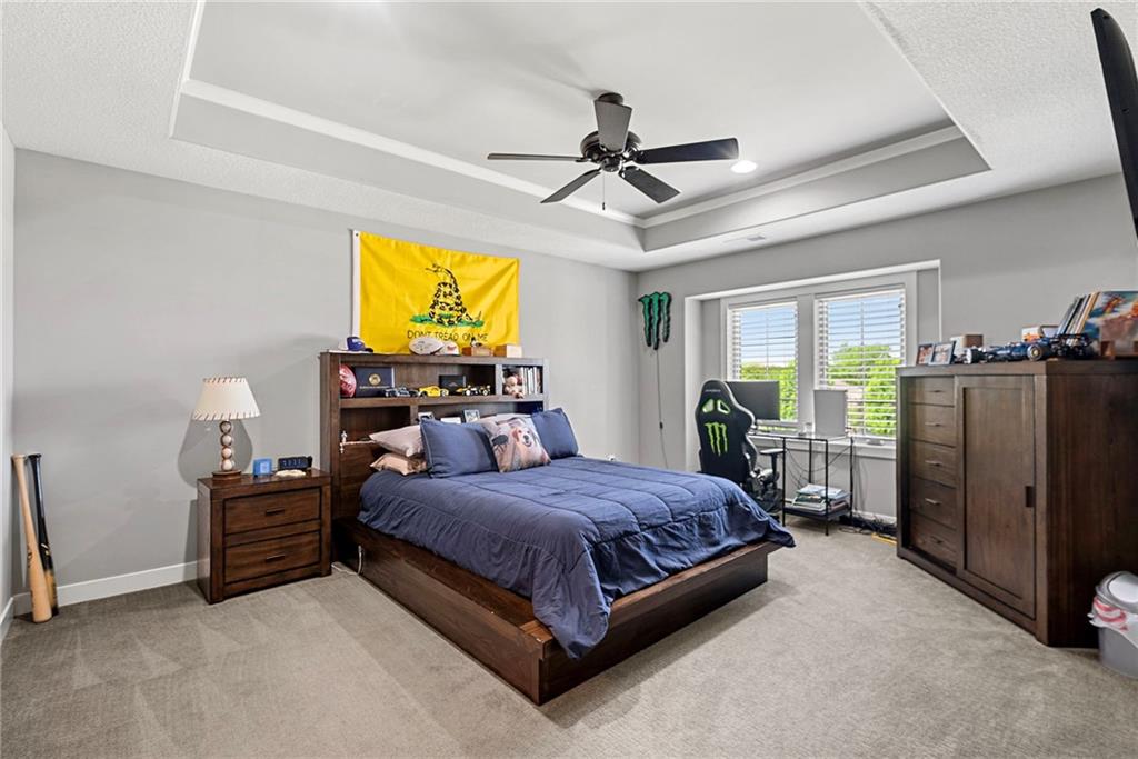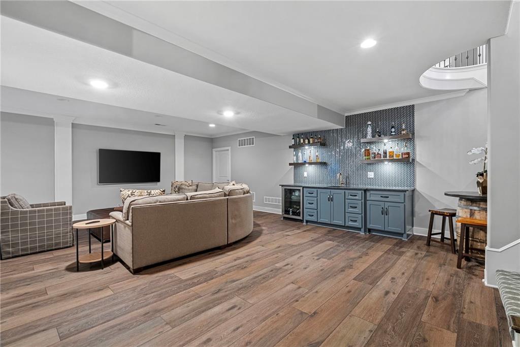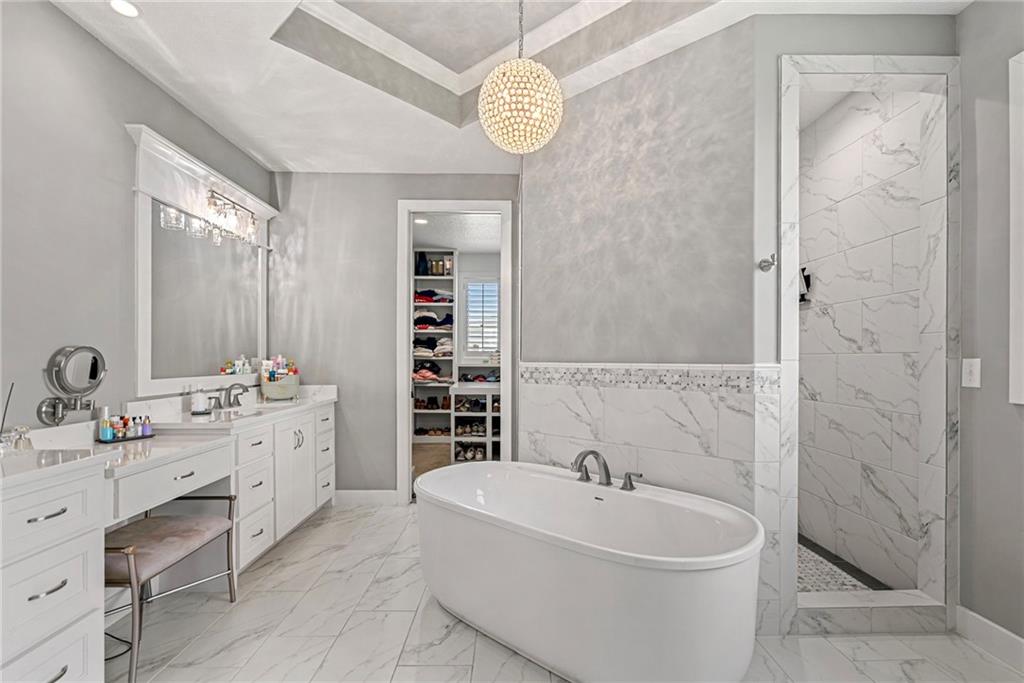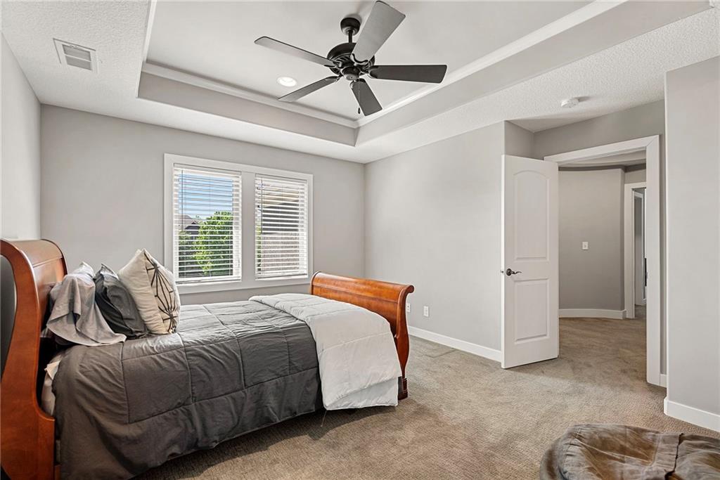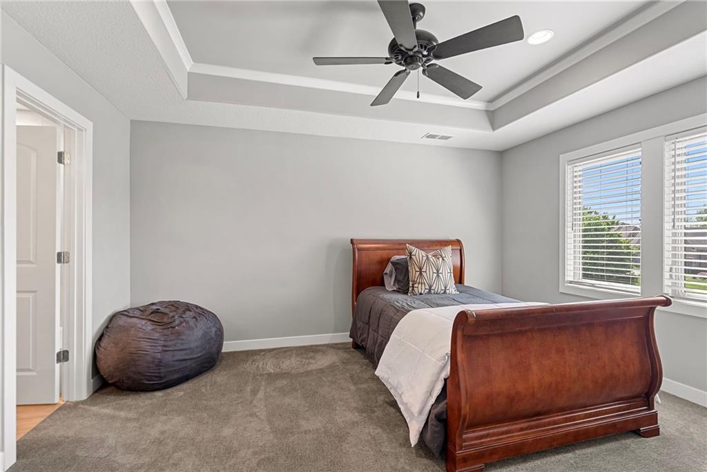 Welcome to 2604 W 162nd Terrace in Overland Park—where timeless design meets a fresh, elevated feel in River Ridge Farms. Situated on a large corner lot, this stunning 1.5-story home makes an immediate impression with its beautiful stone-front exterior and oversized side-entry 3-car garage—effortless curb appeal with a polished, luxury presence. Inside, rich wood floors span the entire main level, leading you through a light-filled, open-concept layout designed for both everyday living and entertaining. The two-story living room is a showpiece—flooded with natural light and anchored by a gas fireplace flanked by custom built-ins. The kitchen truly delivers, with timeless details, featuring a large center island, Sub-Zero refrigerator, gas range, double ovens, and an expansive walk-in pantry. Just behind the kitchen, a private main-floor office is perfectly tucked away—ideal for work-from-home without sacrificing connection to the heart of the home. One of the standout moments is the stunning 2-story curved staircase—a focal point that brings a sense of elegance and flow throughout all levels. The finished lower level is built for hosting, complete with a wet bar, spacious rec room, and a cozy media area perfect for movie nights or game days. Upstairs, a loft space offers additional flexibility, while three generously sized bedrooms each feature their own private en-suite bath and walk-in closet—providing comfort, privacy, and functionality for everyone. Step outside to a fully fenced backyard designed for year-round enjoyment. The covered patio with fireplace creates the perfect setting to unwind or entertain, with plenty of space and seating area for those perfect Kansas evenings. This home seamlessly blends luxury, function, and style—delivering the elevated lifestyle today’s buyers are looking for in one of Overland Park’s most desirable locations.