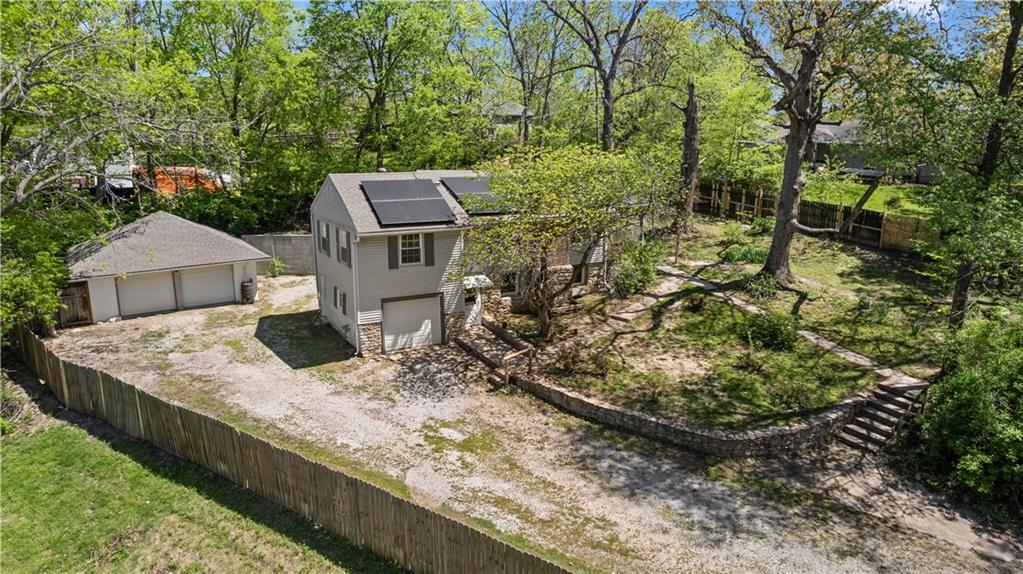 Incredible opportunity to own a private, gated property with strong upside potential! Situated on a spacious lot with a huge yard and long driveway, this home offers ample parking, an attached garage with basement access, and a detached outbuilding/double car garage. Ideal for storage, workshop space, or future value-add potential. The backyard is a true green oasis, featuring mature trees, lush greenery, and natural beauty. Perfect for gardening, entertaining, or creating your own outdoor retreat. Inside, the home offers a functional layout with plenty of natural light and is ready for your personal touch. Home is currently livable while updates are completed over time. Paid-off solar panels provide long-term energy savings and added value. Property is being sold as-is and presents a great opportunity for buyers looking to build equity with some updates. Priced to reflect condition. Home has good highway accessibility, shopping close by, NKC Hospital and all other everyday conveniences. Don’t miss the chance to transform this property into your dream home or next investment!