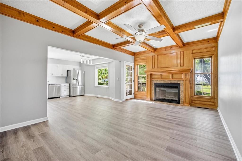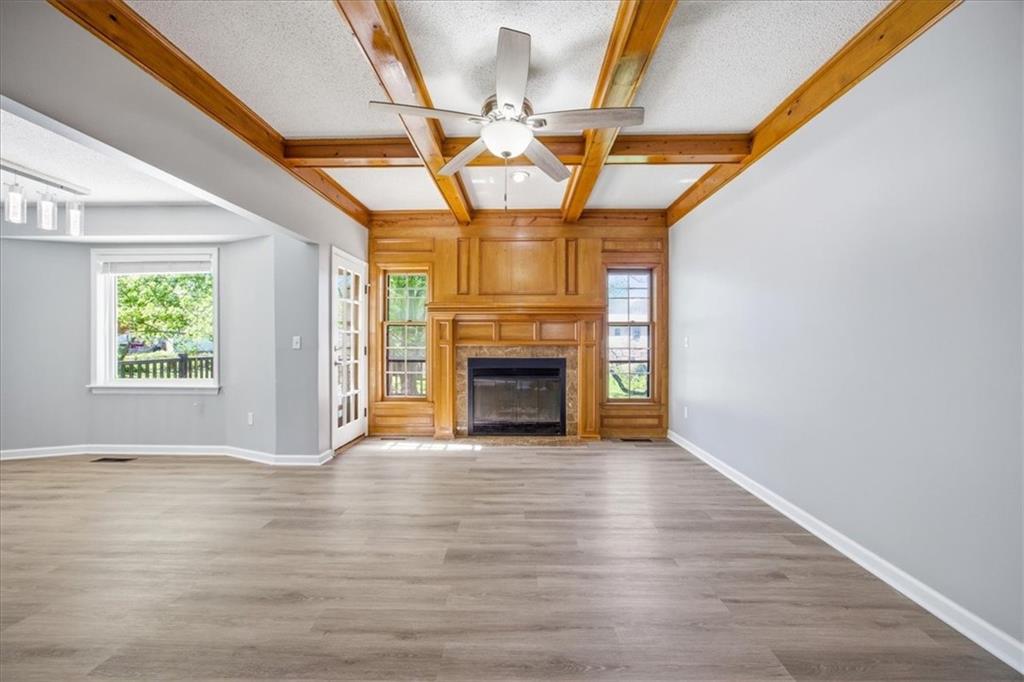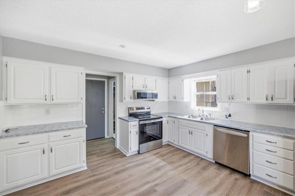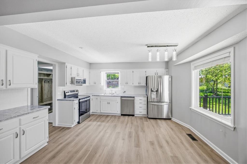 Beautiful 3 bedroom home with two full baths has been updated and ready to make it your new address! Natural light streams in through large kitchen window. Stainless steel appliances, fresh paint and new flooring help to create an environment perfect for a cozy evening with the family or entertaining friends. Stunning wood beams and fireplace accentuate the open living room space that has walk out access to updated deck and large back yard. Master suite, bathrooms and additional 2 bedrooms are all on the main floor along with washer and dryer hookups in the mudroom to provide true one level living! Unfinished basement houses 2nd laundry facilities and lots of space that can be used for a work out area, game room, extra storage or finished out for lower level living. Enjoy cul-de-sac neighborhood while having access to good dining, entertainment venues and other great things to do in around the city!
