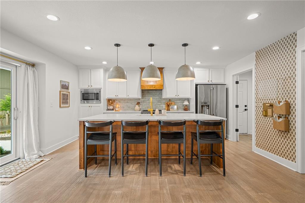 Summer is just around the corner, and this backyard was made for it. Picture evenings by the heated inground pool, fresh lemonade on the covered patio, and laughter that carries into the night. This warm, welcoming home on a treed corner lot in one of Overland Park's most beloved neighborhoods is the kind of place that just feels right the moment you walk in — and that's no accident. The owner is a certified interior designer, and the love and intention poured into every room shows in the best possible way. Inside, the open-concept layout invites everyday living and easy entertaining alike. The kitchen is the heart of it all — a large center island, gas range, stainless appliances, a walk-in pantry, and a handy mud room right where you need it. The vaulted dining room, filled with natural light through generous windows, is the kind of space that makes even a weeknight dinner feel a little special. Two bedrooms and two full bathrooms on the main level offer ultimate flexibility. Upstairs, two more spacious bedrooms share a beautifully finished bath. And downstairs, the finished lower level truly has room for everything — a large recreation room, a fifth bedroom, a full bath, and two bonus rooms ready to become whatever you desire. Pride of ownership is shown in every detail — from the custom plantation shutters and gorgeous epoxy garage floors to the professionally landscaped grounds and a pool that has been lovingly cared for. Shawnee Mission schools, healthcare, and every convenience you could want are just minutes away. Homes like this — with this much heart, this much refinement, and this much to offer — don't come around often. **All information including measurements is deemed reliable but not guaranteed. Buyer and buyer's agent to verify information and measurements during inspection period.**