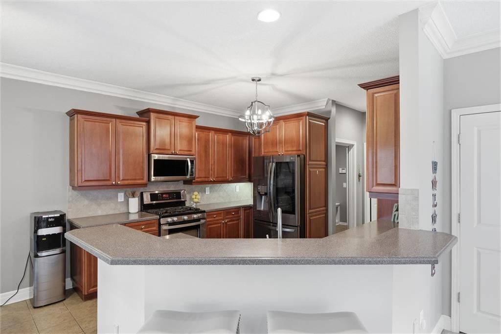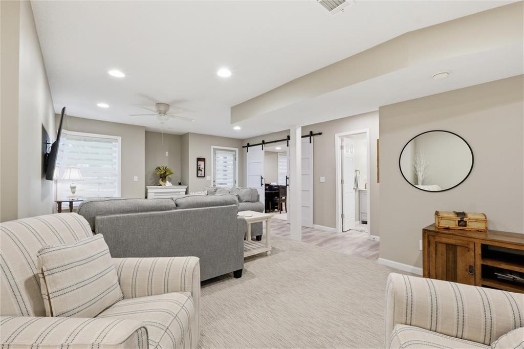 Welcome to an exceptional residence in the prestigious Retreat at the Wilderness, where sophistication, serenity, and maintenance-free living come together seamlessly. This beautifully updated 4-bedroom, 2 full & 2 half bathroom townhouse offers an elevated lifestyle surrounded by natural beauty. Perfectly positioned with tranquil, tree-lined views, the home features two expansive decks, ideal for refined outdoor living, quiet mornings, or elegant entertaining. Inside, every detail has been thoughtfully enhanced. Recent updates last couple years include a fully finished walk-out lower level, designer carpet, custom window treatments, updated lighting, new appliances, and a beautifully renovated primary bath with a walk-in shower and upscale finishes.The main level is filled with natural light and features a striking fireplace, expansive windows, and an inviting kitchen with a large island designed for both everyday living and entertaining. A main-level laundry room and stylish guest half bath add convenience. Upstairs, the primary suite serves as a private retreat with a spa-inspired bath featuring dual vanities, soaking tub, walk-in shower, and 2 closet space including a walk-in closet. Two additional bedrooms and a well-appointed hall bath complete the upper level, each offering comfort and peaceful views.The finished walk-out lower level extends the living space with a spacious family room, game area, 4.bedroom, 1/2 bath, and direct access to the lower deck—perfect for entertaining or relaxing in a serene setting.Enjoy true lock-and-leave living with an HOA that includes roof repair and replacement, exterior maintenance, water,(including house), lawn care, snow removal, trash, recycling, and exterior property insurance. Community amenities include a clubhouse, pool, movie theater, gourmet kitchen, Game room, pool table. A rare opportunity to experience elevated, maintenance-provided living in one of OverlandPark’s most desirable communities at Blue Valley schools