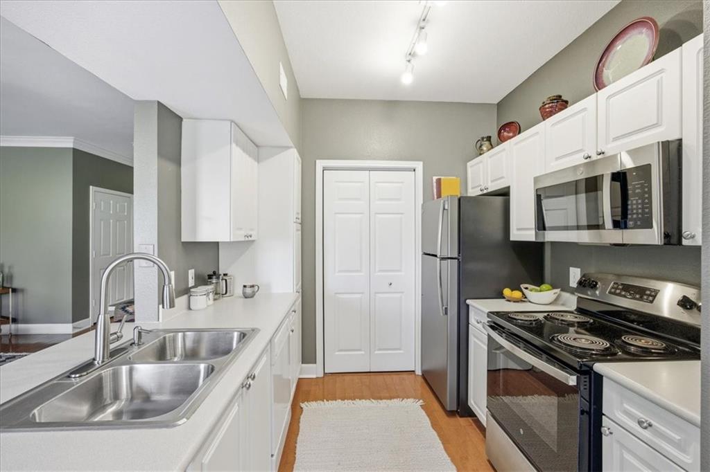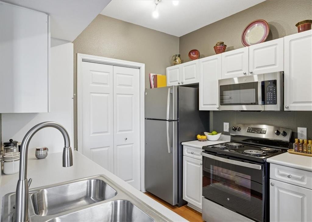 Incredible location in Leawood! 1 bed, 1 bath condo with 2 dedicated parking spaces. Plus, a serene private patio that looks out onto green space (no condos behind). This home is nestled on a dead-end street with very limited traffic. Perfect ranch home with the laundry off the kitchen and a washer and dryer that stays. Private parking space just steps from the front door and with ample visitor parking. Amazing location near all shops and restaurants on 119th and walking distance to Town Center and beautiful walking/biking trails nearby. Maintenance free in the heart of Leawood! HOA information can be found at http://tomahawk_creek-hoa.com/info. Parking spot is located right by the front door - it is labeled F - and the carport is labeled 106.