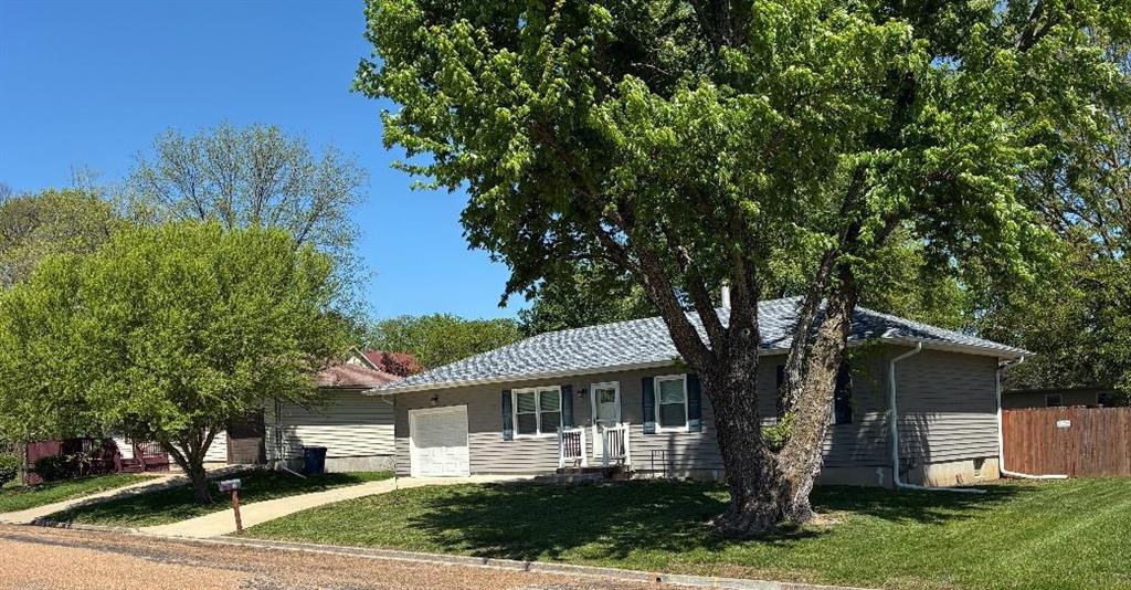 "Move-in ready" truly describes this extremely well-maintained 3-bedroom ranch style home! Located at the east edge of town, there is an amazing view out the front windows and from the front patio - open farmland! Beautiful large trees, in the front as well as the backyard, provide just the right amount of shade for you to truly enjoy the outdoors. The backyard, with its privacy fence, large deck and firepit, has plenty of room to entertain, play, and especially relax! This basement is HUGE and has TONS of potential! With the current finish on the walls, it can be used as is as a rec room, workout space, office space, etc. It is also ready for your creativity when you decide to finish out all that square footage to meet your needs! The owner of this lovely home has invested SO much into replacing or updating the BIG COST items: Roof and gutters, siding, new main water line, garage door and opener, deck, fence, driveway, front patio, and more... It will be hard for you to find a better investment! Come see this home today and prepare to make it YOURS!!