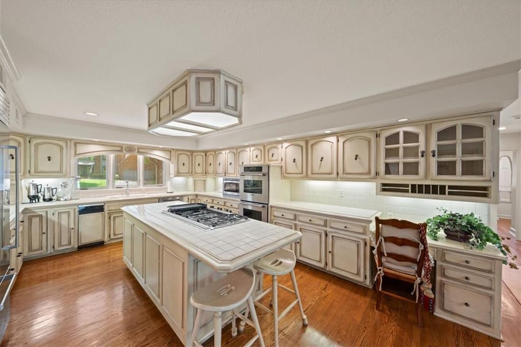 Timeless craftsmanship meets effortless living in this meticulously maintained, all-brick 1.5-story gem nestled in the heart of coveted Leawood, KS. Proudly cared for by its original owners, this stunning 5-bedroom home exudes pride of ownership at every turn — from its stately brick exterior, picturesque brick driveway and yard to its beautiful interior finishes. Enjoy the confidence of a new Bosch dishwasher, microwave, sump pump with battery backup, garbage disposal, and two 50 gallon water heaters. The thoughtfully designed floor plan flows seamlessly between everyday comfort and elevated entertaining, offering generous living spaces that adapt to every occasion. Whether hosting gatherings or simply unwinding, the expansive back deck and gazebo provide the perfect outdoor retreat, while the fully fenced backyard delivers privacy and room to enjoy the outdoors year-round. The walk-out basement adds exceptional flexible living space — ideal for a recreation room, movie nights, a gym, or guests. A 3-car garage provides abundant storage and parking. This property combines location, size and strong value per square foot, making it a standout in the Oxford Hills West neighborhood. Situated in one of Leawood's most sought-after locations, enjoy unparalleled convenience just moments from premier shopping, acclaimed dining, and top-rated amenities. This is a rare opportunity to own a home where quality, character, and location converge perfectly. Schedule your private tour today!
